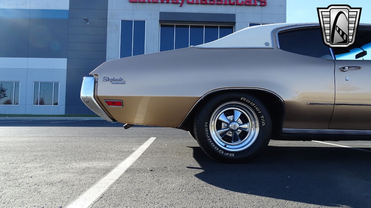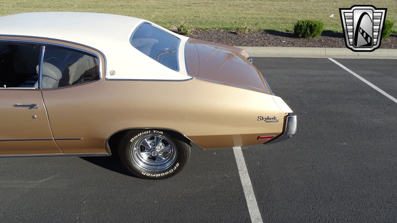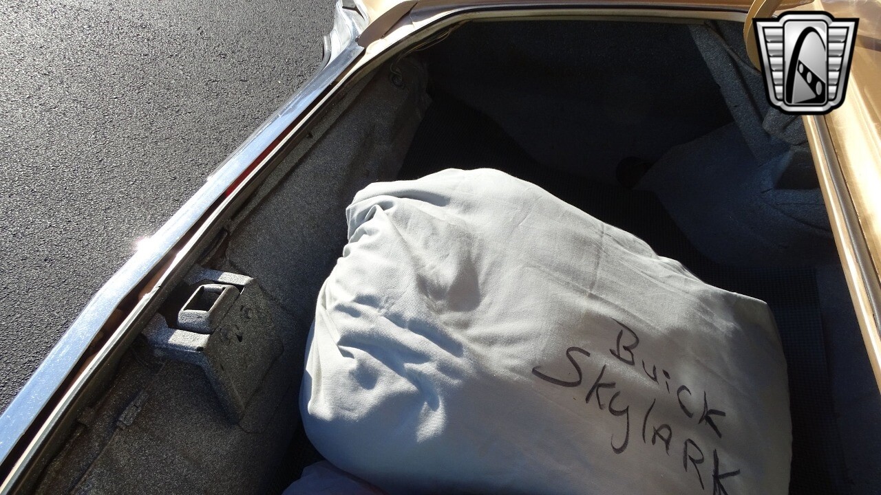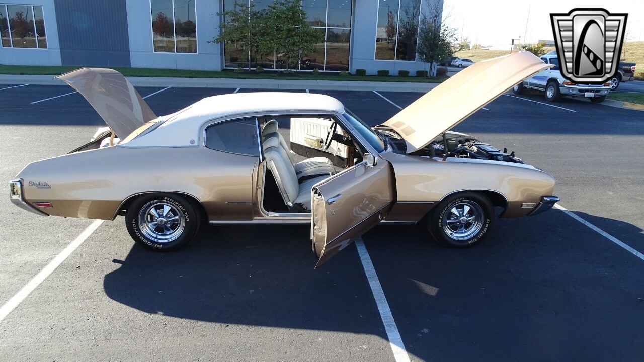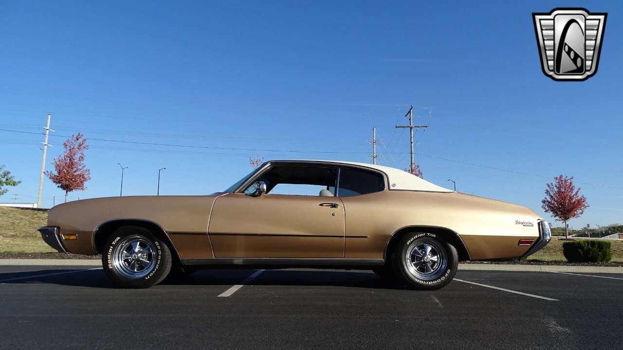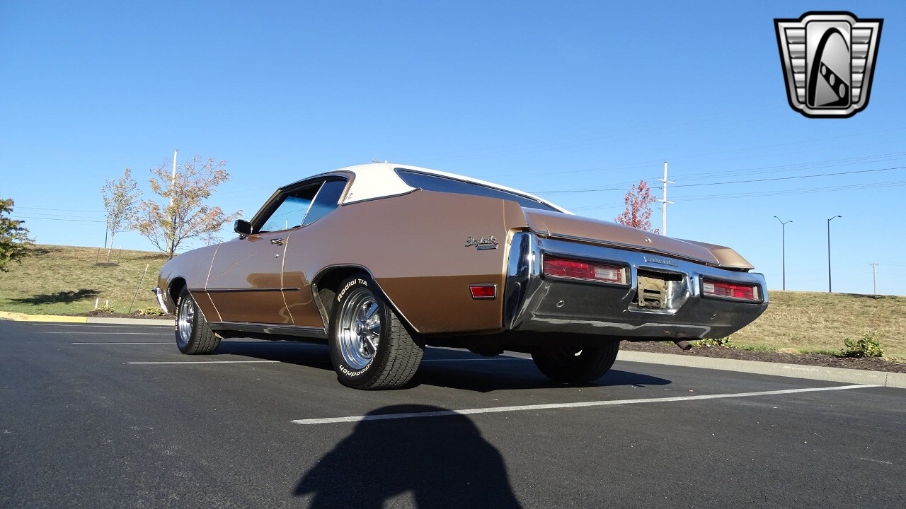 Gateway Classic Cars of Kansas City is proud to present this stunning 1972 Buick Skylark. This stunning Buick Skylark has been under the same ownership since 2005 and is ready for its new loving owner. It is powered by a strong 350 2BBL V8 paired to a smooth shifting 3 speed automatic. This Buick has been finished in a gorgeous Gold with an awesome white vinyl interior and a matching white vinyl top. This Skylark contains tons of creature comforts such as A/C, Power steering, Power Brakes, and the current owner has also added a Viper Alarm that can be controlled using a key fob. The owner has also added an aftermarket radio in case you prefer listening to music rather than the sound of that engine!