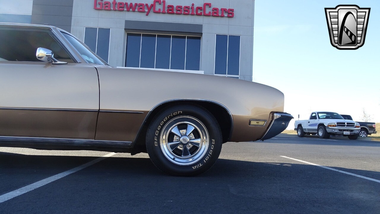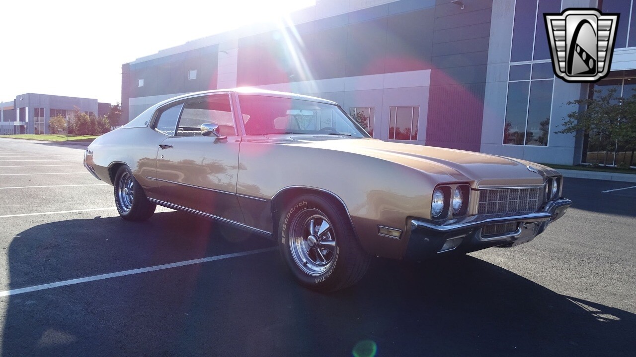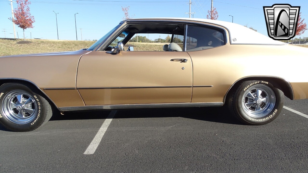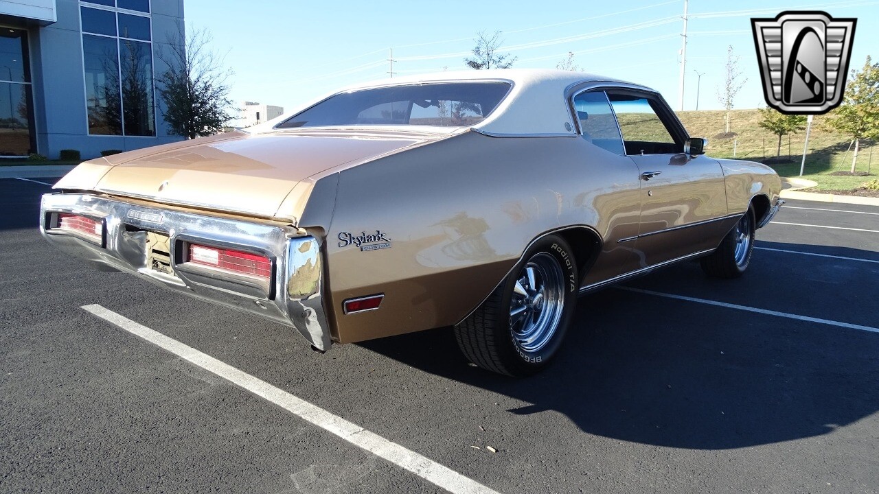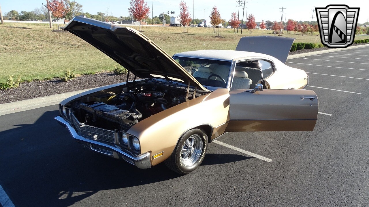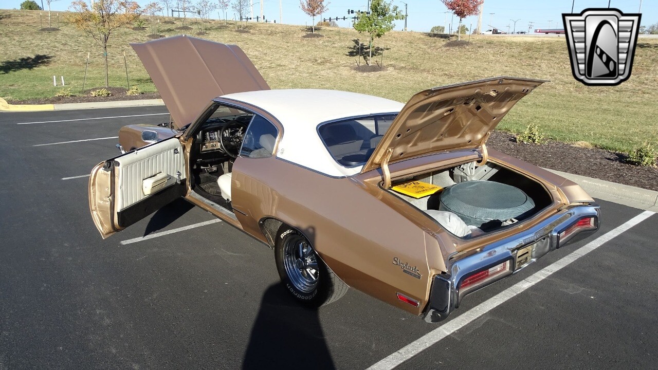 Gateway Classic Cars of Kansas City is proud to present this stunning 1972 Buick Skylark. This stunning Buick Skylark has been under the same ownership since 2005 and is ready for its new loving owner. It is powered by a strong 350 2BBL V8 paired to a smooth shifting 3 speed automatic. This Buick has been finished in a gorgeous Gold with an awesome white vinyl interior and a matching white vinyl top. This Skylark contains tons of creature comforts such as A/C, Power steering, Power Brakes, and the current owner has also added a Viper Alarm that can be controlled using a key fob. The owner has also added an aftermarket radio in case you prefer listening to music rather than the sound of that engine!