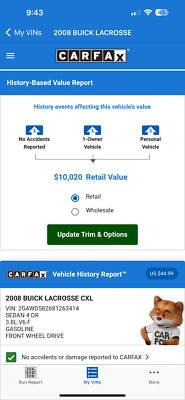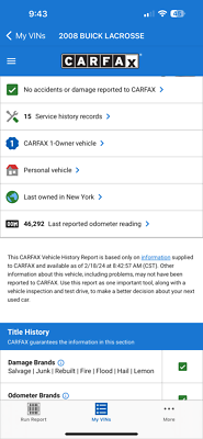 "PLEASE SCROLL TO BOTTOM OF LISTING AND CLICK "SEE FULL ITEM DESCRIPTION" TO VIEW ALL 50+ PHOTOS!!!" "I WILL HELP YOU ARRANGE SHIPPING AND WILL MATCH OR BEAT YOUR QUOTE" UP FOR SALE IS THIS VERY NICE 2008 BUICK LACROSSE CXL WITH LOW 46K MILES, ONE OWNER, CLEAN CARFAX, EXTRA CLEAN NON SMOKER AND PRICED TO SELL!!! THIS CAR IS OVERALL IN GOOD CONDITION INSIDE AND OUT. THE EXTERIOR SHOWS NO MAJOR DENTS, DINGS OR SCRATCHES. THE INTERIOR ALSO SHOWS NO SIGNS OF ABUSE, (SEE ALL PICTURES FOR MORE DETAILS.) THE ENGINE RUNS STRONG AND THE TRANSMISSION IS SMOOTH. FEEL FREE TO GIVE ME A CALL TODAY FOR THE BEST PRICE! THANK YOU FOR LOOKING267-828-0272 SERGE Please keep in mind you are bidding on a pre-owned vehicle. Everyday driving can cause minor chips, dings or scratches on a vehicle. Unless otherwise noted in our photos or description these items are minimal, but may exist in some cases. Our photos are designed to be a visual description of this vehicle, please look at them carefully and use them to make a confident decision to bid on our vehicle. Get a great vehicle at a great price!!! Bid Now! If you have any questions about this or any of my other auctions please feel free to contact me via e-mail at or you can call me at 267-828-0272 ask for Serge. Thank you for your interests and we look forward to hearing from you...