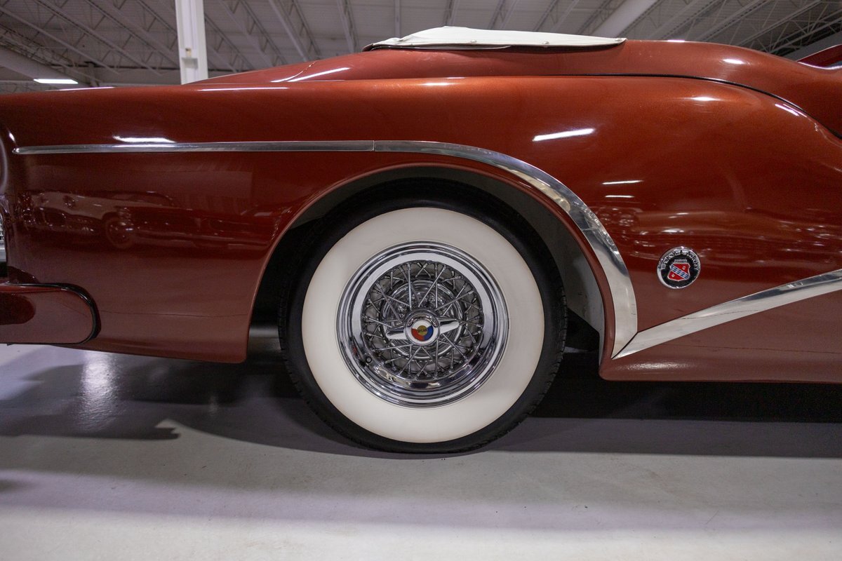 This 1953 Buick Skylark Convertible is a gorgeous example of one of the finest convertibles ever produced by the General Motors marque. 1953 was a significant year in Buick's history with the GM marque celebrating its 50th Anniversary. To celebrate this momentous occasion, Buick released one of the finest vehicles in the company's history, the Buick Skylark. While the Skylark made its formal debut in 1953, its origins dated back to 1952 when General Motors took its "Dream Car" convertible prototypes on the national show circuit. The GM Dream Cars consisted of the Chevrolet Corvette and the trifecta of the Cadillac Eldorado, the Oldsmobile Fiesta, and the Buick Skylark. Although virtually all prototype show cars are merely show cars, these GM Dream Cars all were put into limited production by General Motors for the 1953 model year. The Buick Skylark rode on Buick's Roadmaster chassis but had a brand new look both inside and out. Up front, the most significant changes occurred to the front fenders which had special white or red painted wheelhousings and Buick's iconic "Venti-Ports" were noticeably absent from the Skylark, which made it the only car during Buick's "hole era" to not sport the 3 or 4 hole design. From the side, the Skylark's silhouette was also impressively different from Buick's other models since the Skylark featured a lowered roofline with a more raked back look. The sides also were outfitted with special Skylark-specific chrome sweepspears that further elevated the look of the car. In the rear, modified quarter panels and special emblems completed the exterior look of the unique Skylark. The Skylark's interior was also unique to the special anniversary model, topped off with numerous standard accessories and options such as power steering, power brakes, Dynaflow automatic transmissions, and other items. All '53 Skylarks were also outfitted with wide whitewall tires mounted on chrome wire wheels. In total, Buick produced a mere 1,690 1953 Skylarks which with its $5,000 original MSRP price tag made it one of the rarest '53 Buicks. This particular example comes to with a Buick Club of America (BCA) Silver Award Plaque that was earned by a previous owner of this fine automobile. Under the hood on this '53 Skylark is a 322 Cubic Inch "Nailhead" V8 fed by a single 4 barrel carburetor that together were said to have created 188 horsepower when new. The 322 Nailhead V8 is mated to a Dynaflow Automatic Transmission that makes this 50s cruiser an easy car for just about anybody to drive. This 1953 Buick Skylark Convertible comes absolutely loaded with options! With power steering, maneuvering into a tight parking space at the local car show or drive-in is a total breeze. Power brakes is another wonderful inclusion on this '53 Buick Convertible since it makes bringing this 4,300+ pound cruiser to a complete stop much easier. The white vinyl power convertible top is in wonderful condition and it goes up and down with the simple flick of a switch. Riding on a set of wide whitewall radial tires mounted on chrome wire Kelsey-Hayes style wheels, this '53 Buick Skylark has a great look and even better ride. A rear-mounted continental kit adds another element the '50s flair of this iconic Buick. The exterior has been correctly refinished in Mandarin Red paint that completes the exterior look of this beautiful convertible. The interior of this 1953 Buick Skylark Convertible is absolutely gorgeous! The front and rear bench seats have been correctly reupholstered in Red and White leather. Additionally, the front bench seat is also power adjustable so that just about anyone can reach the pedals. The door panels, red carpeting, Mandarin Red painted steering wheel, and dash are all in wonderful condition and appear to retain a nice stock appearance. All 4 windows are powered and go up and down with the simple flick of a switch. Instrumentation includes a 120 MPH speedometer, temperature gauge, generator gauge, oil pressure gauge, and fuel gauge. The dash is completed with a locking glovebox, clock, climate and lighting controls, a cigar lighter, and Sonomatic AM radio. If you are looking for a great addition to your existing classic car collection or you want your very first truly special classic car, we have the car you have been looking for. Give Ellingson's a call today at 763-428-7337!