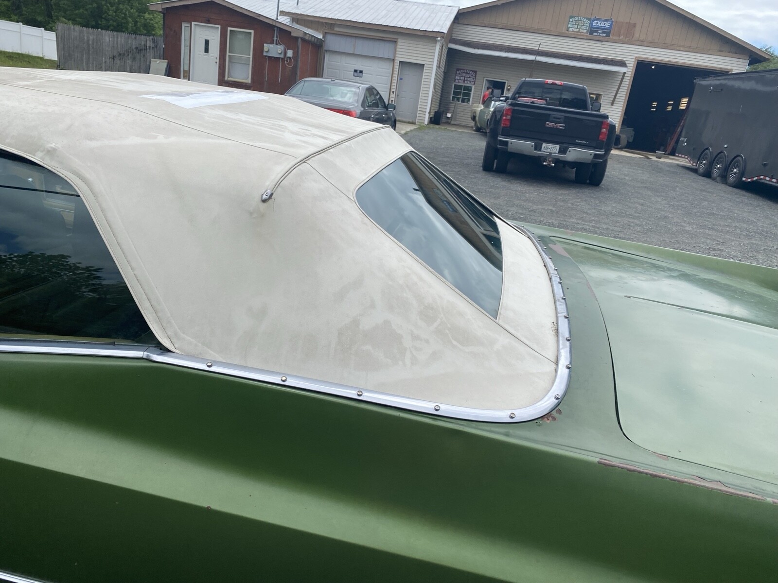 Barn find, been sitting a number of years.i cleaned the points and the engine fired right up with fresh gas in the tank and a little shot of starting fluid. It's a Vary solid project car. Run moves stops. Odometer reads 98k. Ny does not issue titles on 1972 and older vehicles they use a transferable registration. It will be sold with a transferable reg. Power top switch is frozen and the power windows do not function. Very little rust on lower front fenders. Frame is perfect. A couple minor pin holes in the passenger rear floor the rest are solid. Calls are best 5188582948