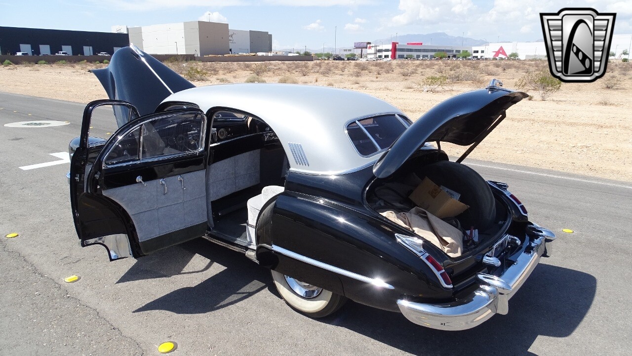 Step into a world of classic elegance with this 1947 Cadillac Fleetwood. This vintage beauty is a standout with its striking black/silver top exterior, a color scheme that exudes sophistication and style.
