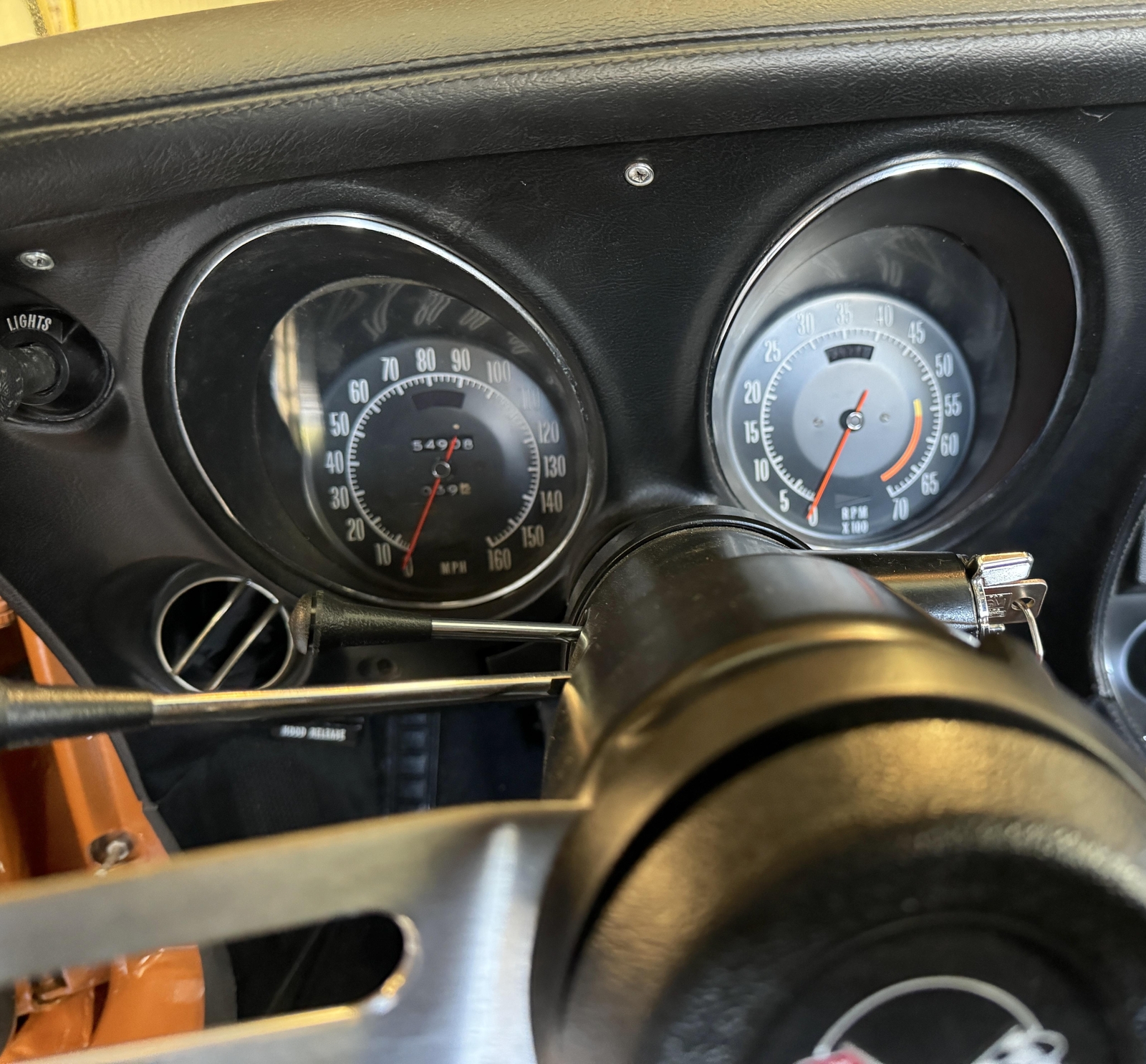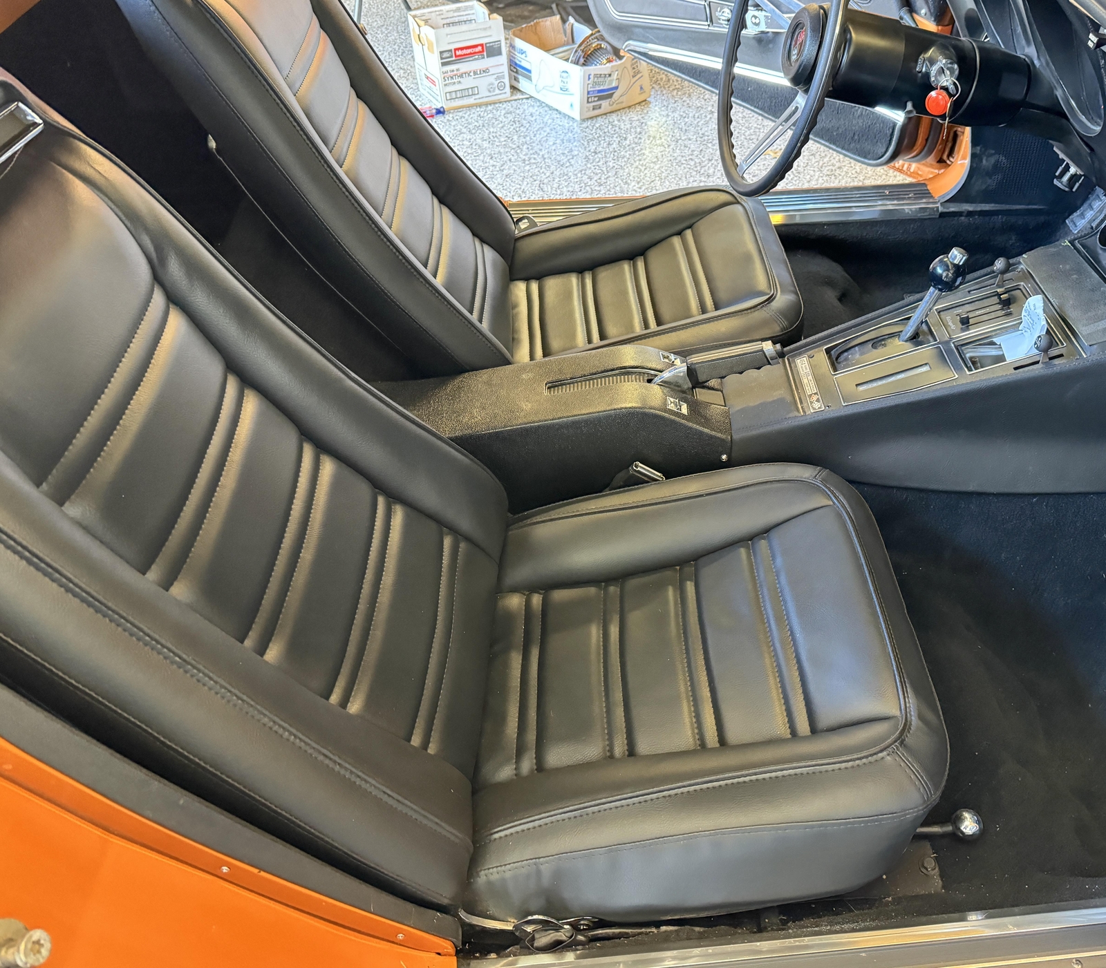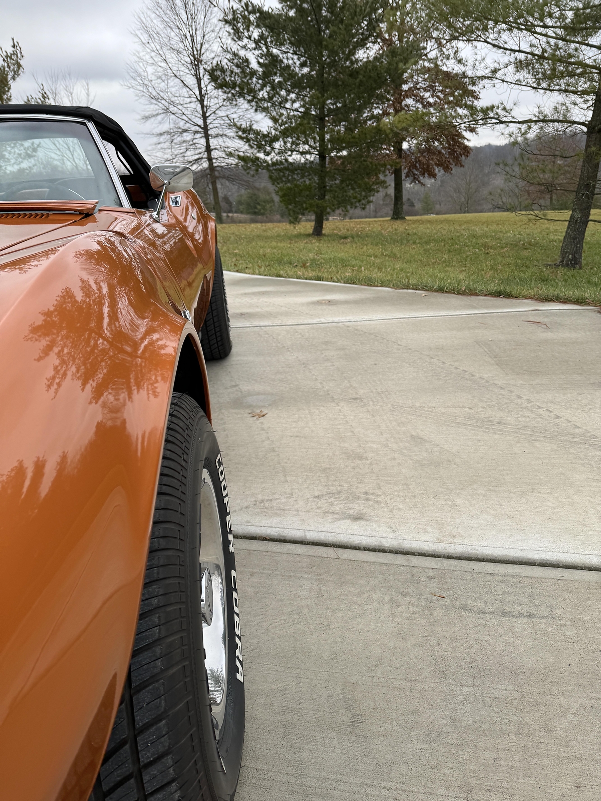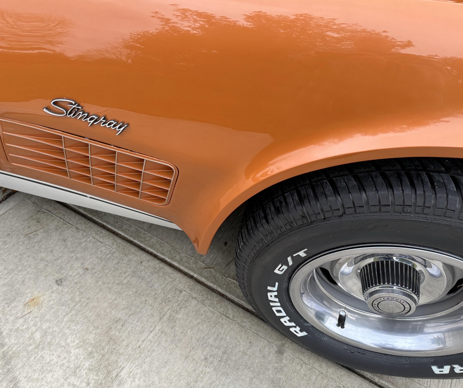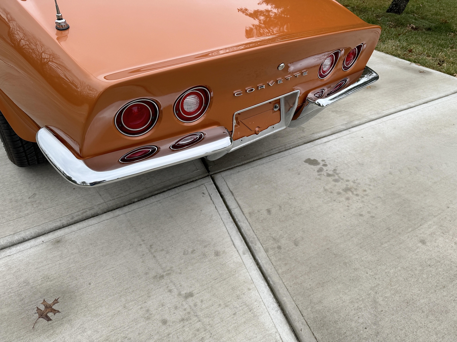 THIS IS A NICE QUALITY FRAME OFF RESTORED CORRECT AND NUMBERS MATCHING 1972 LS5 CORVETTE CONVERTIBLE. SMOOTH AND STRONG ORIGINAL 454 ENGINE, TURBO 400 TRANNY, PS, PDB, TILT/TELI. BEAUTIFUL NEW BLACK DELUXE LEATHER BUCKETS AND CONSOLE INTERIOR. EXCELLENT BODY, FLOORS AND FRAME. FACTORY CORRECT ONTARIO ORANGE PAINT. THIS CORVETTE RUNS AND DRIVES GREAT. THE HEADLIGHTS, THE LIGHTS, TURN SIGNALS, WIPERS, PARKING BRAKE, SPEEDO, TACH AND GAUGES ALL WORK AS THEY SHOULD, EXCEPT CLOCK. THE AC AS NEW AND STILL NEEDS TO BE CHARGED.