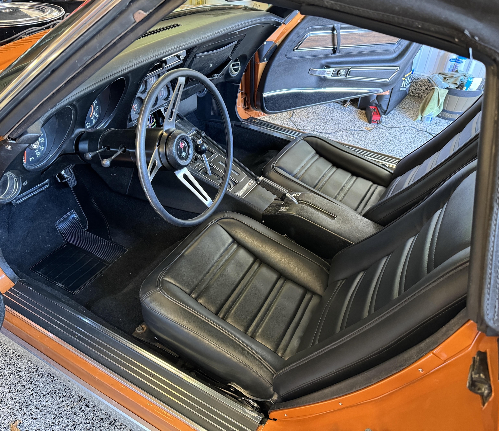 GORGEOUS INCREDIBLY NICE CONDITION FRESH FRAME OFF RESTORED 1972 CORVETTE CONVERTIBLE LS5 454 AUTO AC PS PDB TILT/TELI NUMBERS MATCHING CORRECT CAR BEAUTIFUL DESIRABLE FACTORY CORRECT CODE “987” ONTARIO ORANGE WITH NEW CODE “404” DELUXE BLACK LEATHER INTERIOR AND UPGRADED BLACK CLOTH TOP