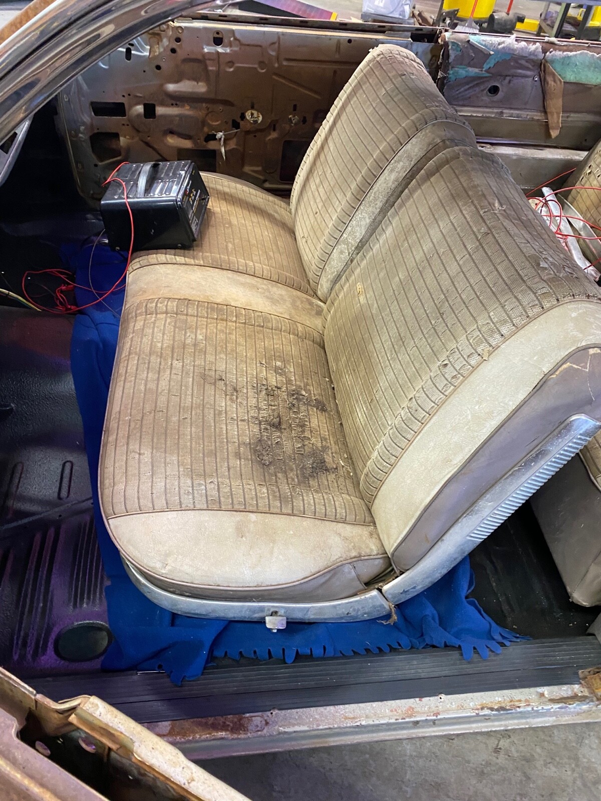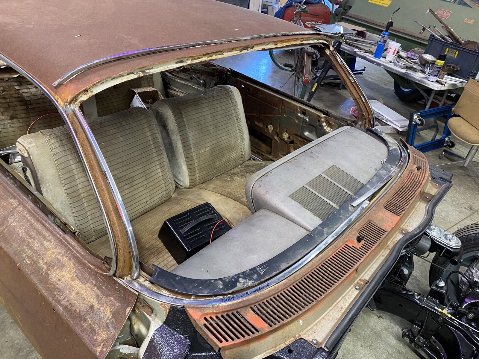 Body: the body has had all of the floorplans and major areas cleaned and replaced. Before pans were seam, sealed, and raptor Coated inside and underneath. The body itself does have rust in the rear quarters, and I have all of the appropriate patch panels to fix that. The bubble top conversion was done very nicely, and I do have all of the trim and side windows and hard to find parts for the bubble top conversion.