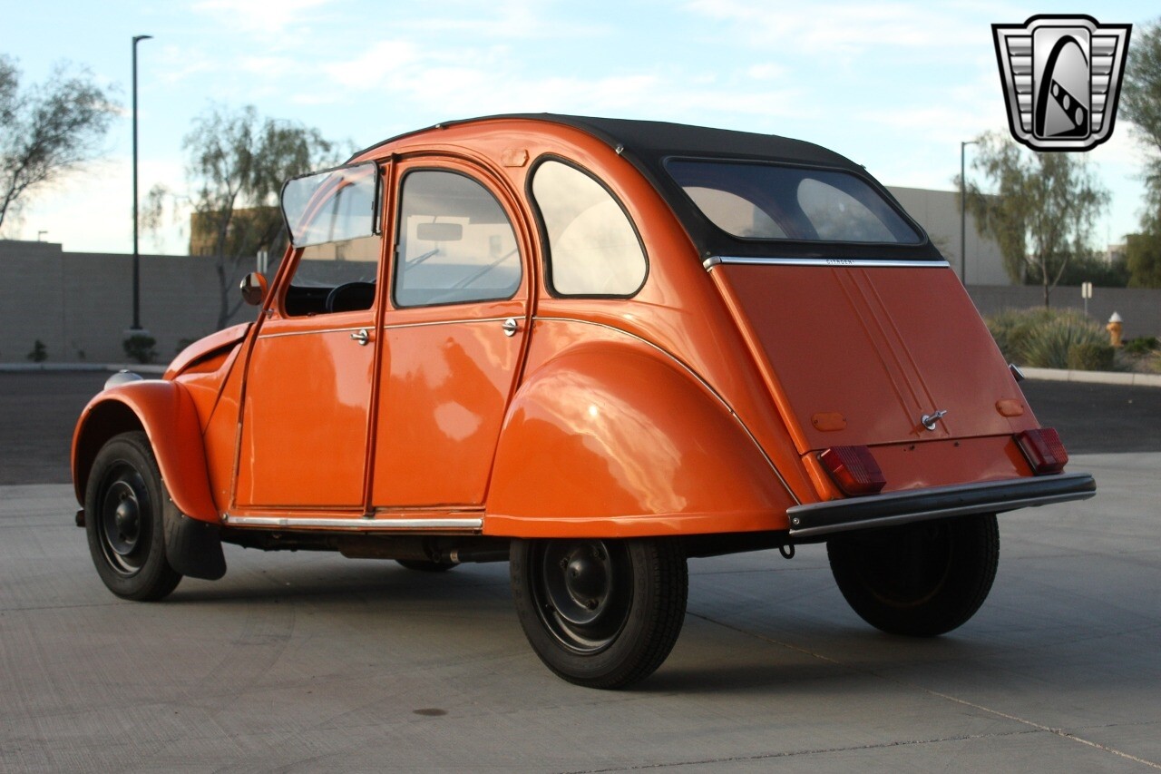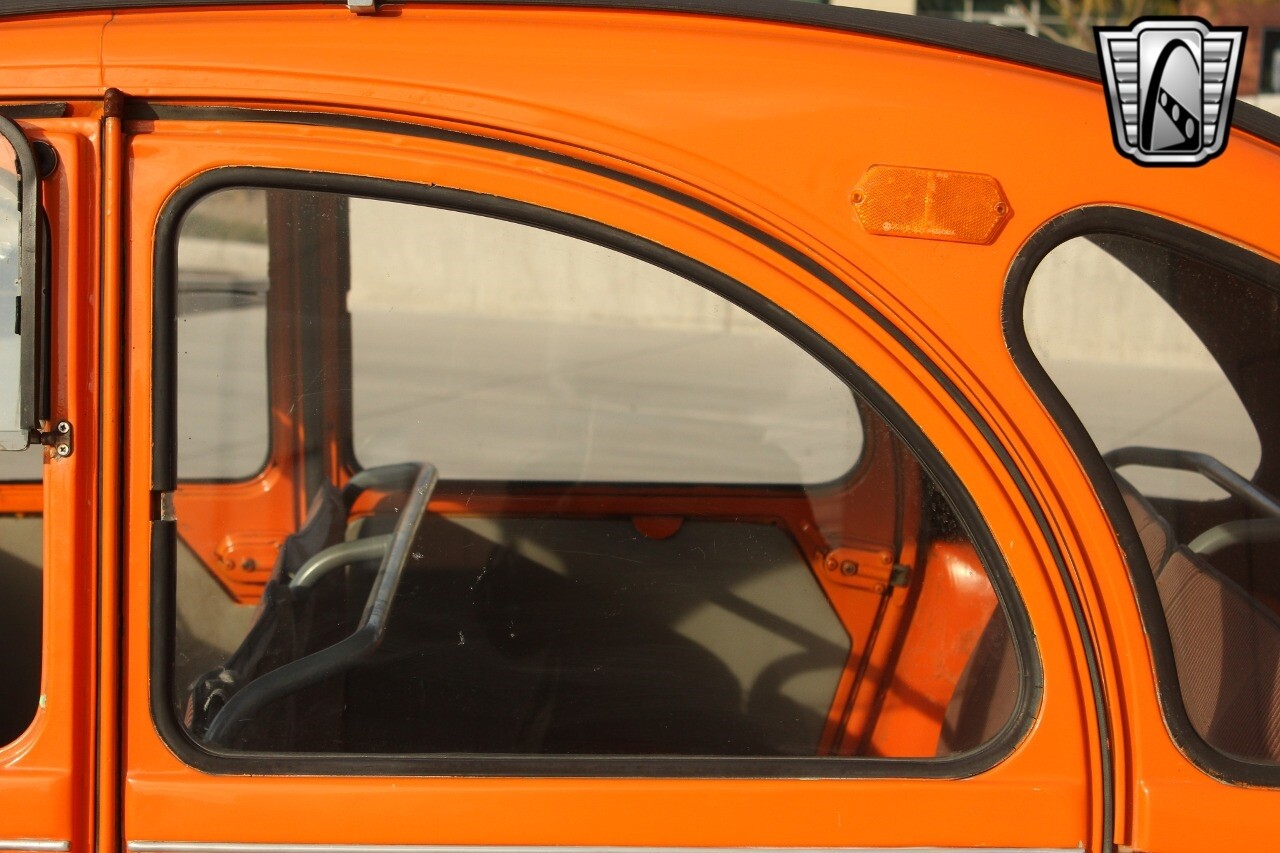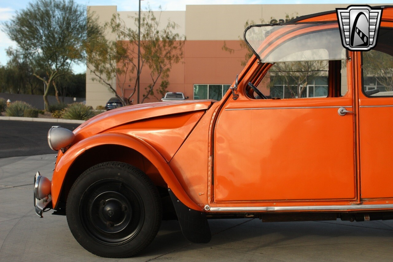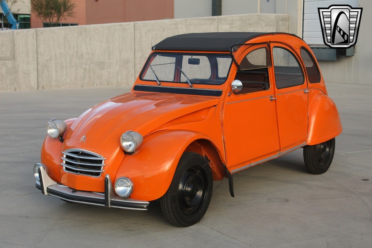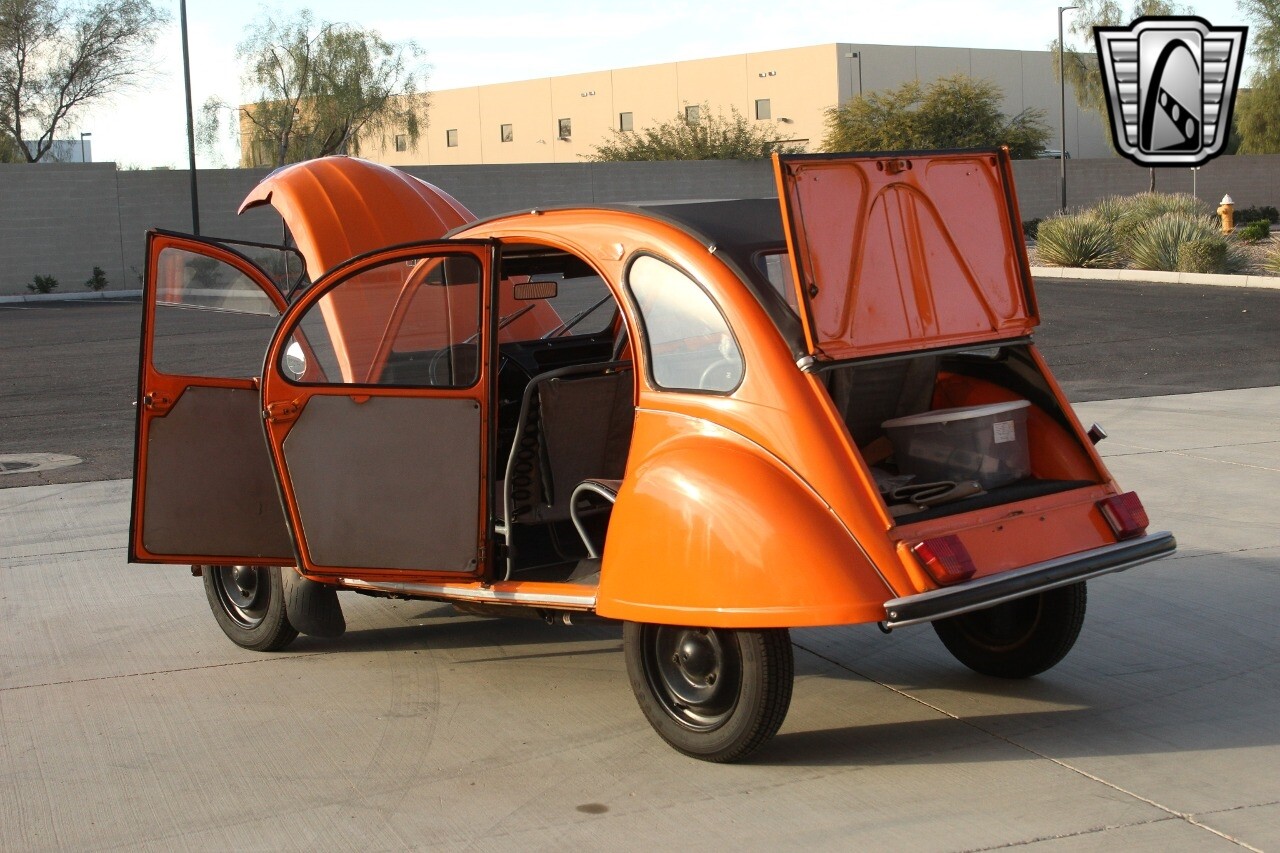 Gateway Classic Cars of Scottsdale is pleased to present for sale on consignment, this cool little 1967 Citroen 2CV that comes with quite a story! A quick internet search done by yours truly revealed a movie promo photo of Heather Graham, who played Felicity Shagwell in the 1999 comedy, Austin Powers The Spy Who Shagged Me, standing in front of the back end of an Orange Citroen 2CV. According to the owner, this was that car! A little digging revealed it was just a promo photo and the car most likely did not make it into the movie but everybody loves a good car story, right? This orange piece of eye candy is powered by a small but mighty 375cc H2 Air Cooled gas engine producing a mind boggling 9hp that is mated to a 4 speed manual transmission, both believed to be untouched in terms of a rebuild. You really can't help but grin and possibly giggle when you get behind the wheel. The shifter location alone makes you feel like you're in something other than a car. This car measures a wheelbase of 94.5 inches, 152 inch overall length, 58.3 inches of width and 63 inches high and weighs in at a feathery 1323lbs! The seats legitimately look like lawn furniture but are surprisingly comfortable and forgiving. This car features an AM Radio and cloth seats. The orange body is all there but shows wear after 55 years of coming off the production line. The split driver and passenger windows flip up, rather than roll down to add to the uniqueness of the car. There is a lot to take in on this car and the list of differences from more traditional vehicles continue to grow the more you look at it. This one is surely a conversation piece and a rarity that is sure to blow people's minds when you roll in to your local car show. Inquire with our sales department on how to welcome this neat little piece of cinematic history into your collection today! .