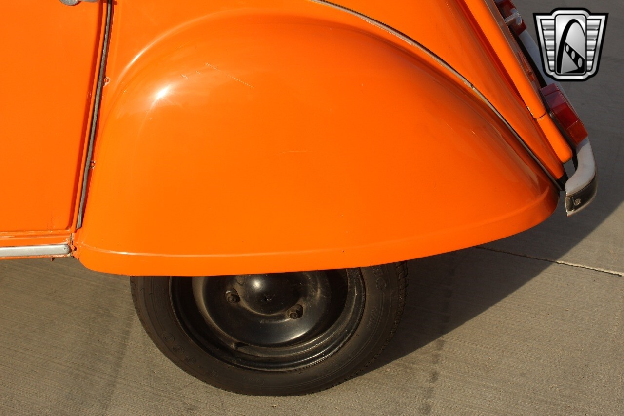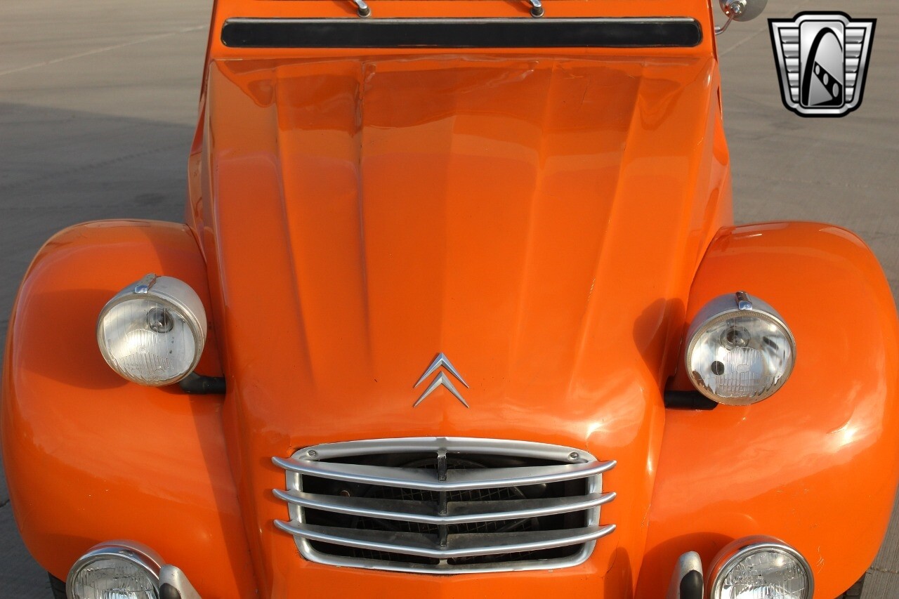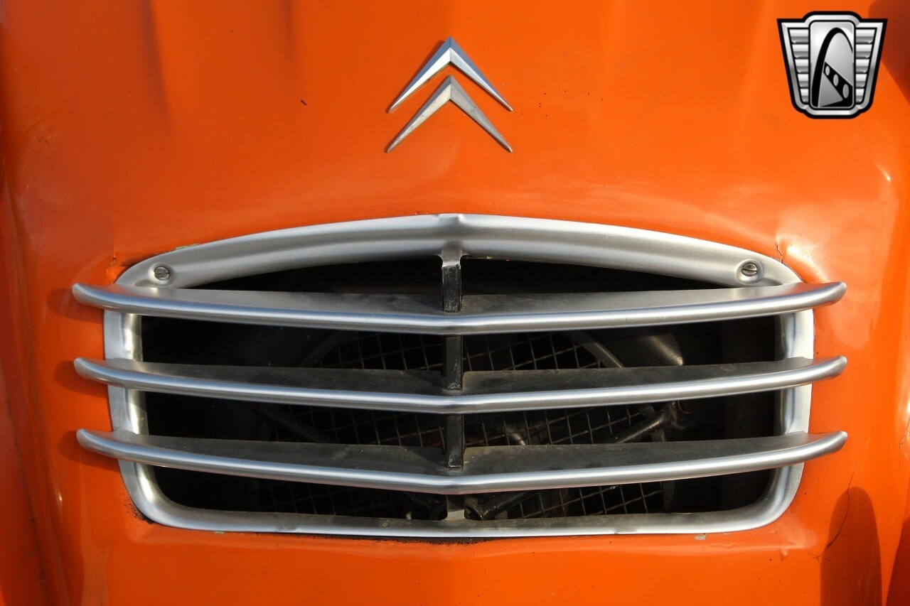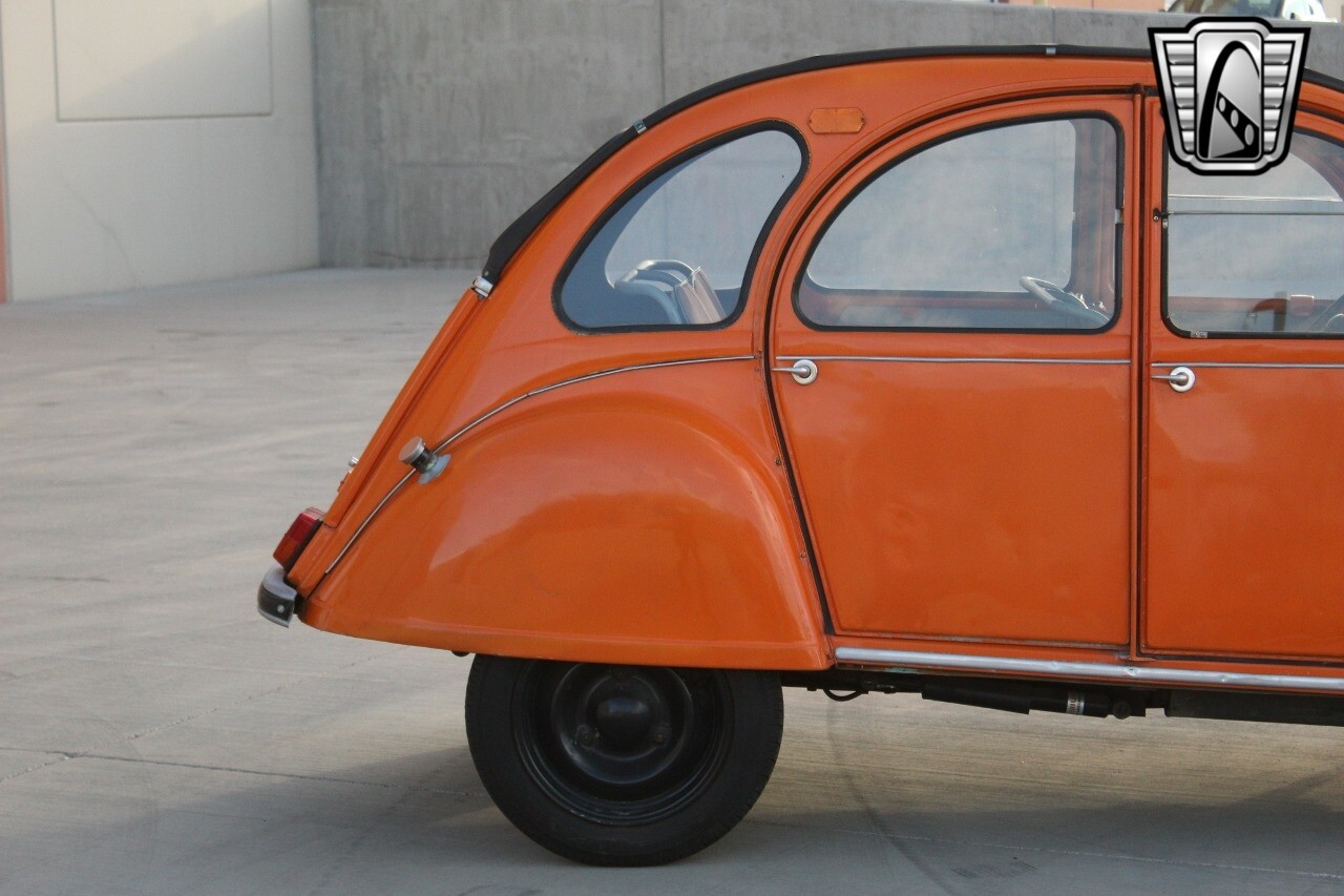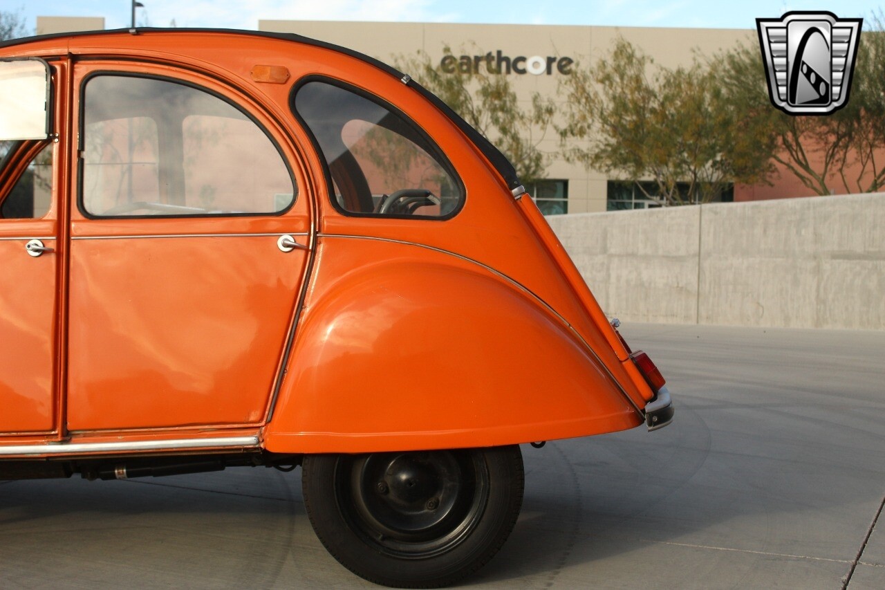 Gateway Classic Cars of Scottsdale is pleased to present for sale on consignment, this cool little 1967 Citroen 2CV that comes with quite a story! A quick internet search done by yours truly revealed a movie promo photo of Heather Graham, who played Felicity Shagwell in the 1999 comedy, Austin Powers The Spy Who Shagged Me, standing in front of the back end of an Orange Citroen 2CV. According to the owner, this was that car! A little digging revealed it was just a promo photo and the car most likely did not make it into the movie but everybody loves a good car story, right? This orange piece of eye candy is powered by a small but mighty 375cc H2 Air Cooled gas engine producing a mind boggling 9hp that is mated to a 4 speed manual transmission, both believed to be untouched in terms of a rebuild. You really can't help but grin and possibly giggle when you get behind the wheel. The shifter location alone makes you feel like you're in something other than a car. This car measures a wheelbase of 94.5 inches, 152 inch overall length, 58.3 inches of width and 63 inches high and weighs in at a feathery 1323lbs! The seats legitimately look like lawn furniture but are surprisingly comfortable and forgiving. This car features an AM Radio and cloth seats. The orange body is all there but shows wear after 55 years of coming off the production line. The split driver and passenger windows flip up, rather than roll down to add to the uniqueness of the car. There is a lot to take in on this car and the list of differences from more traditional vehicles continue to grow the more you look at it. This one is surely a conversation piece and a rarity that is sure to blow people's minds when you roll in to your local car show. Inquire with our sales department on how to welcome this neat little piece of cinematic history into your collection today! .