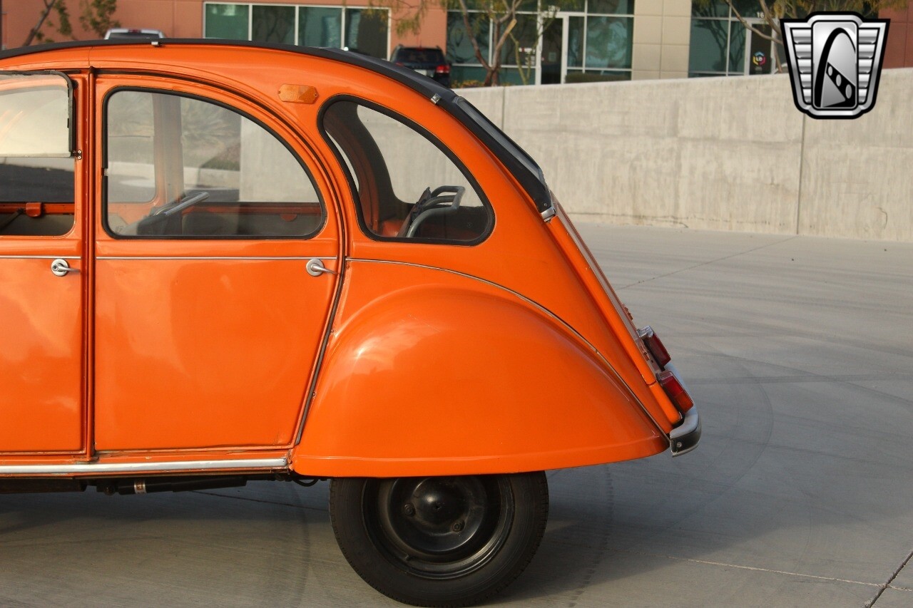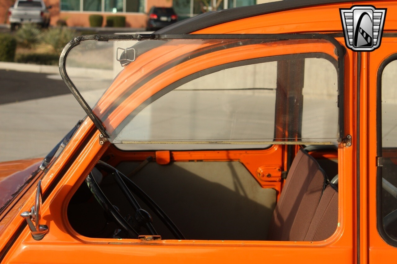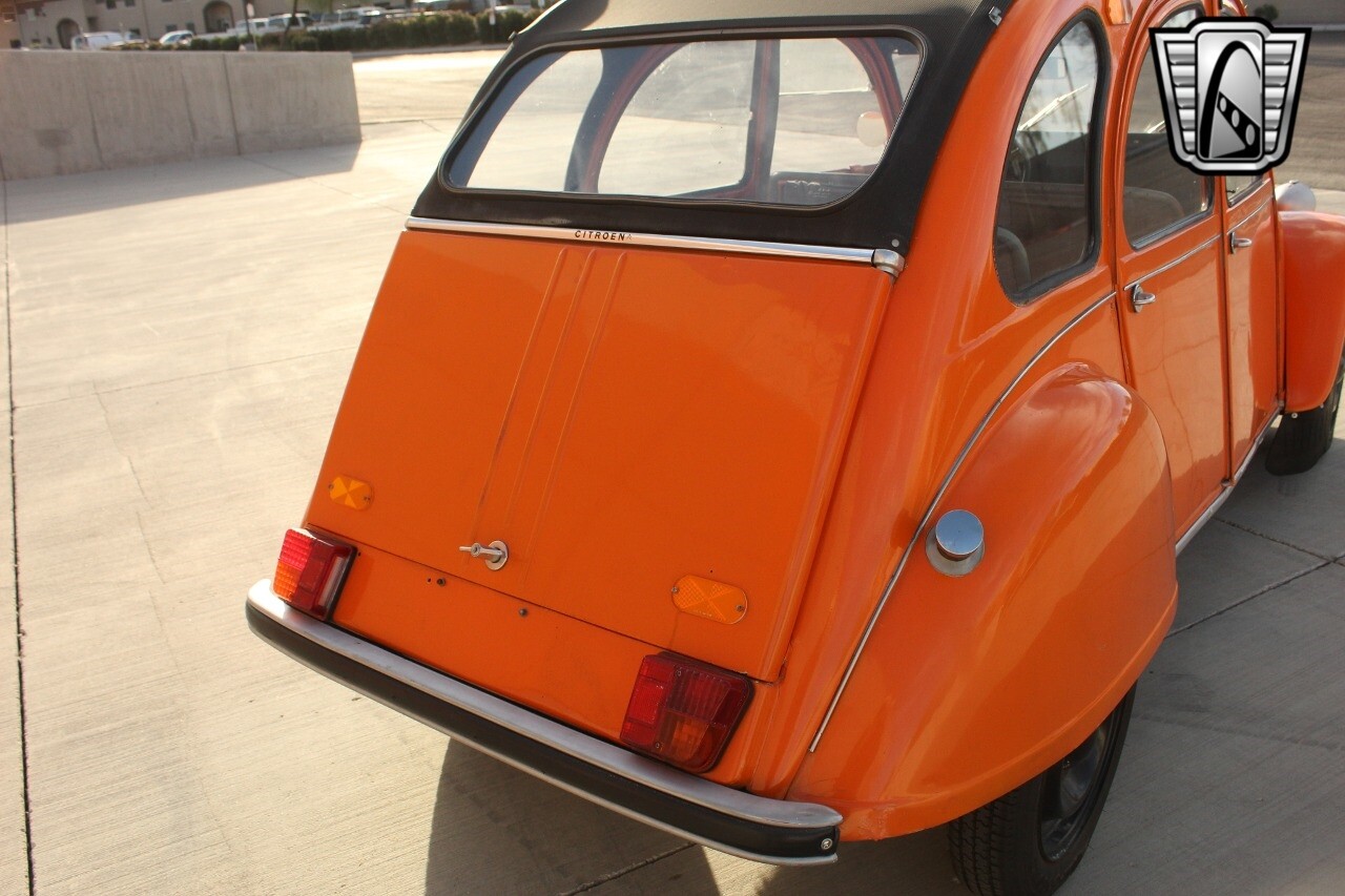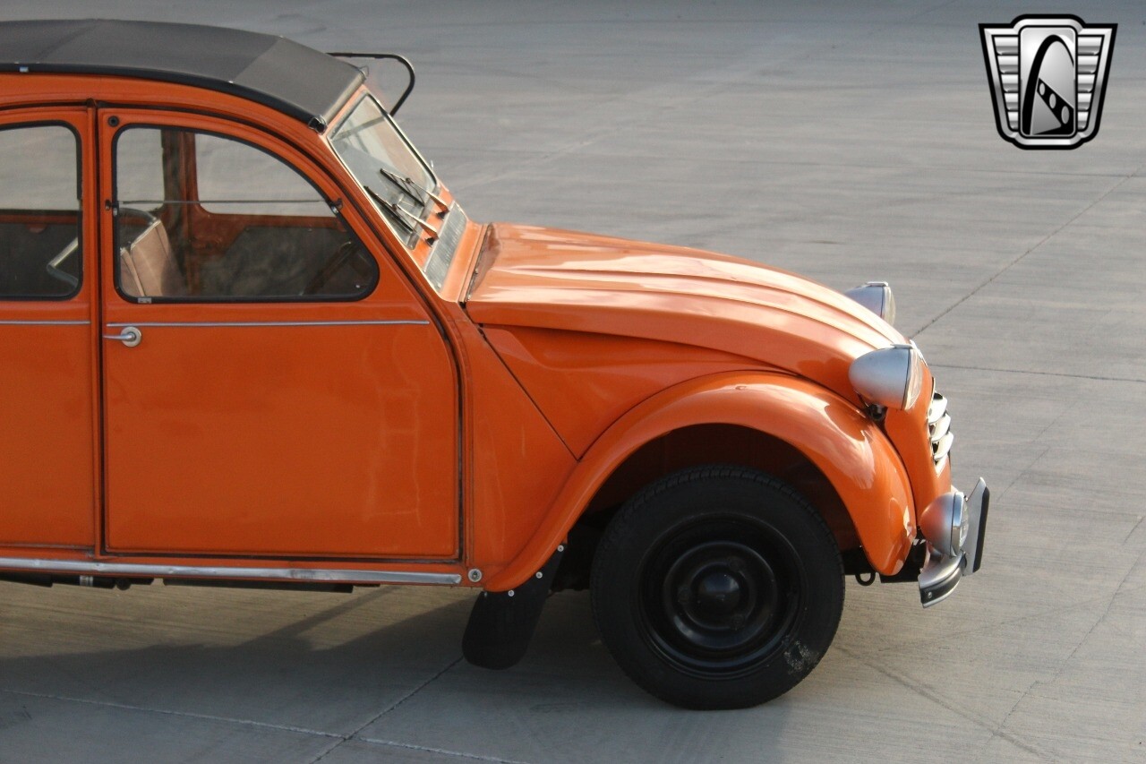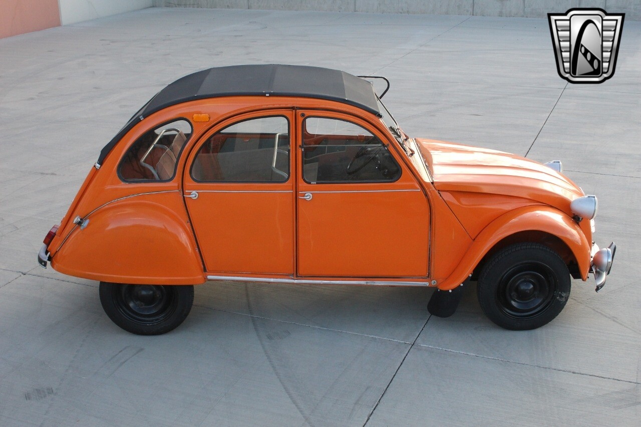 Gateway Classic Cars of Scottsdale is pleased to present for sale on consignment, this cool little 1967 Citroen 2CV that comes with quite a story! A quick internet search done by yours truly revealed a movie promo photo of Heather Graham, who played Felicity Shagwell in the 1999 comedy, Austin Powers The Spy Who Shagged Me, standing in front of the back end of an Orange Citroen 2CV. According to the owner, this was that car! A little digging revealed it was just a promo photo and the car most likely did not make it into the movie but everybody loves a good car story, right? This orange piece of eye candy is powered by a small but mighty 375cc H2 Air Cooled gas engine producing a mind boggling 9hp that is mated to a 4 speed manual transmission, both believed to be untouched in terms of a rebuild. You really can't help but grin and possibly giggle when you get behind the wheel. The shifter location alone makes you feel like you're in something other than a car. This car measures a wheelbase of 94.5 inches, 152 inch overall length, 58.3 inches of width and 63 inches high and weighs in at a feathery 1323lbs! The seats legitimately look like lawn furniture but are surprisingly comfortable and forgiving. This car features an AM Radio and cloth seats. The orange body is all there but shows wear after 55 years of coming off the production line. The split driver and passenger windows flip up, rather than roll down to add to the uniqueness of the car. There is a lot to take in on this car and the list of differences from more traditional vehicles continue to grow the more you look at it. This one is surely a conversation piece and a rarity that is sure to blow people's minds when you roll in to your local car show. Inquire with our sales department on how to welcome this neat little piece of cinematic history into your collection today! .