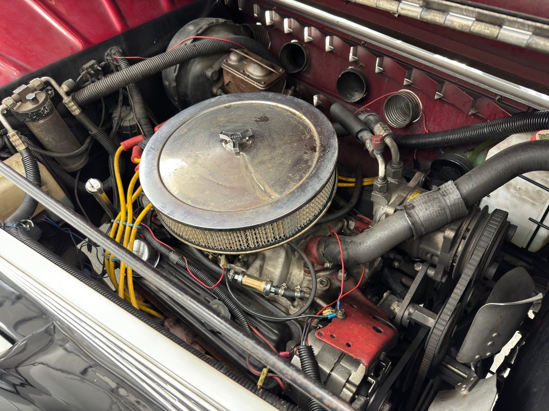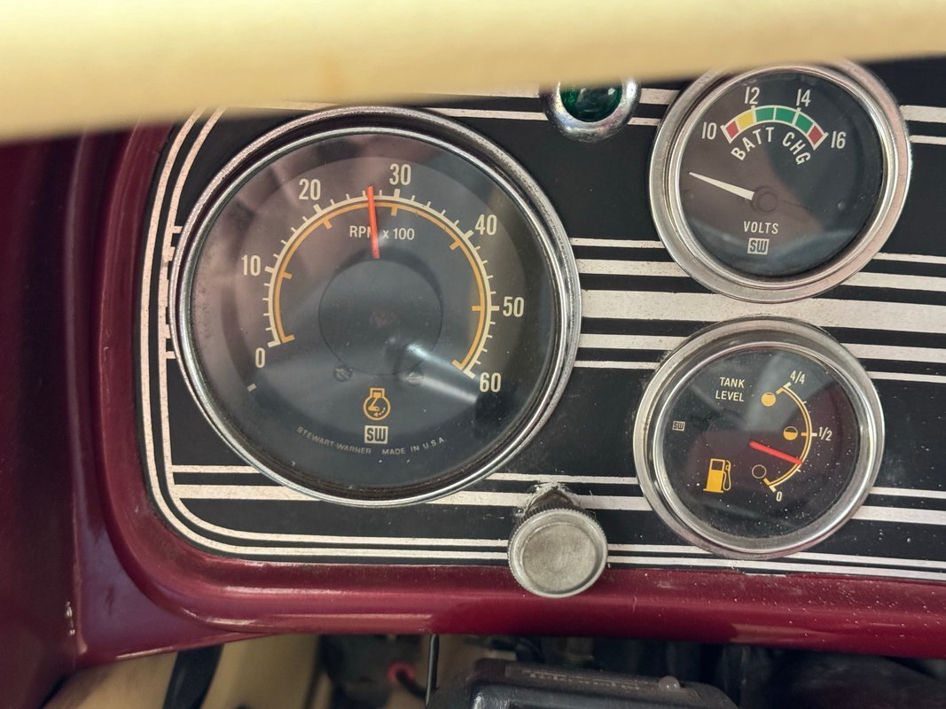 A 350ci V8 is under the engine covers and is topped with a 4-barrel carburetor and tied to a TH350 3-speed automatic transmission. Power gets sent to the rear 10 bolt axle and braking is accomplished with power disc up front and power drums in the rear. Visually, the engine is driver quality and not as showy as the exterior of the car.