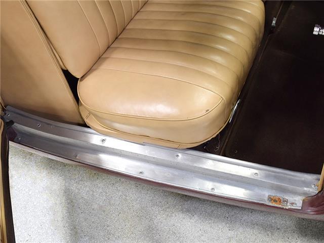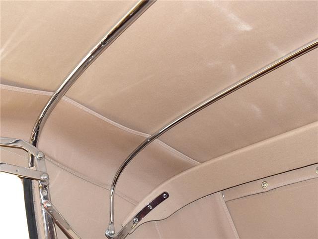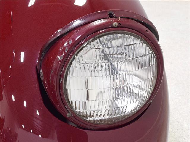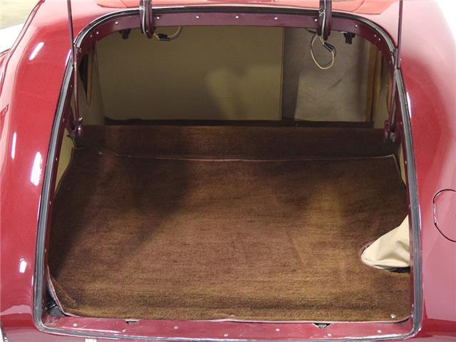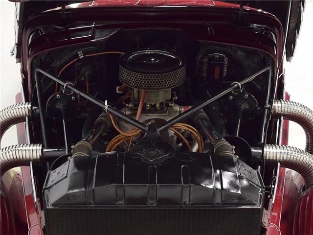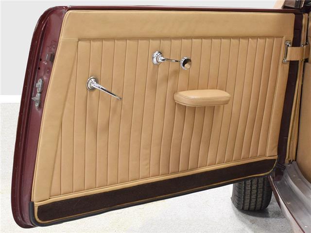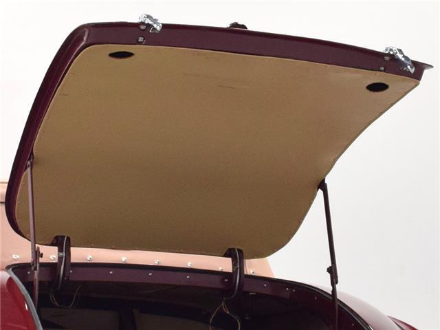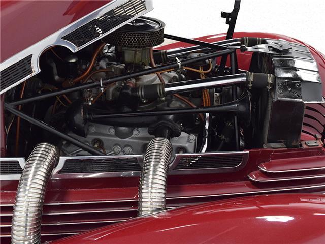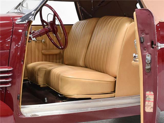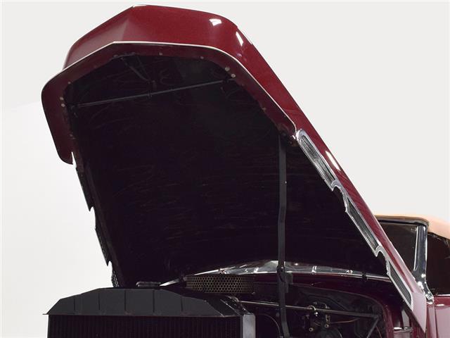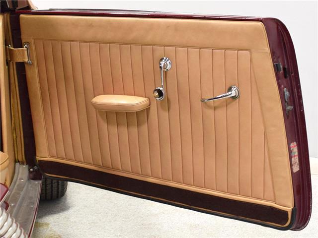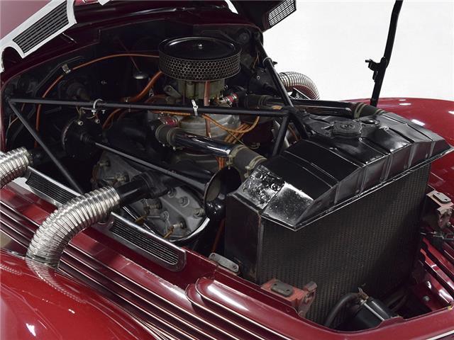 Yes, we know there were no supercharged Cords in 1936—this one apparently had the supercharger and attendant side pipes installed sometime in the 1950s. It did not stop it from being certified by the Auburn-Cord-Duesenberg Club, as it still has its original driveline and bodywork. We don’t believe it has ever been disassembled for a full restoration, as the underside is pretty original. It was probably painted in the 1970s, the interior is quite a bit newer, and the tan canvas top is brand new, installed at significant expense by noted trimmer Ralph Farinacci (it’s so new we didn’t want to risk folding it for photos). The paint is a wonderful shade of burgundy that suits the sporting Sportsman just fine, and even though it’s probably 50 years old it still has a nice shine to it. There’s some checking and a few touch-ups, but nothing that detracts from the spectacular look of the sleek Cord. Doors fit well, the clamshell hood opens and closes properly, and it has that intangible feeling of quality that only cars that have never been disassembled can offer. There’s not a lot of chrome on an 810, but the brightwork that is in place remains in overall very good condition with no notable issues. Even the side pipes are correct pieces and really add to the sporty look of Cord’s 2-seat convertible. From any angle, this is a gorgeous car.