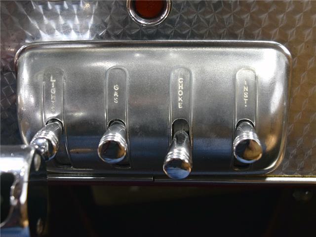 We believe the tan leather interior is more recent than the paint work, offering extremely clean hides, correct brown carpets for contrast, and pleated door panels that are authentically styled. A big 3-spoke steering wheel with horn ring makes the front-wheel-drive Cord surprisingly easy to handle and the engine-turned dash is probably the most beautiful instrument panel of the 1930s. The critical gauges are operational—speedo, tach, oil pressure, ammeter, fuel gauge (although we don’t trust its accuracy), with the liquid-filled temperature gauge being offline. The radio head is missing, sent out for rebuilding and misplaced by the rebuilder but we are in search of a replacement, but the rest of the hardware is in beautiful condition. Of course there’s the delicate pre-selector transmission lever on the side of the steering column and if you’re a first-time Cord driver it’ll take some acclimation, but the overall system is pretty easy to use. Twin cranks on the ends of the dashboard operate the pop-up headlights and each seat is adjustable independently so anyone can get comfortable in the Cord. There’s also a battery cut-off switch at the base of the driver’s seat (the battery is right underneath the seat), which is always a good idea. There’s a bit of storage behind the seat, including the spare tire, as well as access to the nicely upholstered trunk, which is big enough for all your overnight bags on a long tour.