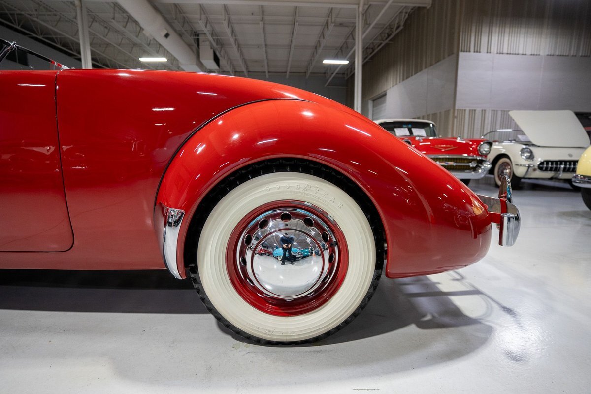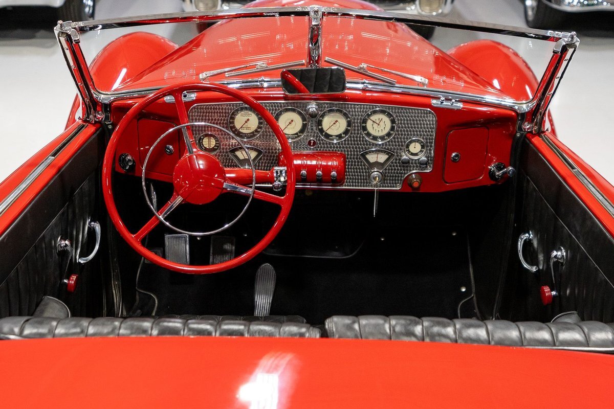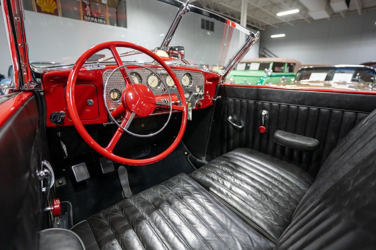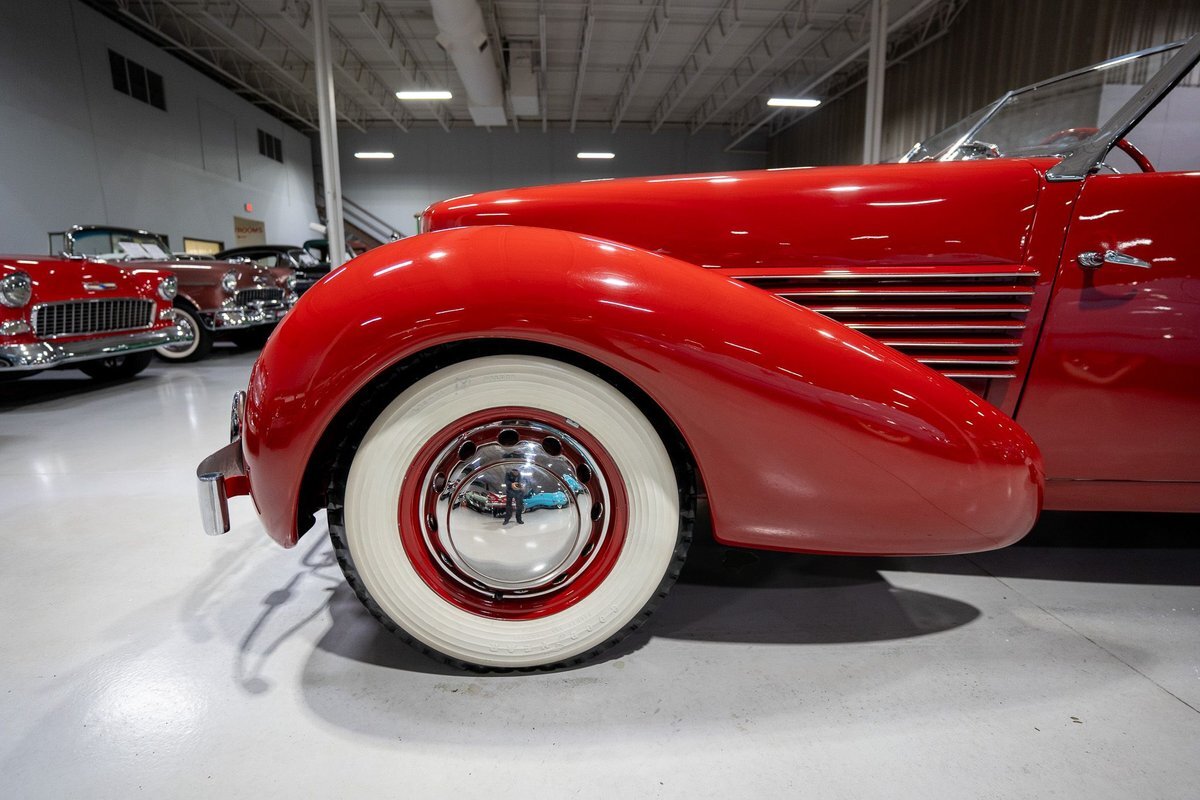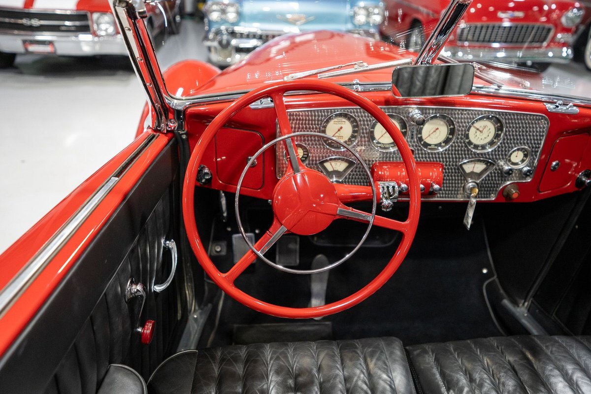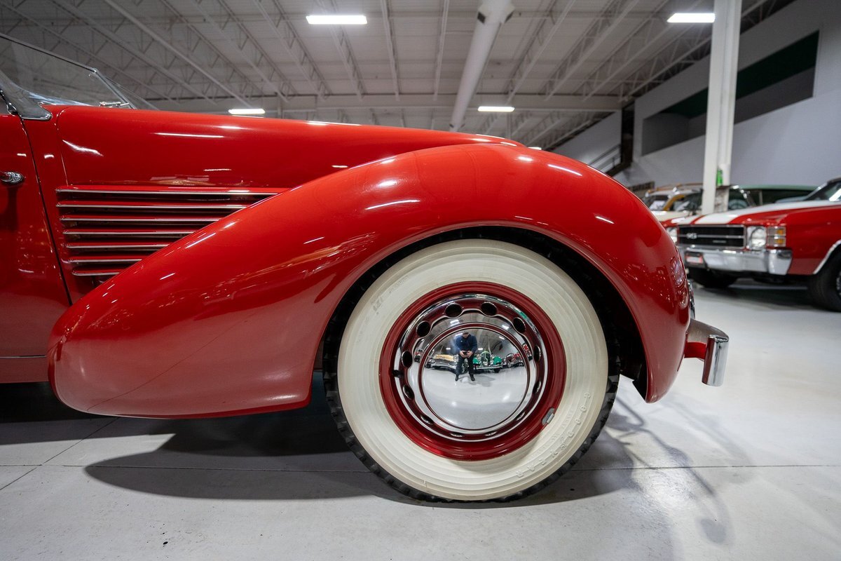 This 1936 Cord 810 Sportsman Convertible is a beautifully restored, concours award-winning example with southern history. Established in 1929, the Cord Corporation, was the namesake holding company for Errett Lobban "E.L." Cord's automotive ventures, including his shares in the Auburn Automobile Co. and Dusenberg, Inc., and the Lycoming Mfg. Co. among others. Shortly after the establishment of the Cord Corporation, the company began producing its first automobile in June 1929 with the Cord nameplate, the Cord L-29. While the Cord L-29 was and continues to be lauded for its gorgeous stance and appearance, the timing for its release could not have been worse. With the onset of the Great Depression starting in late 1929 and then continuing into 1930 and beyond, Cord production ceased in the end of 1931 and the remaining 157 models in stock were sold off at 1932 models. By the mid-1930s the economy began to recover and Cord reintroduced its novel front-wheel-drive automobiles, only this time sporting a new, distinctive "Coffin Nose" design. Styled by Gordon Buehrig, the new "Coffin Nose" Cord 810 models were essentially designed to be the "Baby Duesenberg." Not only did the 1936 Cord 810s feature famous new styling, they are also renowned for a number of revolutionary updates automobile design including front wheel drive, "semi-automatic" transmissions, hide-away convertible tops, and "roll up headlights." Touted in advertising materials as a car that "always 'goes where it is pointed,'" the front wheel drive design of the 810 Cord also allowed for a lower ride height, which eliminated the need for running boards. Another innovation for Cord in 1936 was the introduction of a "semi-automatic" transmission that utilized a "remote-controlled" pre-selector shifter that is set into the desired gear on the dash and then when the clutch is depressed the transmission shifts into the selected gear. Not only did this unique transmission design make for a roomier driver's compartment, it also paved the way for the true automatic transmissions that rose in popularity in the 50s and now dominate in automobiles today. Despite their ingenuity, financial issues finally put a halt on Cord's production in August 1937, with the company producing a mere 2,992 810 and 812 models during its short run from 1936-1937. This particular example spent its most recent years in several prominent collections and was awarded Best in Class and Best in Show awards at a concours event several years ago. Powering this '36 Cord Sportsman is a 288.64 Cubic Inch Lycoming V8 engine fed by a single 2 barrel carburetor that together were said to have created 125 horsepower when new. The 289 Lycoming V8 is mated to a 4 speed manual transaxle that is shifted via a novel for 1936 dash-mounted remote control shifter where the driver selects their desired gear, then depresses the clutch pedal and the car shifts into that gear. Exhaust exits this Cord's impressive powerplant via a single chrome-tipped exhaust port. Driving power is sent from the Lycoming V8 and transaxle to the front wheels making this Cord Convertible a front wheel drive vehicle. This 1936 Cord 810 rides on a set of wide whitewall bias-ply tires mounted on steel wheels and they are accented with a set of full wheelcovers, which together give this convertible a truly upscale look. The exterior chrome and brightwork on this 1936 Sportsman is gorgeous and helps an already stand-out car further stand out in a crowd. The black cloth convertible top is in wonderful condition as well and, like virtually every car of the pre-war era, is manually operated. Another novelty of this 1936 Cord Convertible are the retractable headlights that can be raised for nighttime driving or lowered flush into the fenders during the day. The exterior on this '36 Cord 810 has been refinished in a beautiful Rich Maroon paint that completes the fantastic exterior appearance of the CCCA Full Classic. The interior on this 1936 Cord 810 Sportsman is absolutely stunning! The bench seat has been reupholstered in beautiful black leather that provides a nice contrast with the rest of the car. The matching upholstered door panels and armrests, black carpeting, color-matched painted dash with its engine-turned instrument panel, and steering wheel are all in fantastic condition as well and appear to be in their stock configuration. The instrument cluster features an impressive collection of important instrumentation including a 150 MPH speedometer, 5,000 RPM tachometer, oil pressure gauge, temperature gauge, amp gauge, and fuel gauge, along with an AM radio and full-size clock. The dash is finished with a pair of locking gloveboxes that straddle the instrument panel. Whether you're buying your first full classic car or you're an established ACD or CCCA collector, this 1936 Cord 810 Sportsman Convertible would make an excellent choice. Give Ellingson's a call today at763-428-7337!