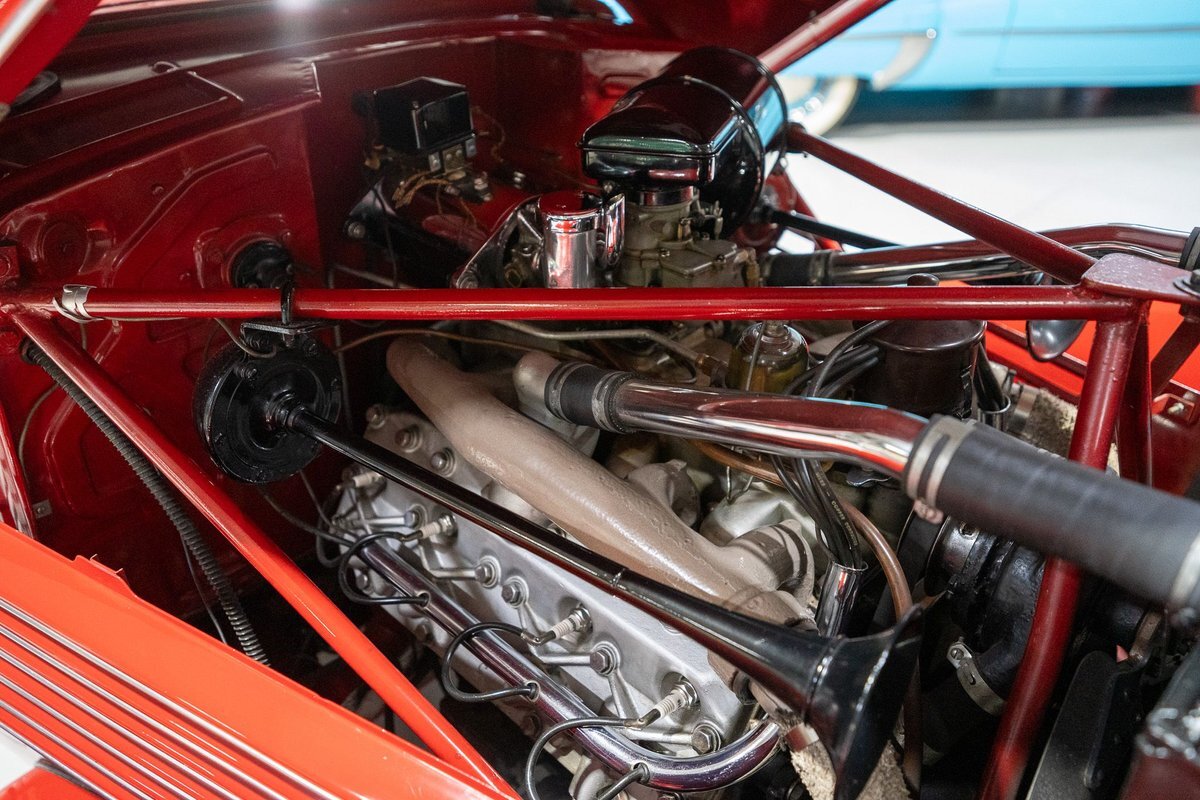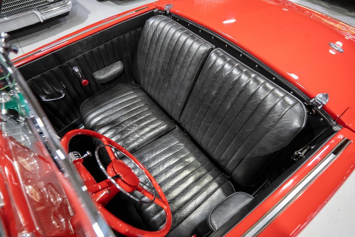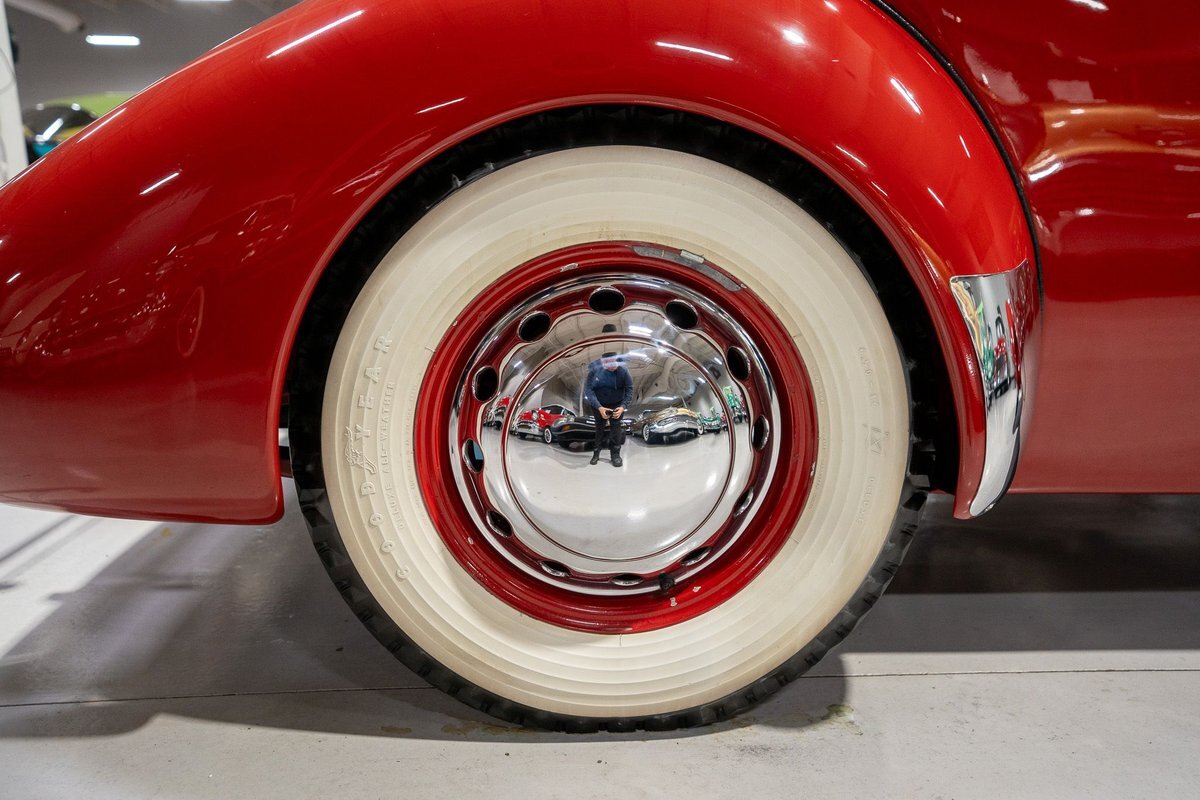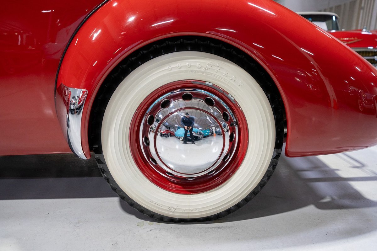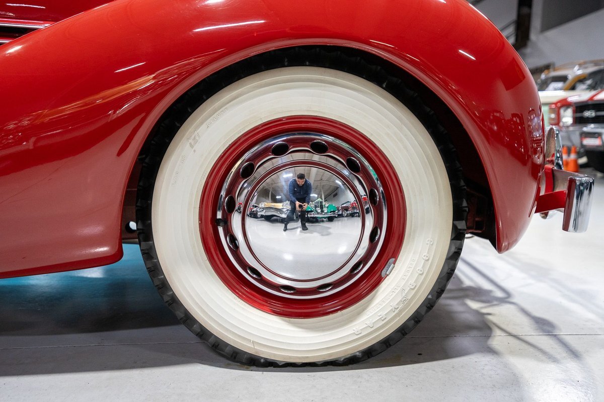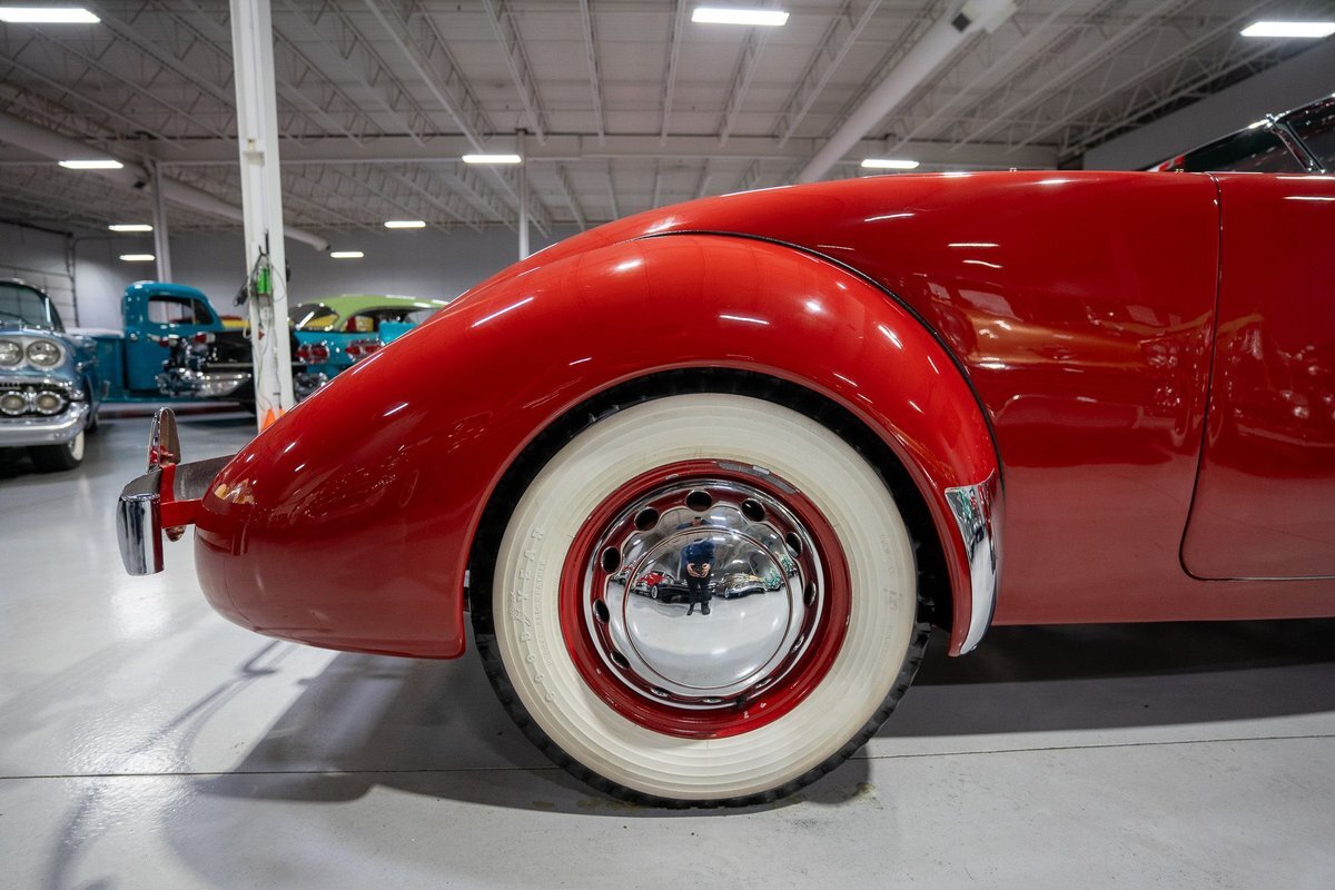 This 1936 Cord 810 Sportsman Convertible is a beautifully restored, concours award-winning example with southern history. Established in 1929, the Cord Corporation, was the namesake holding company for Errett Lobban "E.L." Cord's automotive ventures, including his shares in the Auburn Automobile Co. and Dusenberg, Inc., and the Lycoming Mfg. Co. among others. Shortly after the establishment of the Cord Corporation, the company began producing its first automobile in June 1929 with the Cord nameplate, the Cord L-29. While the Cord L-29 was and continues to be lauded for its gorgeous stance and appearance, the timing for its release could not have been worse. With the onset of the Great Depression starting in late 1929 and then continuing into 1930 and beyond, Cord production ceased in the end of 1931 and the remaining 157 models in stock were sold off at 1932 models. By the mid-1930s the economy began to recover and Cord reintroduced its novel front-wheel-drive automobiles, only this time sporting a new, distinctive "Coffin Nose" design. Styled by Gordon Buehrig, the new "Coffin Nose" Cord 810 models were essentially designed to be the "Baby Duesenberg." Not only did the 1936 Cord 810s feature famous new styling, they are also renowned for a number of revolutionary updates automobile design including front wheel drive, "semi-automatic" transmissions, hide-away convertible tops, and "roll up headlights." Touted in advertising materials as a car that "always 'goes where it is pointed,'" the front wheel drive design of the 810 Cord also allowed for a lower ride height, which eliminated the need for running boards. Another innovation for Cord in 1936 was the introduction of a "semi-automatic" transmission that utilized a "remote-controlled" pre-selector shifter that is set into the desired gear on the dash and then when the clutch is depressed the transmission shifts into the selected gear. Not only did this unique transmission design make for a roomier driver's compartment, it also paved the way for the true automatic transmissions that rose in popularity in the 50s and now dominate in automobiles today. Despite their ingenuity, financial issues finally put a halt on Cord's production in August 1937, with the company producing a mere 2,992 810 and 812 models during its short run from 1936-1937. This particular example spent its most recent years in several prominent collections and was awarded Best in Class and Best in Show awards at a concours event several years ago. Powering this '36 Cord Sportsman is a 288.64 Cubic Inch Lycoming V8 engine fed by a single 2 barrel carburetor that together were said to have created 125 horsepower when new. The 289 Lycoming V8 is mated to a 4 speed manual transaxle that is shifted via a novel for 1936 dash-mounted remote control shifter where the driver selects their desired gear, then depresses the clutch pedal and the car shifts into that gear. Exhaust exits this Cord's impressive powerplant via a single chrome-tipped exhaust port. Driving power is sent from the Lycoming V8 and transaxle to the front wheels making this Cord Convertible a front wheel drive vehicle. This 1936 Cord 810 rides on a set of wide whitewall bias-ply tires mounted on steel wheels and they are accented with a set of full wheelcovers, which together give this convertible a truly upscale look. The exterior chrome and brightwork on this 1936 Sportsman is gorgeous and helps an already stand-out car further stand out in a crowd. The black cloth convertible top is in wonderful condition as well and, like virtually every car of the pre-war era, is manually operated. Another novelty of this 1936 Cord Convertible are the retractable headlights that can be raised for nighttime driving or lowered flush into the fenders during the day. The exterior on this '36 Cord 810 has been refinished in a beautiful Rich Maroon paint that completes the fantastic exterior appearance of the CCCA Full Classic. The interior on this 1936 Cord 810 Sportsman is absolutely stunning! The bench seat has been reupholstered in beautiful black leather that provides a nice contrast with the rest of the car. The matching upholstered door panels and armrests, black carpeting, color-matched painted dash with its engine-turned instrument panel, and steering wheel are all in fantastic condition as well and appear to be in their stock configuration. The instrument cluster features an impressive collection of important instrumentation including a 150 MPH speedometer, 5,000 RPM tachometer, oil pressure gauge, temperature gauge, amp gauge, and fuel gauge, along with an AM radio and full-size clock. The dash is finished with a pair of locking gloveboxes that straddle the instrument panel. Whether you're buying your first full classic car or you're an established ACD or CCCA collector, this 1936 Cord 810 Sportsman Convertible would make an excellent choice. Give Ellingson's a call today at763-428-7337!