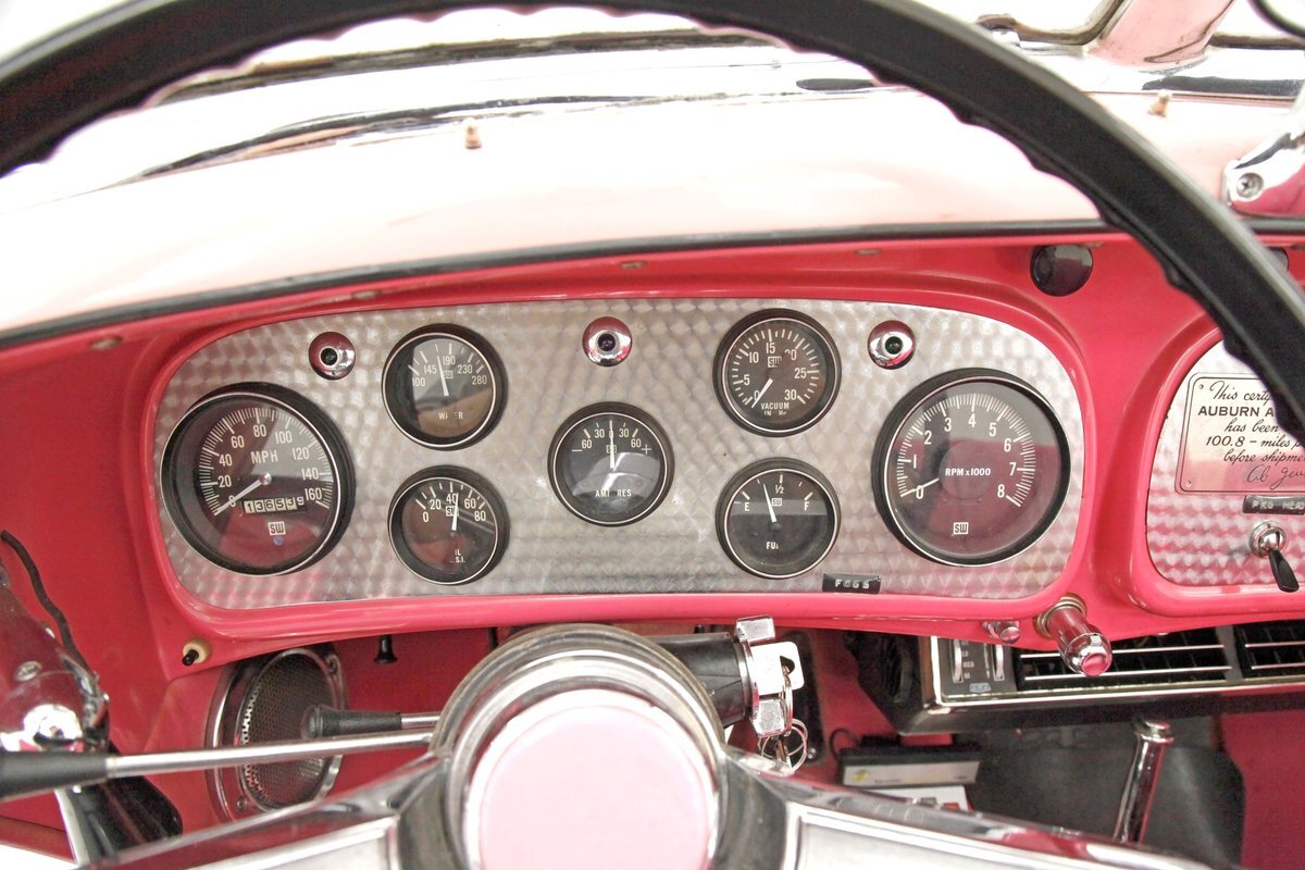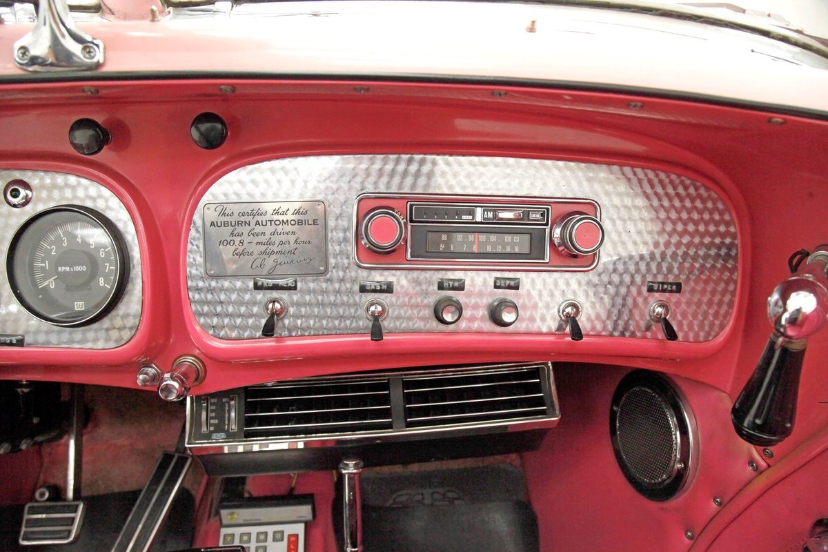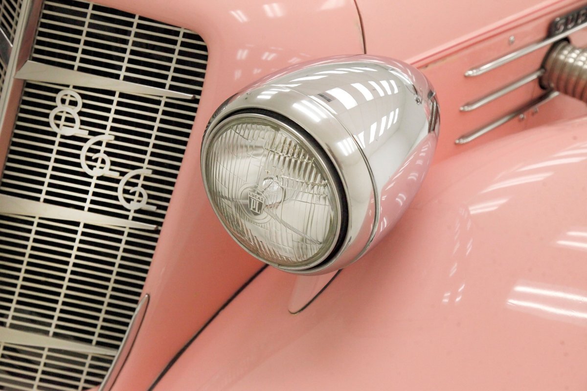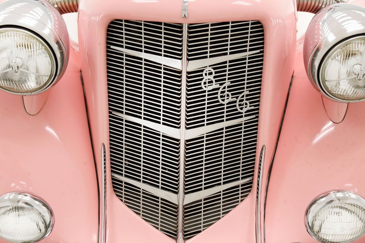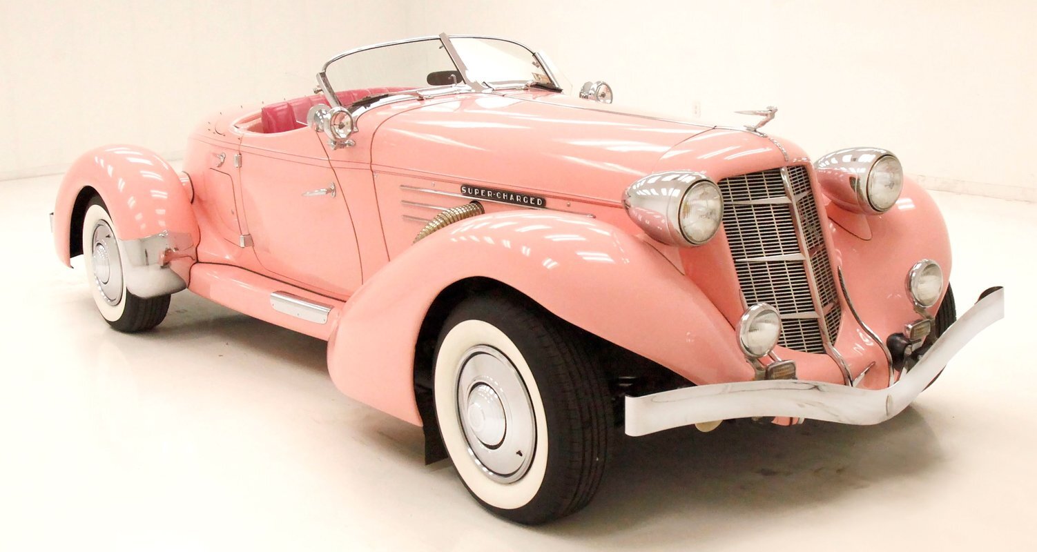 Fast forward to 1976 and go to Broken Arrow, Indiana and look up a gentleman named Glenn Pray. Here you'll find a man, who is in his second attempt at a reproduction, the first being the Cord which did not work out. So here we have his second attempt in the form of a reproduction fiberglass automobile emulating the Auburn 851/2 Boattail Speedsters. It does a pretty good job of it, with some obvious clues to the fact that it is a reproduction. This 13,653 title verified actual mile example was custom ordered in the blazing pink with hot pink lipstick interior, and all the options this manufacturer could muster up at the time. I'll put it into the category of and now I've literally seen everything!