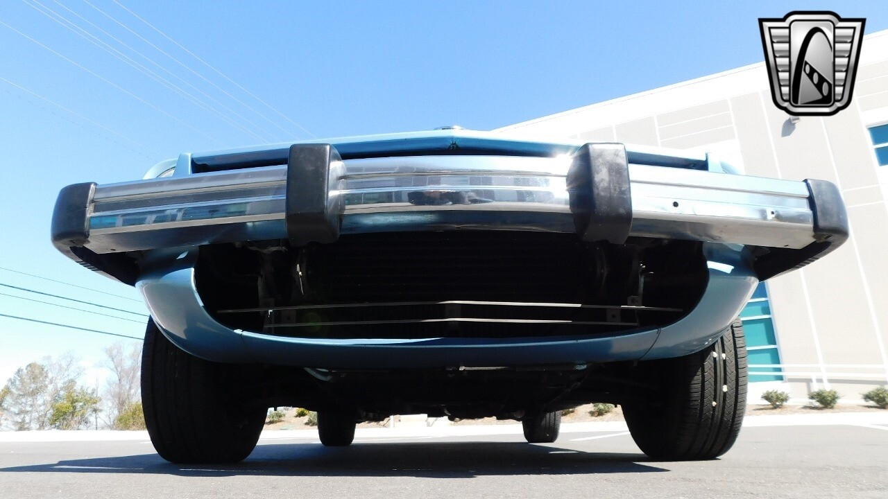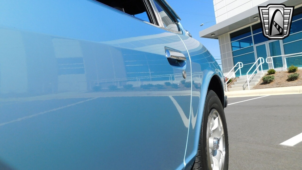 The car is finished in Light Blue Metallic (305) and features chrome bumpers with rubber end caps, a contrasting gray tail panel, a retractable antenna, and a black driver-side mirror. A collection of paint meter readings can be seen in the gallery below.