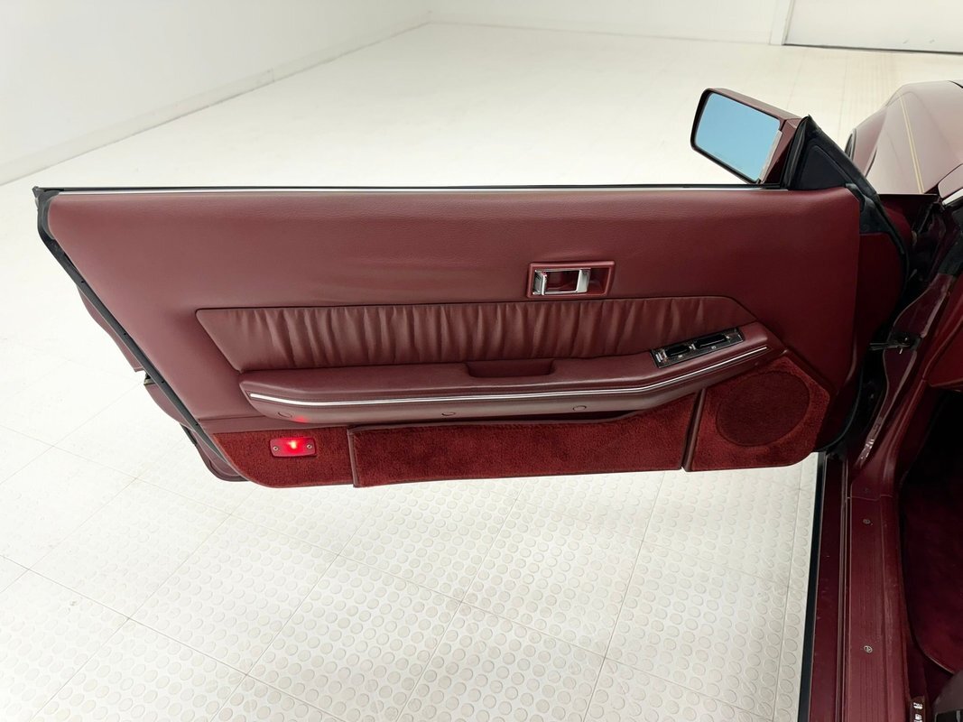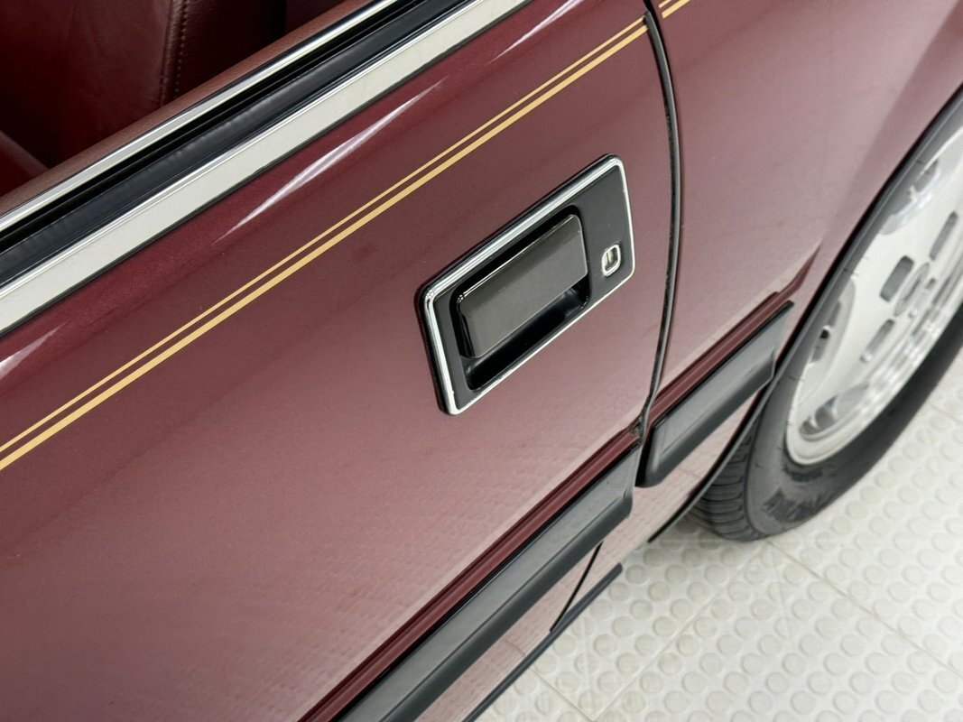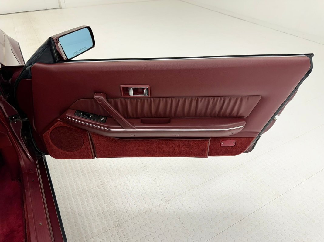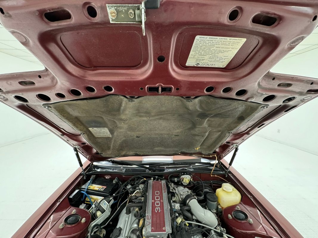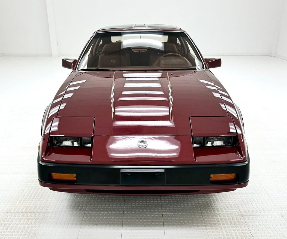 Like a fine merlot, this vintage car is bathed in a coat of Wine paint, a shade of red that is cool enough to be sporty but not so bright as to attract law enforcement. The low, long nose and raked windshield are striking. The small bit of extension on the 2+2 adds to the wheelbase and in some Z-cars circled is preferred for claims of better handling that the shorter wheelbase of the 2 seater. Long doors and that angular rear quarter window create a dramatic profile. The headlights are a unique combination of exposed lenses and flip up and give the car its distinct face. The rear taillights are joined by a center reflector piece with 300ZX printed on it. During this transitional period, both the Datsun badge and the Nissan badge appear on the rear hatch lid. A gold double pinstripe shoots down the side of the car and the T-tops provide for open air driving or a bright, enclosed cabin. The paint and body are near immaculate, and we note one scratch on the rocker panel. The 4-lug vented wheels are original and are one of those design features that just work!