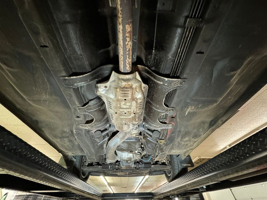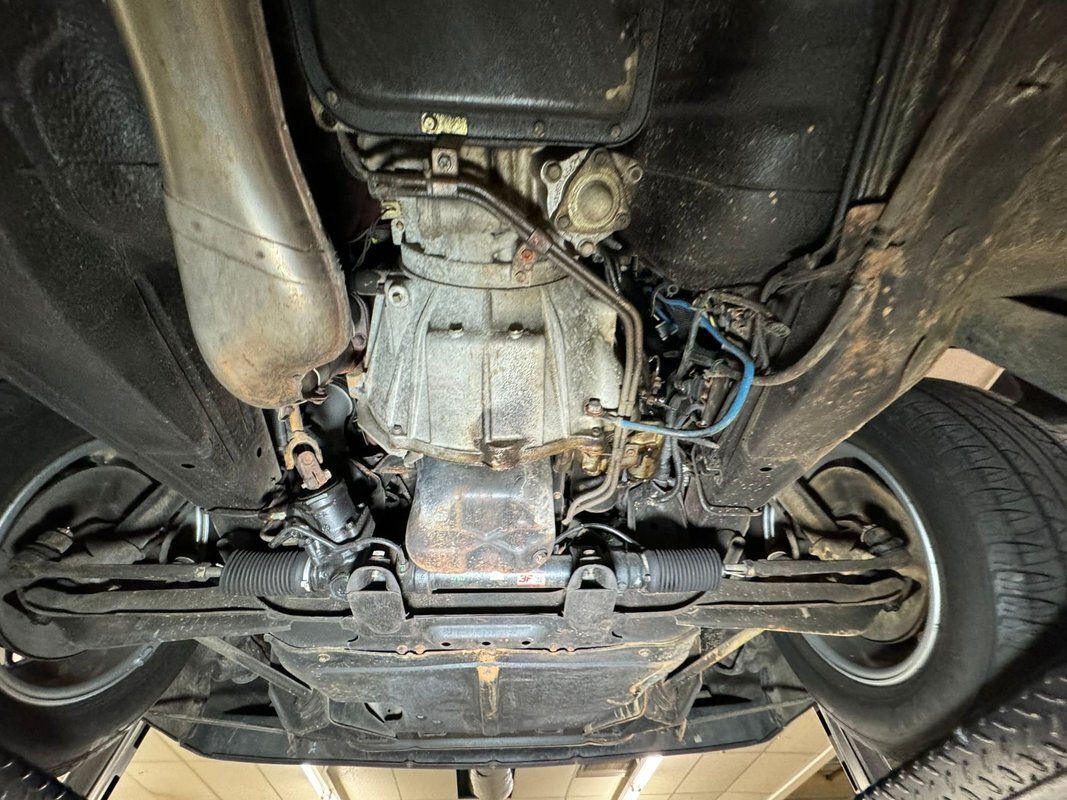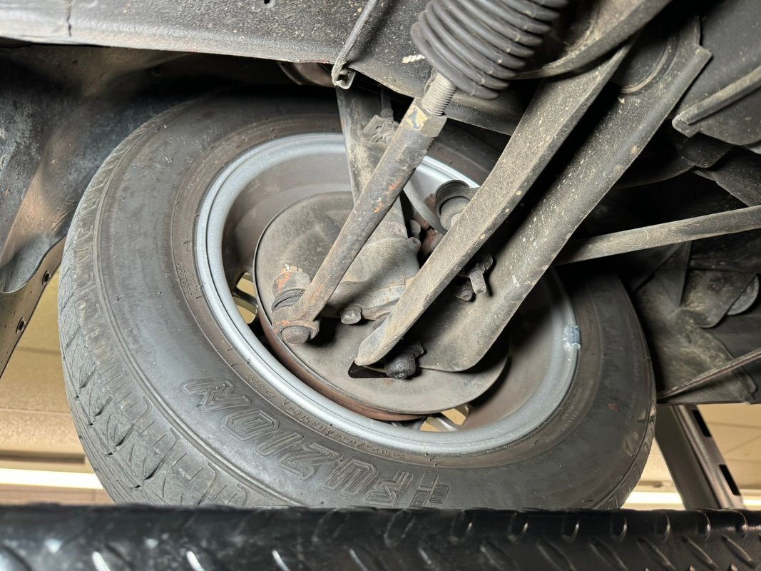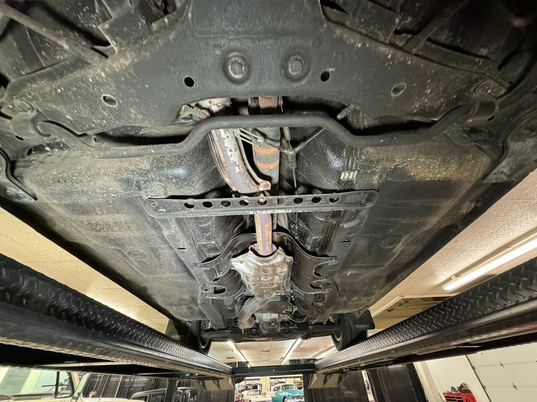 All very clean underneath and we love how the essentials are tucked up into a tunnel, leaving aerodynamic wide floors on either side. The condition here is a testament to the low mileage. A few spots of surface rust are noted, but nothing that would keep us up at night. We note some seepage on the rear differential on the cover side. The car is equipped with a single exhaust and muffler, exiting out the left side rear with a single tailpipe. McPherson struts in front and coil springs in back dampen the independent suspension at both ends.