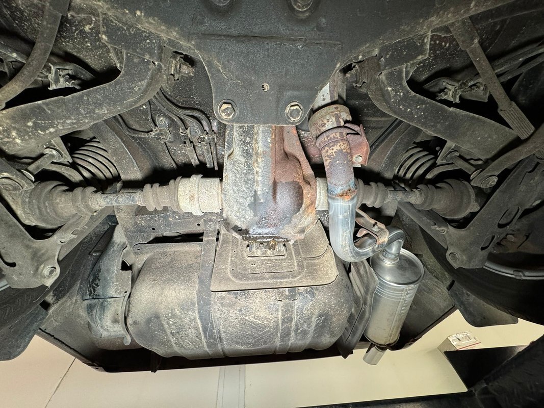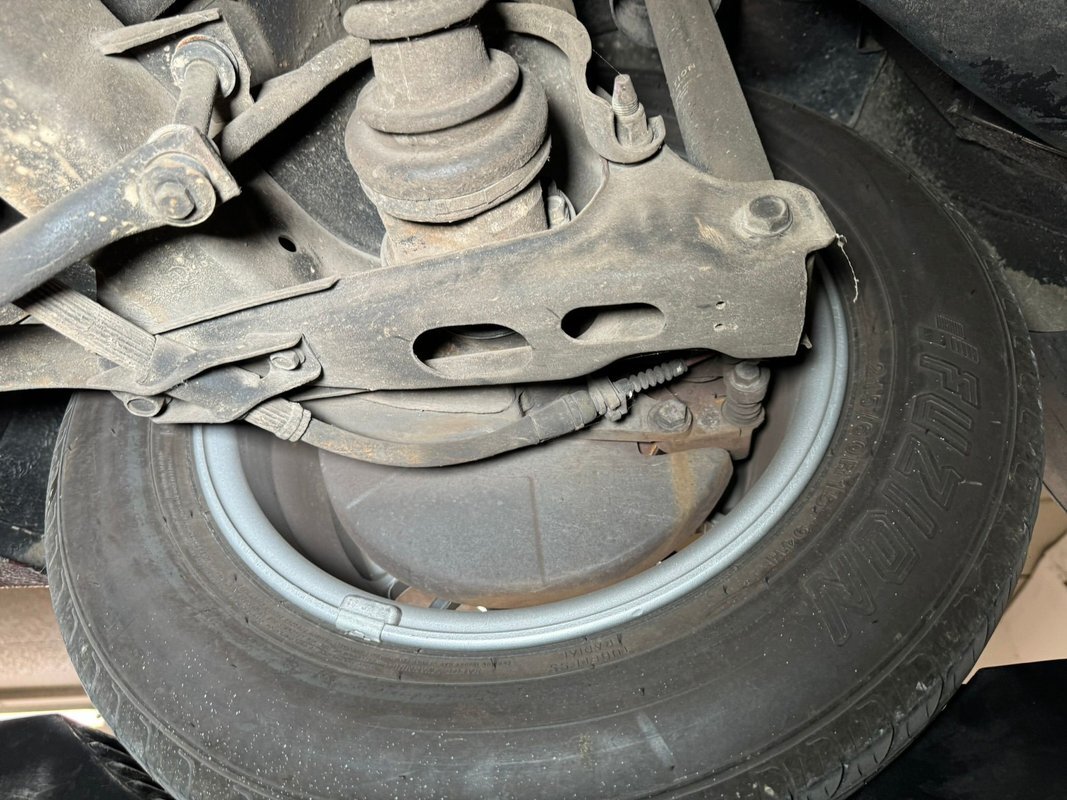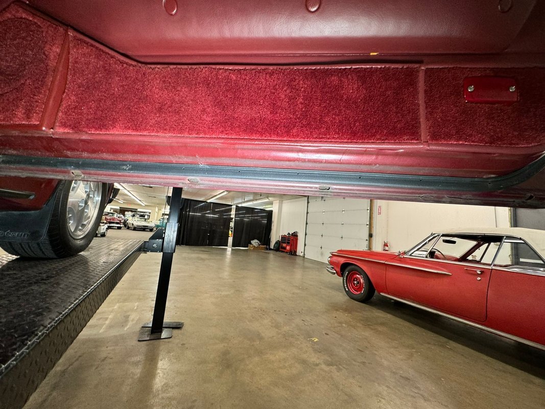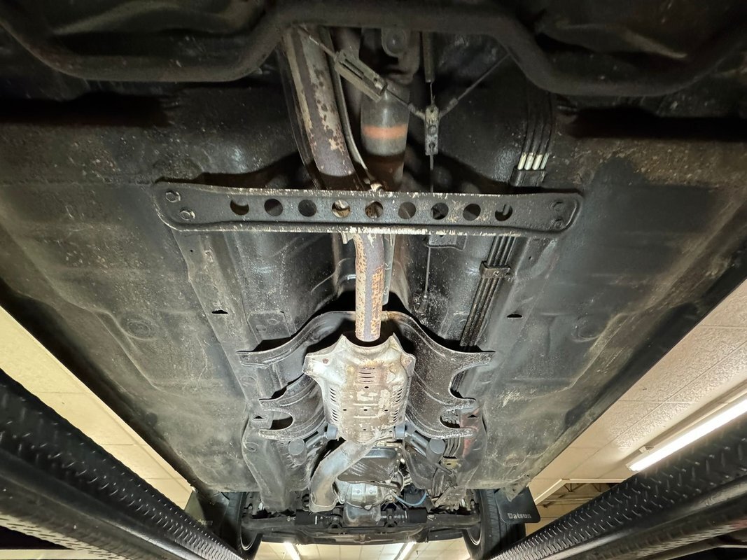 All very clean underneath and we love how the essentials are tucked up into a tunnel, leaving aerodynamic wide floors on either side. The condition here is a testament to the low mileage. A few spots of surface rust are noted, but nothing that would keep us up at night. We note some seepage on the rear differential on the cover side. The car is equipped with a single exhaust and muffler, exiting out the left side rear with a single tailpipe. McPherson struts in front and coil springs in back dampen the independent suspension at both ends.