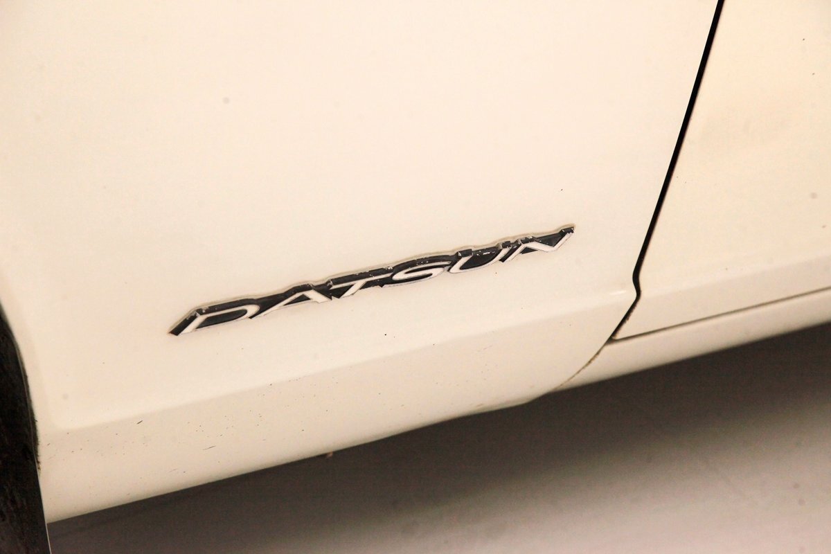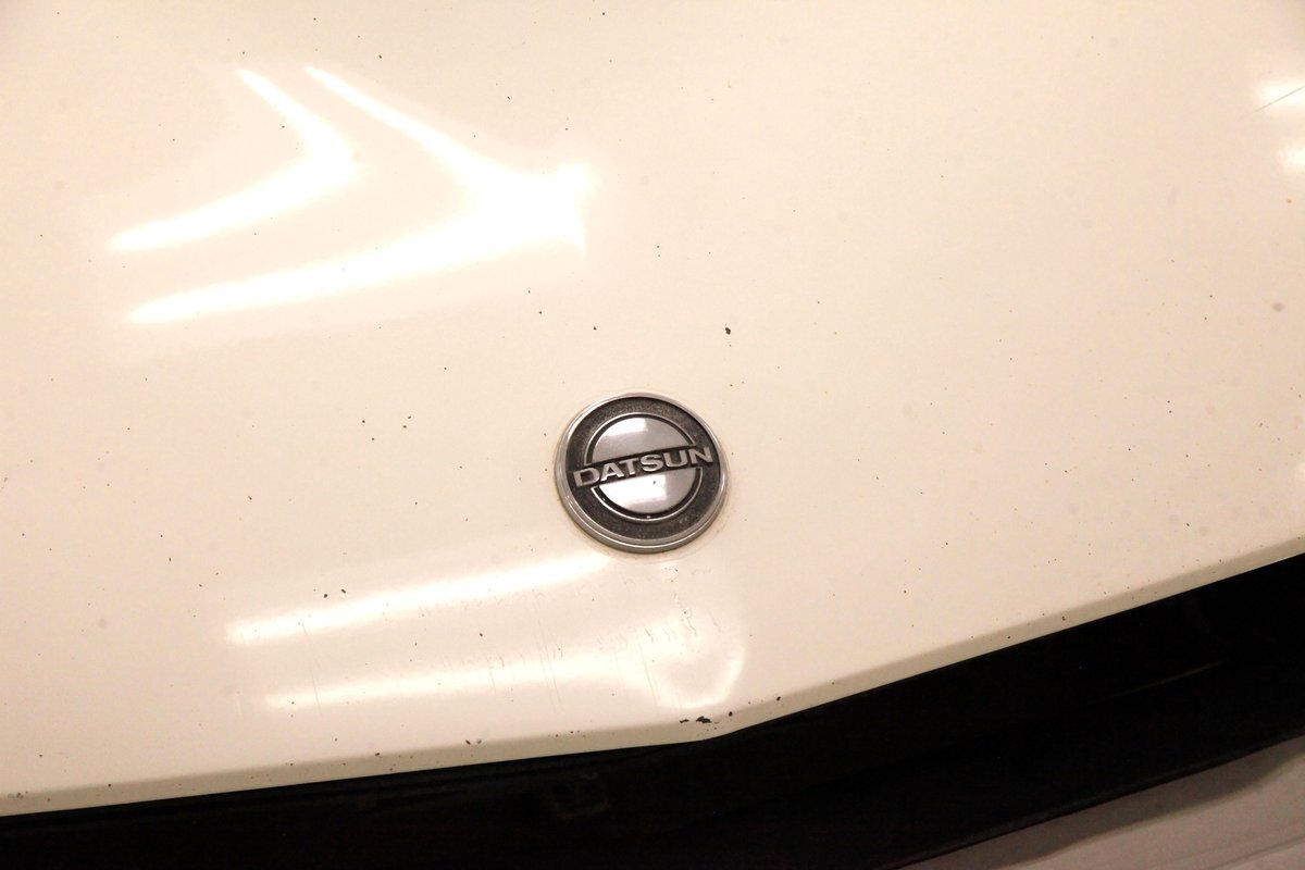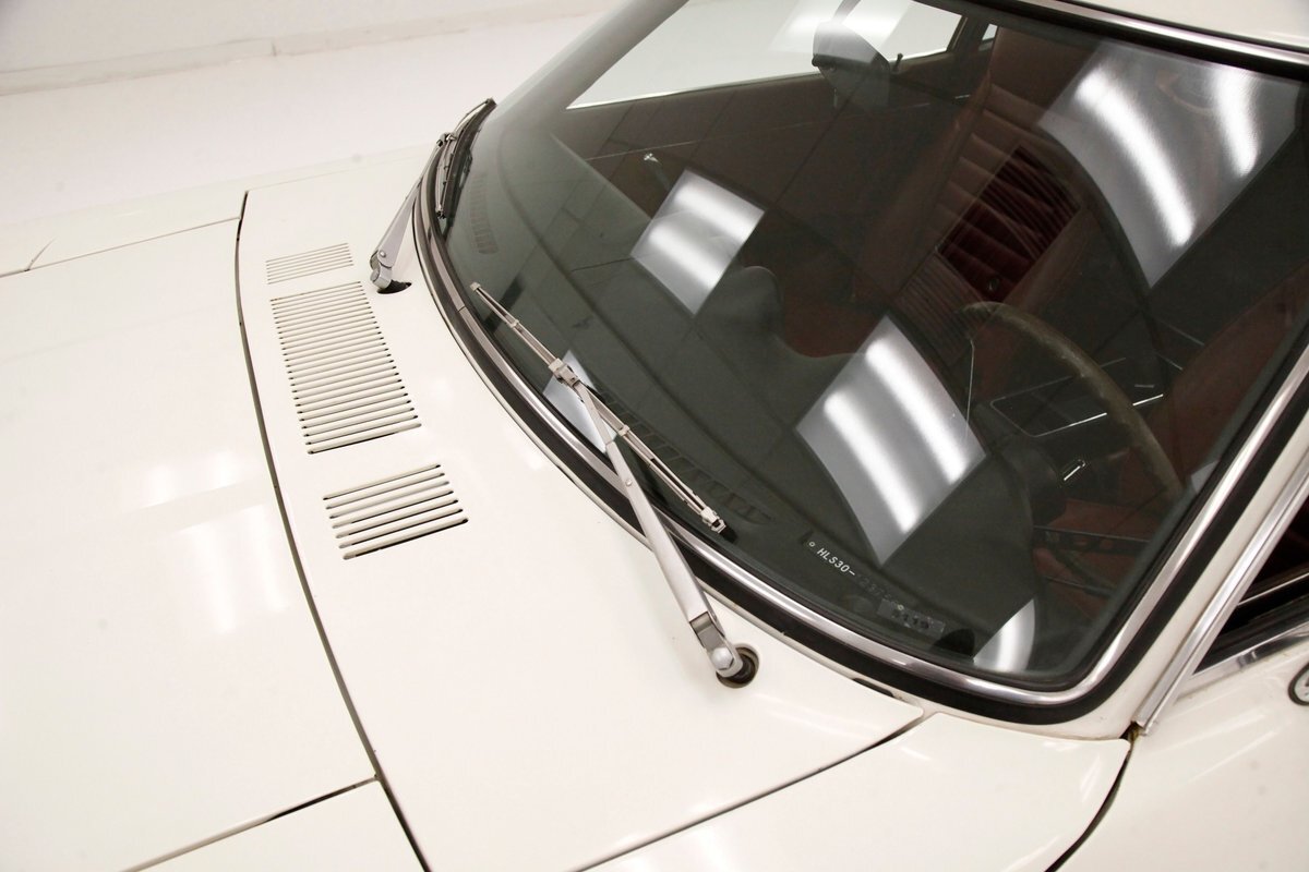 With gaps that remain consistent, we can see the consignor stated original white as the driven snow paint. It is a fair paint job and shines nicely but does have a few areas of overspray in the door jambs leading us to believe there was at minimum some spot in work performed in the past. The quintessential pony car with Japanese influence, its long hood, inset head lighting, black contrasting egg crate grille and long sloping hatchback the side view sells this car. I can see why it was so wildly popular in its heyday. Take this design, throw in plenty of reliability and some sporty performance and we have a winner winner chicken dinner! Black accenting, chrome bumpers with non stock California bumper bars, as well as the aforementioned black grille and the black rear roll pan give it a sporty yet sophisticated look. Some surface and beginnings of invasive rust on nearly all of the lowers on this car, some dents and paint peeling off are pretty typical with a car of this age. Aluminum slotted wheels are wrapped 185/70R14 rubber all around. These tires are older, although look good, and the consignor states that the left front has a slow leak.