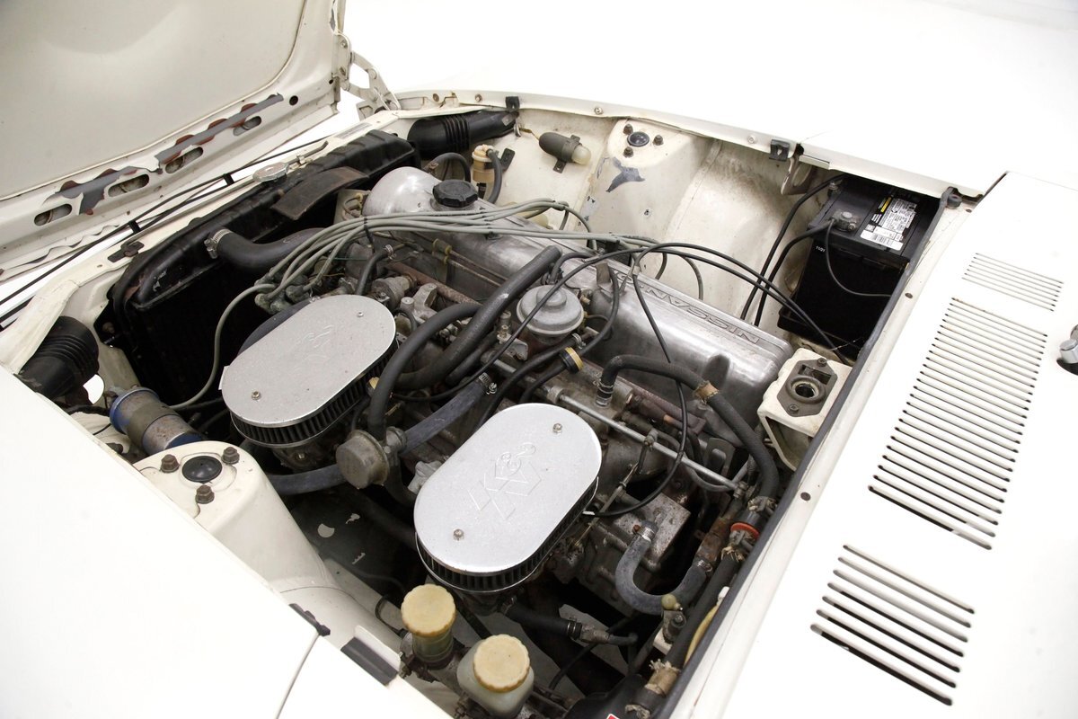 An original unrestored 2.4 Liter Inline 6-cylinder graces the engine bay. On the side are dual 2-barrel Weber carburetors. Bolted to the back is a 4-speed manual transmission attached. A 3.70 rear sums up the drivetrain.