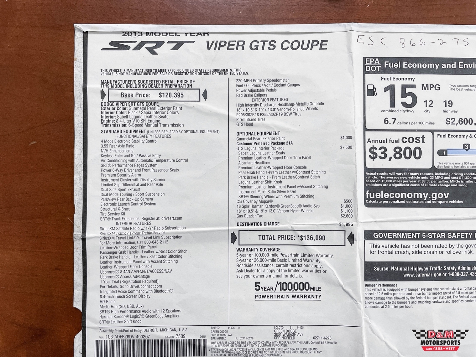 Currently working and living in Singapore with intentions to move back to Florida in SEP15. I desired a daily driver Corvette so I ended up buying a 96 Polo Green Vette with 20K miles on it from D&M Motorsports. I was a little hesitant to buy this car unseen and through email, but the reviews on D&M gave me solace to go ahead. I purchased the car through wire transfer (Professional), asked D&M to hold it for a month so delivery could occur while visiting Florida (Personable), D&M arranged to have the Vette shipped to arrive at my place of stay in Florida the morning after I arrived (Proficient). The Vette showed up at my place of stay at 10AM in absolutely beautiful condition, looked like it came right off the showroom floor. The title and bill of sale showed up via UPS at 1045AM and I had the Vette registered/tagged in the state of Florida by noon. My wife of 39 years was apprehensive with this whole process, but by the time we had 100 miles on the Vette she had already told me at least three times how much she liked my car and how impressed she was how smooth the process went. So much so in fact she has asked me to work with D&M to locate her SUV for when we return for good in a couple of months. Needless to say I was very pleased with this whole transaction.