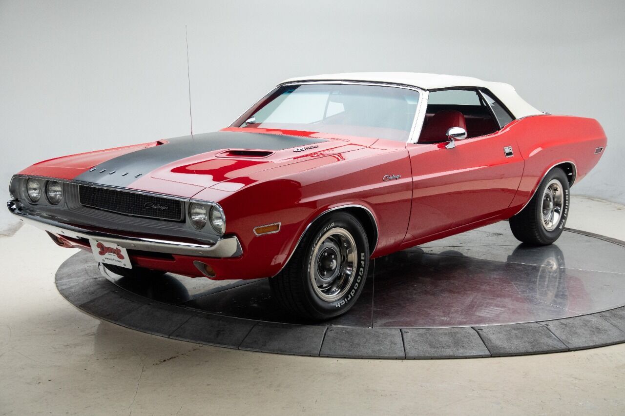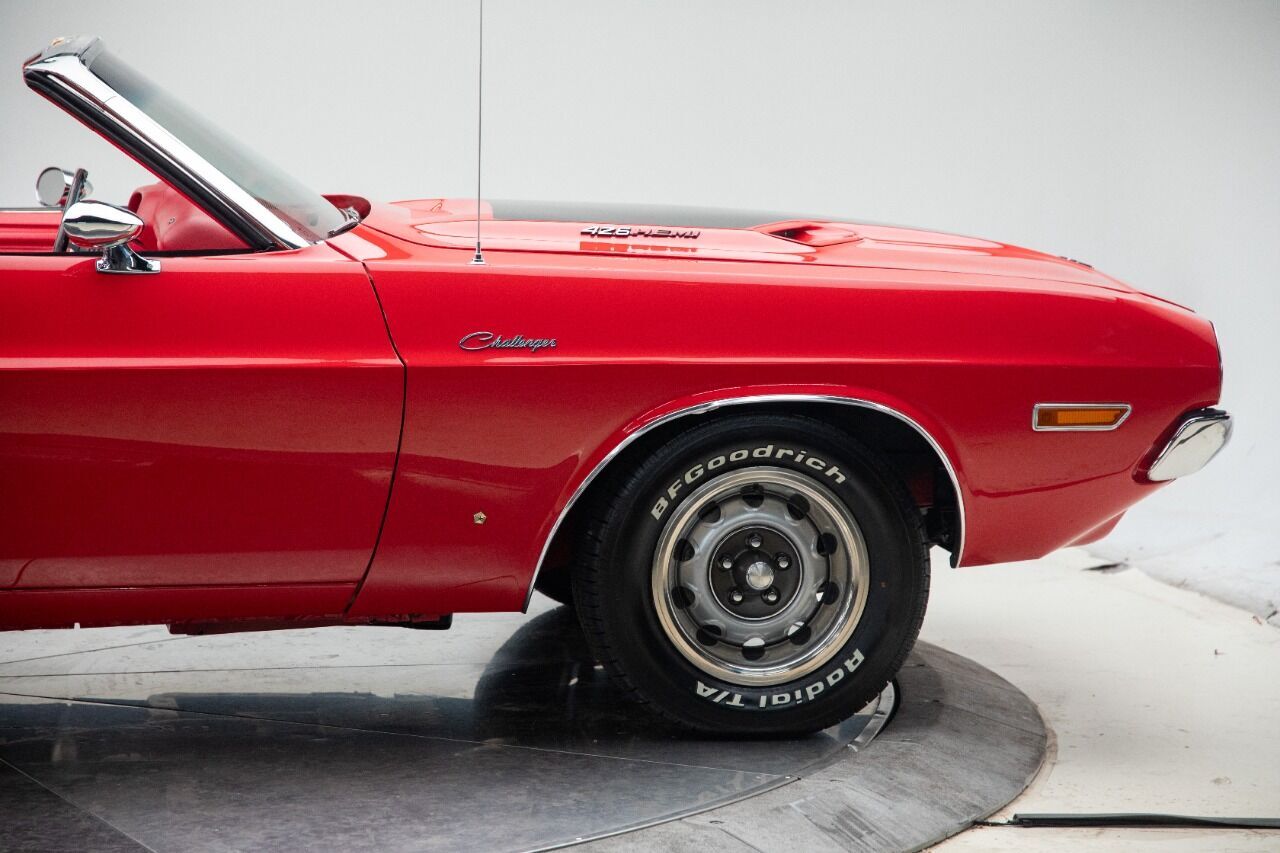 1970 Dodge Challenger Convertible Hemi replica 426 Hemi crate engine 1 of 2,543 Challenger V-8 Convertibles total produced only 9 hemi convertibles Rotisserie restoration. Body chemically stripped Holley 780 cfm carburetor 1967 727 Torque-flite automatic transmission Candy Apple Red exterior Matching Red interior Power steering Factory drum brakes Real Hemi Challengers convertibles from 1970 are tough to come by, only 9 being made and sell for upwards to a million or more. This 1970 Hemi Challenger replica represents the Hemi Challenger tradition at its finest, as its nut-and-bolt rotisserie restoration was completed with attention towards factory details. The underside is as detailed as the top side. Moreover, it features Bright Red exterior and red interior, both excellent striking color choices and the latter of which was found on very few actual 1970 examples. A recent restoration, this is a Challenger worth taking a look at, especially as a car to both be shown and driven. Beneath the well-known dual scoop r/t rallye hood shape is a 426 Hemi V-8 engine, as noted on the sides of the hood. Visible here is chrome valve covers and air cleaner and appearance is to an OEM level . A look underneath reveals painted red undercarriage smooth enough to wax, upgraded mufflers feeding the chrome exhaust tips, with other undercarriage details visible. AM/FM radio, manual convertible top, under dash gauges wrap up the package. Fun fast car! As always, we will consider all types of trades. Transportation is available. Why buy from us? We are one of the oldest and largest Midwest dealers who specializes in collector cars, modern muscle cars and imports. We normally have 40-90 collector cars in stock. All of our cars are handpicked purchases, not consignments, that have been evaluated for quality, value and checked over in our shop to assure drivability. These cars are available to look over, test drive and evaluate at our location, by appointment only, due to the extensive amount of travel it takes to find these vehicles. People frequently buy collector cars at auctions and have no idea what they are getting, often regretting the purchase due to issues of condition, drive-ability, paperwork, etc. We have 40+ year's experience in the automotive industry and can guide our customers through the complete purchase experience.