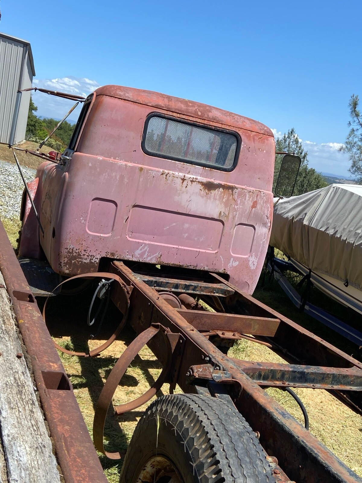 I believe it’s a 1954 Dodge 1.5 ton dual axle flatbed Ca truck very little rust Great resto project