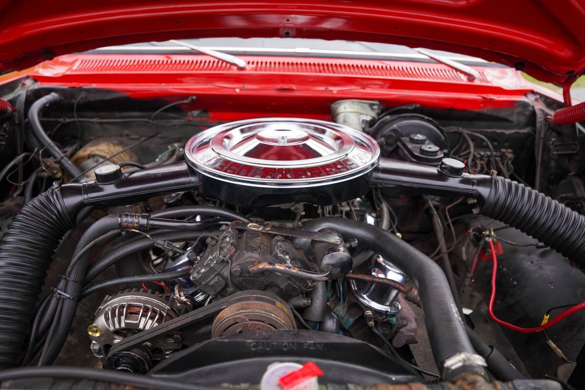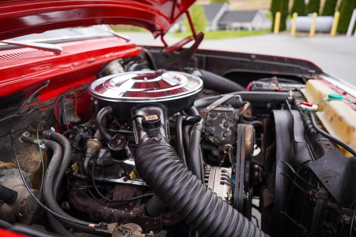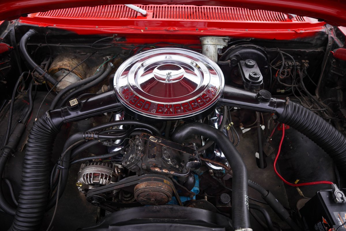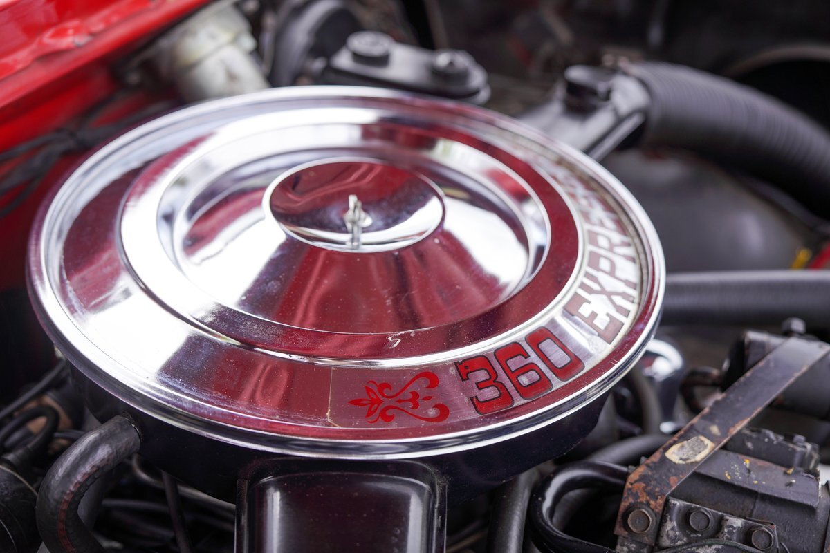 Under the hood, it boasts a potent 360 cubic inch high-performance engine, which is believed to be original, delivering impressive power and torque. Fuel is delivered through a 4-barrel Thermoquad carburetor, ensuring optimal performance.