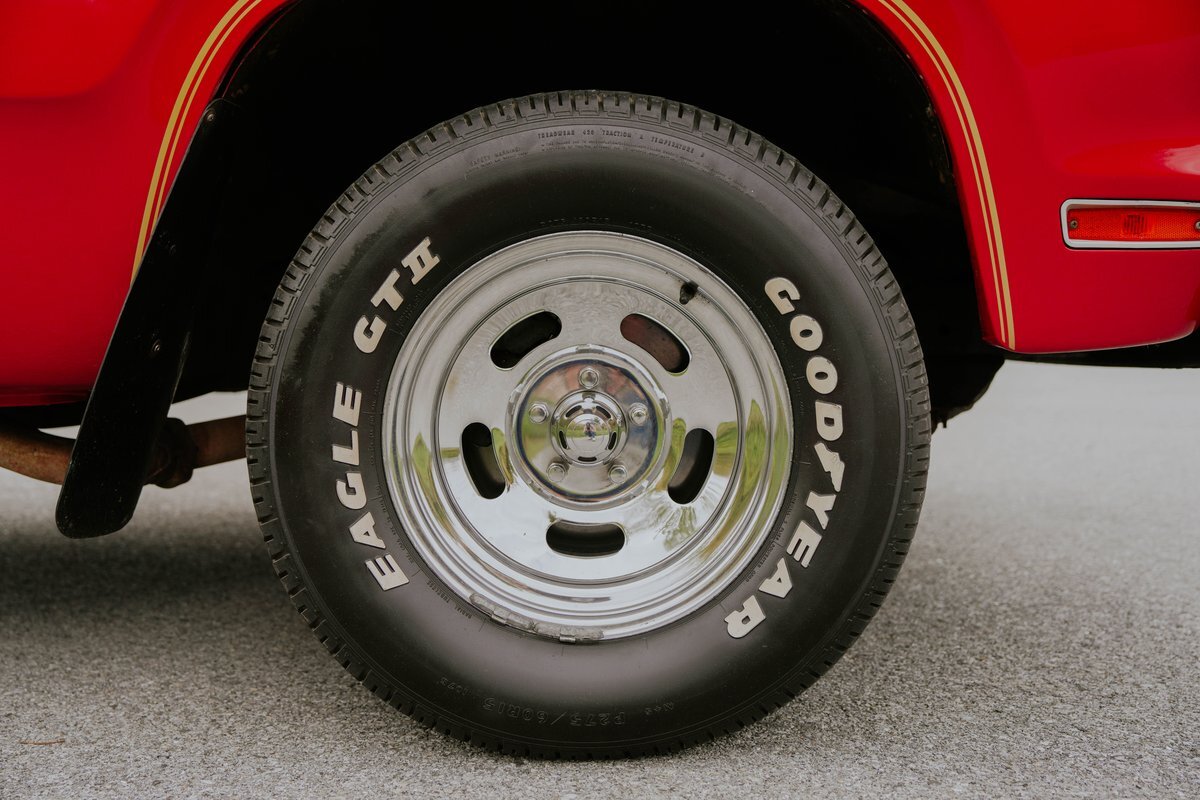 The Lil Red Express rides on 15-inch wheels fitted with Goodyear Eagle GT2 P275/60R15 tires, providing excellent traction and stability on various road surfaces.