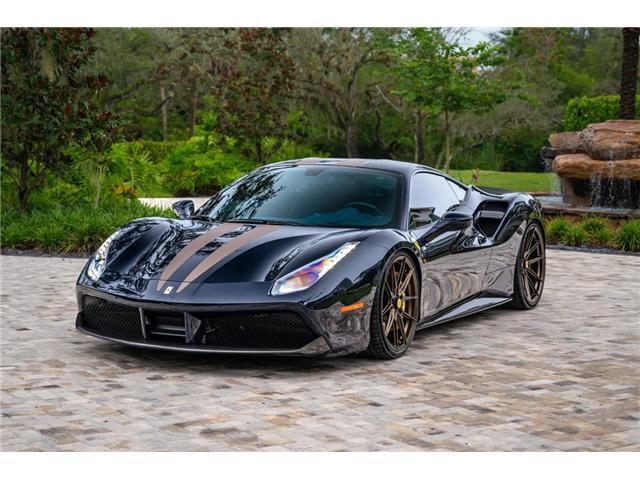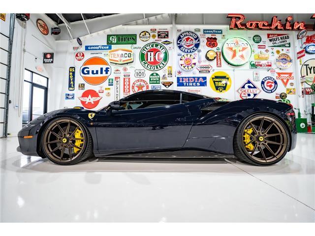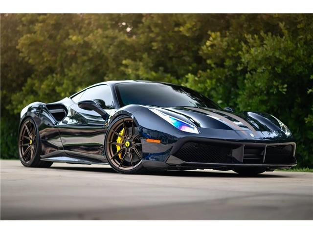 Listing Details Chassis: ZFF79ALA9J0229682 7k Miles Twin-Turbocharged 3.9-Liter V8 Hydra Motorsports Stage 3 Tune Pure Turbos Pure900 Turbo Upgrade Ryft Titanium Exhaust System 7-Speed F1 Dual-Clutch Automatic Transaxle Nuovo Blu Pozzi Paint Bronze Stripes Blu Sterling Leather w/Giallo Stitching 21" & 22" Novitec Wheels Novitec Lowering Springs Ceramic-Composite Brakes Suspension Lift System Adaptive Front Lighting Scuderia Ferrari Fender Shields Front & Rear Parking Sensors Front & Rear Cameras Exterior & Interior Carbon-Fiber Accents Power-Adjustable Seats Navigation JBL Audio System K40 Radar Detector & Laser Jammer Car Cover & Manufacturer's Literature Removed Wheels & Parts Service Records Clean Carfax Report This 2018 Ferrari 488 GTB is finished in Nuovo Blu Pozzi with bronze stripes over Blu Sterling leather interior, and it is powered by a twin-turbocharged 3.9-liter V8 paired with a seven-speed F1 dual-clutch automatic transaxle. The car was sold new in California. Subsequent modifications of nearly $100,000 included installing staggered-diameter Novitec wheels, Novitec lowering springs, a Ryft titanium exhaust system, a Hydra Motorworks Stage 3 tune, a Pure Turbos turbo upgrade, carbon-fiber accents, and a K40 radar detector and laser jammer. Additional equipment includes ceramic-composite brakes, a suspension lift system, an SCM-E magnetorheological damping system. This 488 GTB has 7k miles and is offered with a car cover, manufacturer's literature, removed parts, service records and a clean Carfax report. Scuderia Ferrari fender shields, xenon headlights with AFS adaptive front lighting, front and rear parking sensors, dual exhaust outlets, and a vented deck lid. A carbon-fiber front lip, rear diffuser, rear spoiler lip, side skirts, side air intake flaps, rear light satellites, and fog light covers. The paint protection film has been applied to the entire body. Satin bronze-finished Novitec x Vossen 21" and 22" wheels are mounted with 255/30 front and 335/25 rear Michelin Pilot Sport 4S tires. The car is equipped with an SCM-E magnetorheological suspension control system and has been modified with Novitec lowering springs. Braking is provided by yellow-finished multi-piston calipers over ceramic-composite discs at each corner, and the car is equipped with a suspension lift system. The interior features power-adjustable seats upholstered in Blu Sterling leather with Giallo stitching as well as a color-coordinated dashboard, center console, and doors. Carpeted floor mats line the footwells, and additional appointments include carbon-fiber trim, drilled aluminum pedals, dual-zone automatic climate control, navigation, front and rear cameras, a K40 radar detector and laser jammer, and a JBL audio system. The Blu Sterling leather-trimmed steering wheel sits ahead of column-mounted carbon-fiber paddle shifters and features an engine-start button, a Manettino driving-mode selector, and shift lights. Instrumentation consists of a central 10k-rpm tachometer flanked by multifunction displays. The digital odometer indicates 7k miles. The twin-turbocharged 3.9-liter V8 was modified in May 2022 by Gulf Coast Motorworks of Bonita Springs, Florida, with a Hydra Motorsports Stage 3 tune, a Pure Turbos Pure900 turbo upgrade, a high-flow air filter, and a Ryft titanium exhaust system with stainless race pipes. Dyno test results can be viewed in the gallery below. The oil was changed in January 2023. Power is sent to the rear wheels through a seven-speed F1 dual-clutch automatic transaxle.. We welcome all Trade-ins