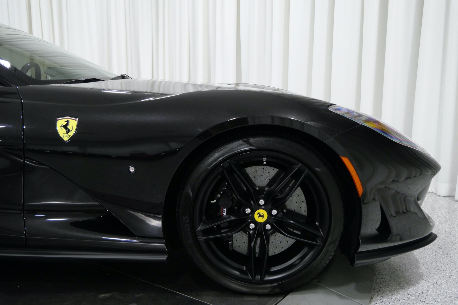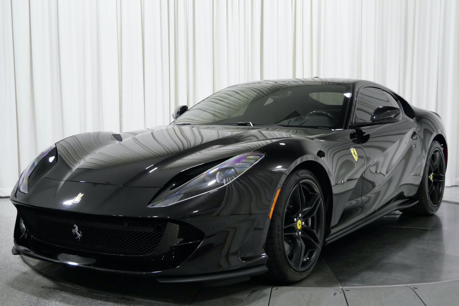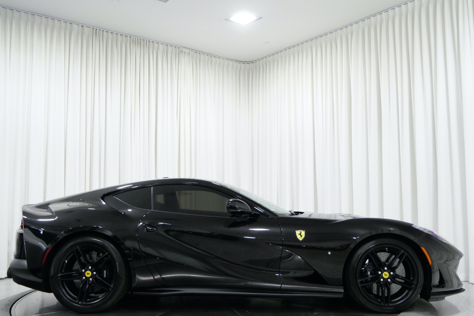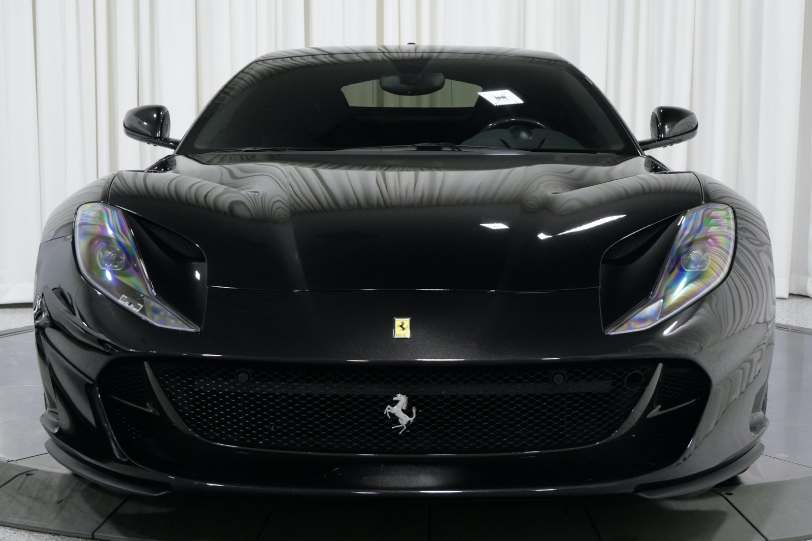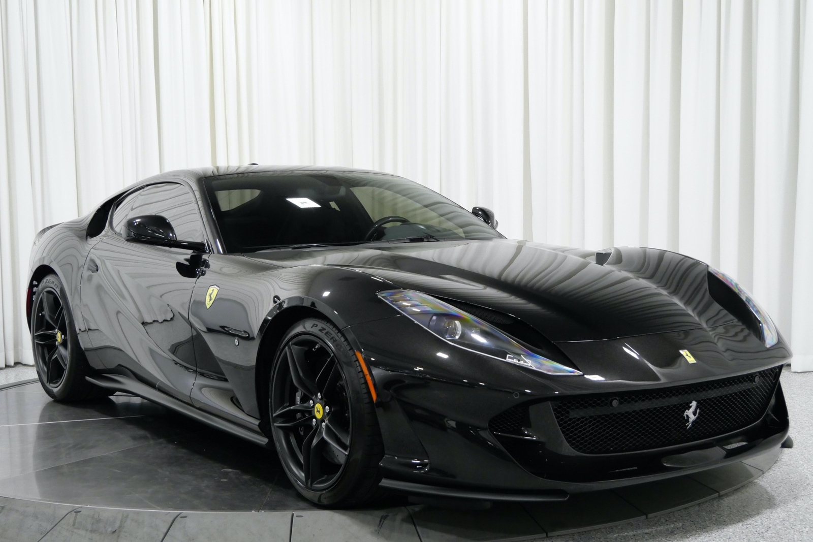 We have just added to our extensive exotic car inventory a beautiful 2019 Ferrari 812 Superfast in Nero Daytona over Nero leather interior and only 9,607 miles. This 812 is loaded with: 6.5 liter V12 with 789 horsepower, 7 speed automatic transmission, 20 inch forged matte black painted wheels, gloss black brake calipers, Scuderia fender shields, black exhaust pipes, carbon fiber front bumper mouth, size large carbon fiber racing seats, racing seat lifter, Cavallino stitched in headrests, carbon fiber and leather steering wheel with LED's, carbon fiber dash inserts, passenger side display, black air vent rings, high power HiFi, Apple CarPlay, adaptive headlights, dedication plate in silver, front and rear parking sensors with rear camera, white rev counter, satellite radio, floor mats, car cover and much more.