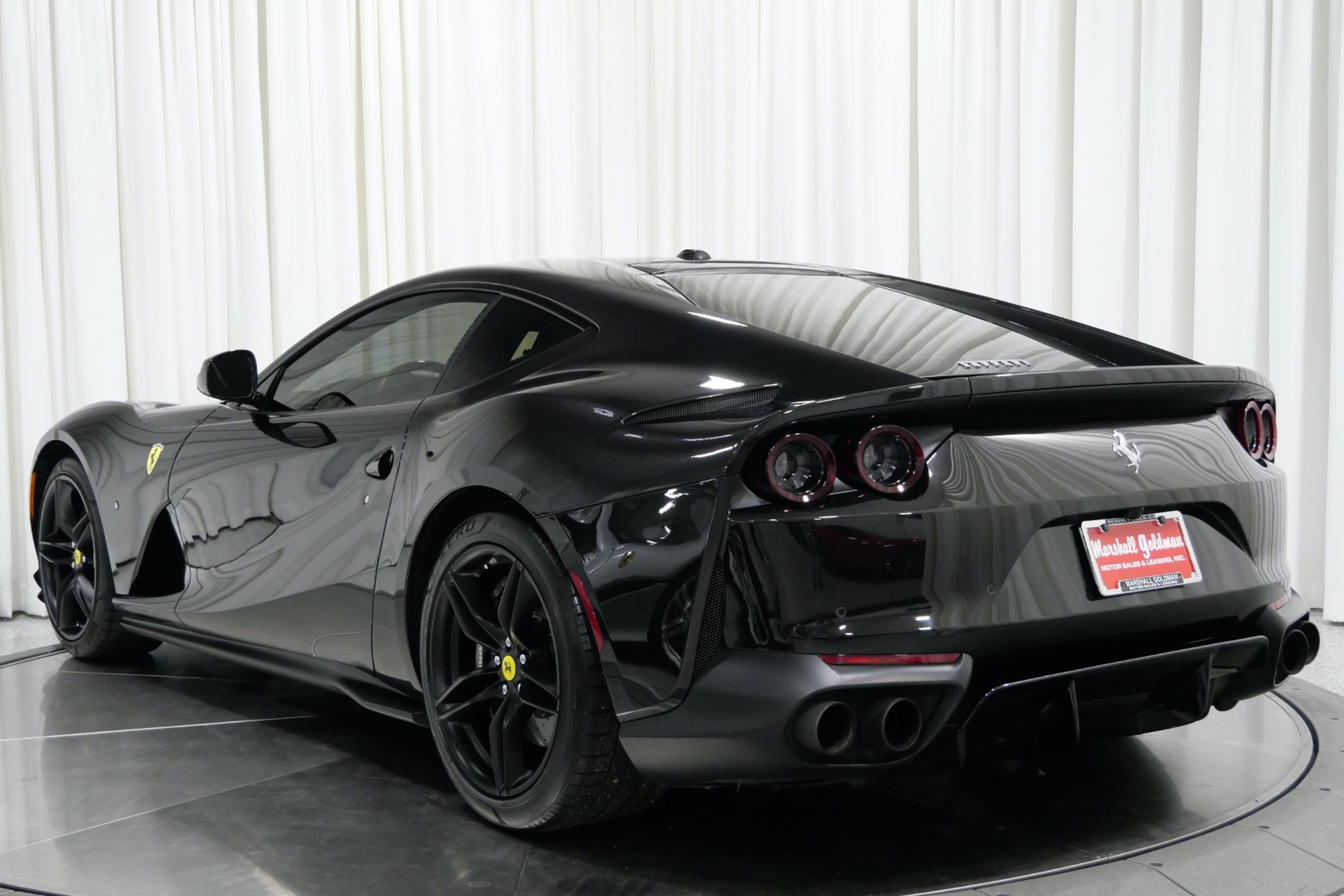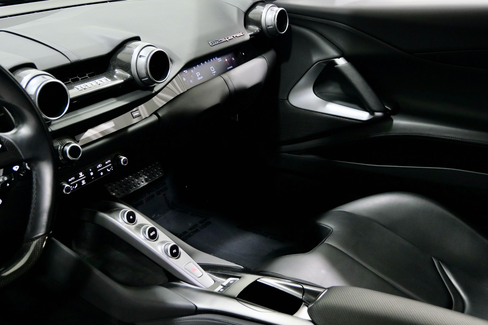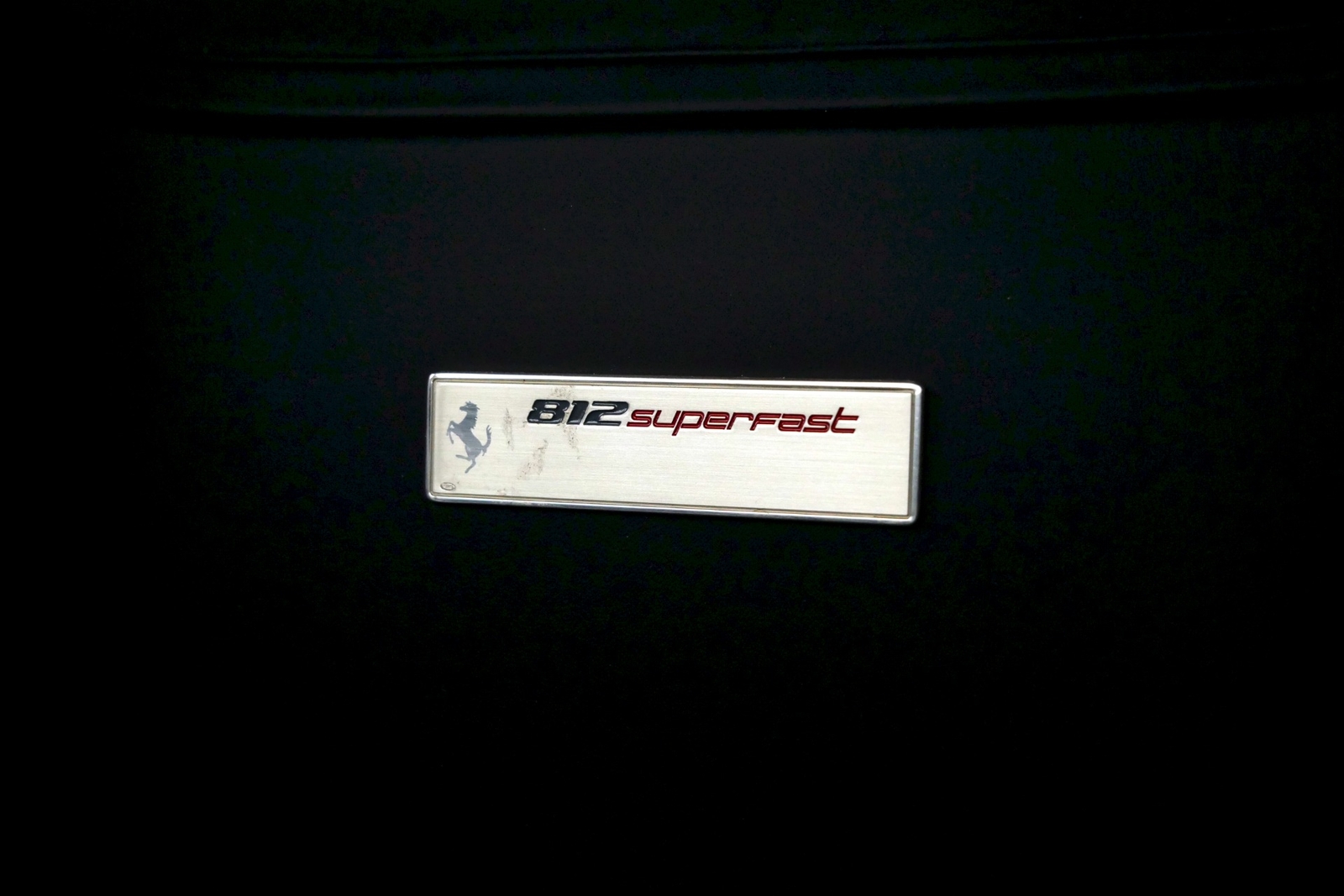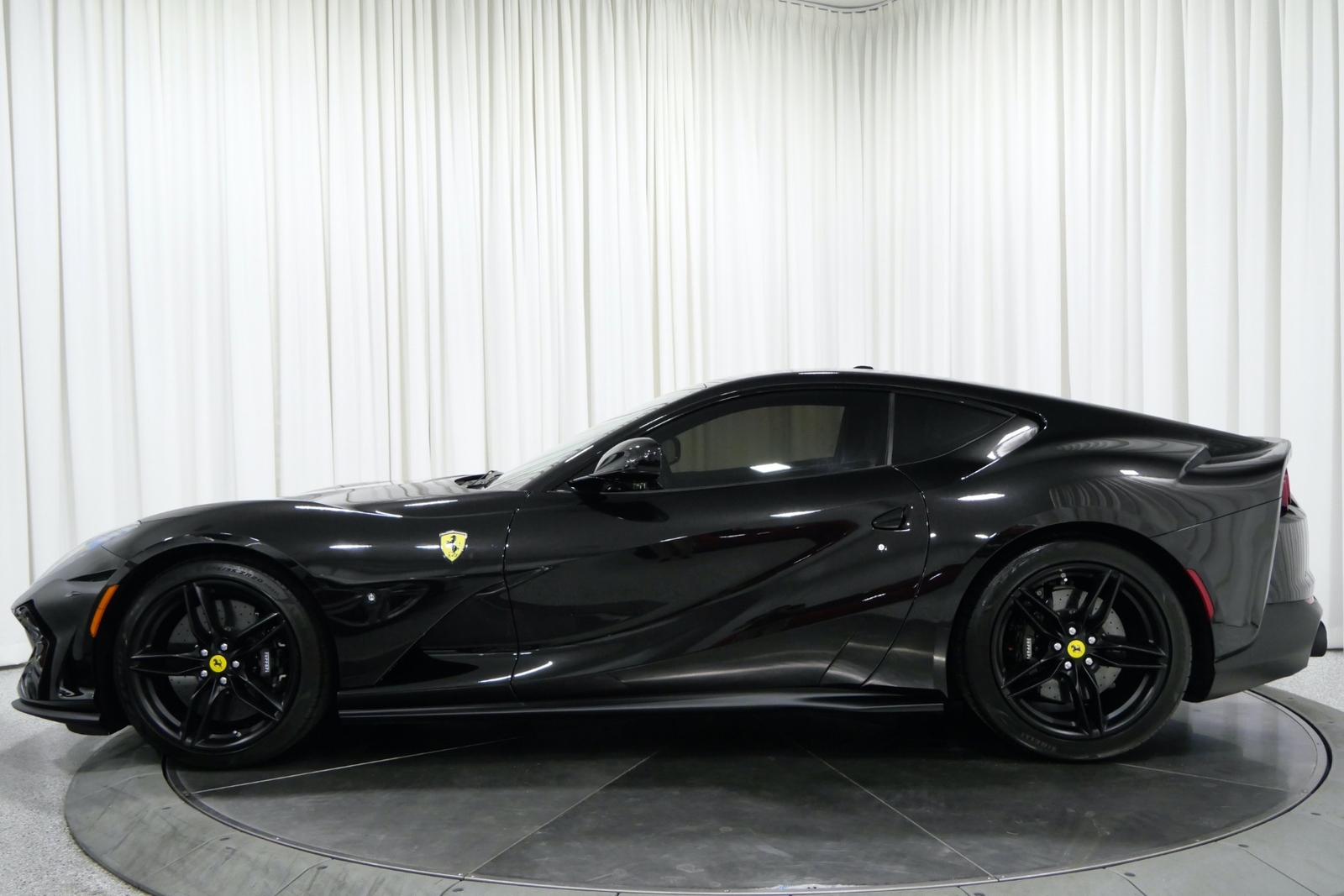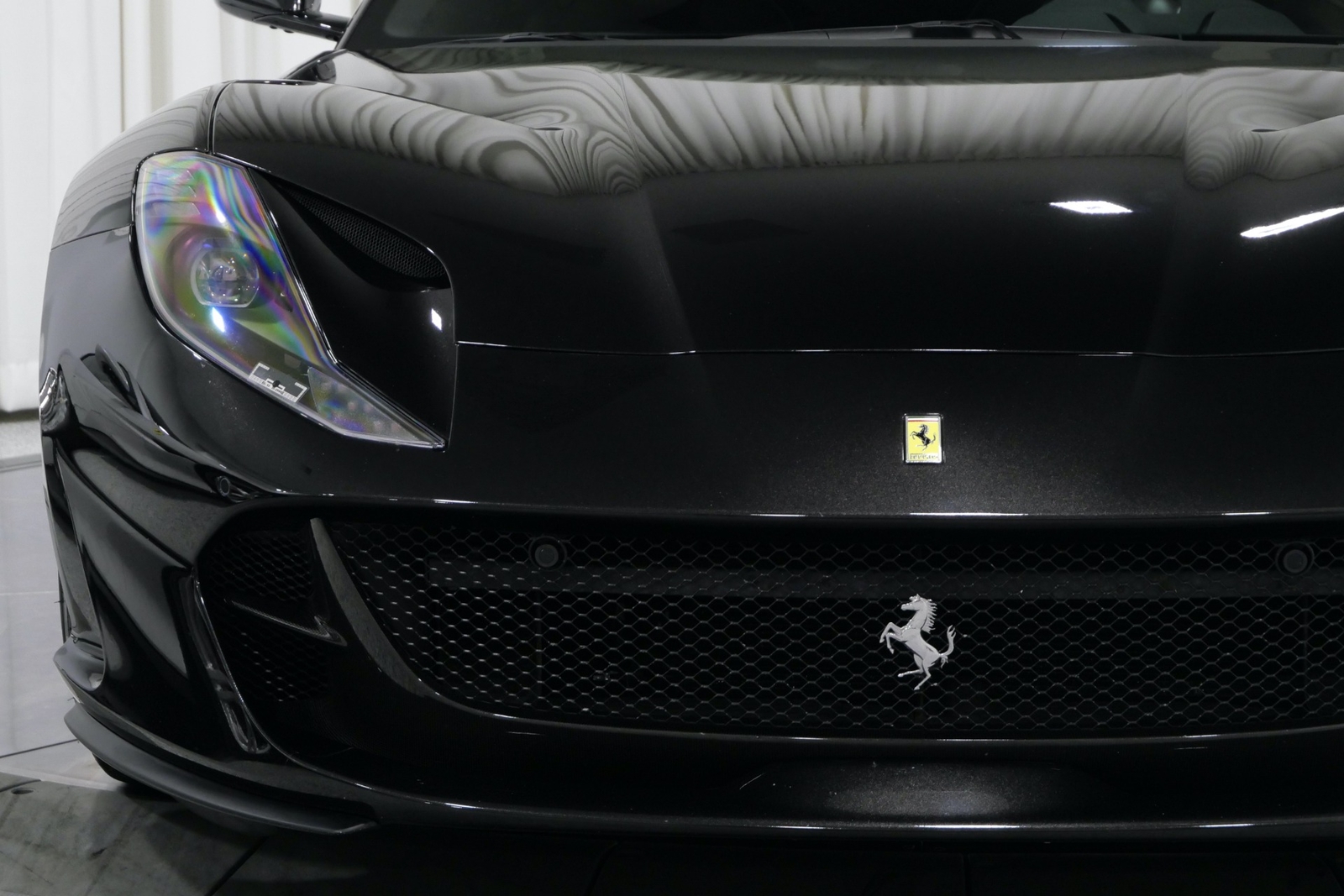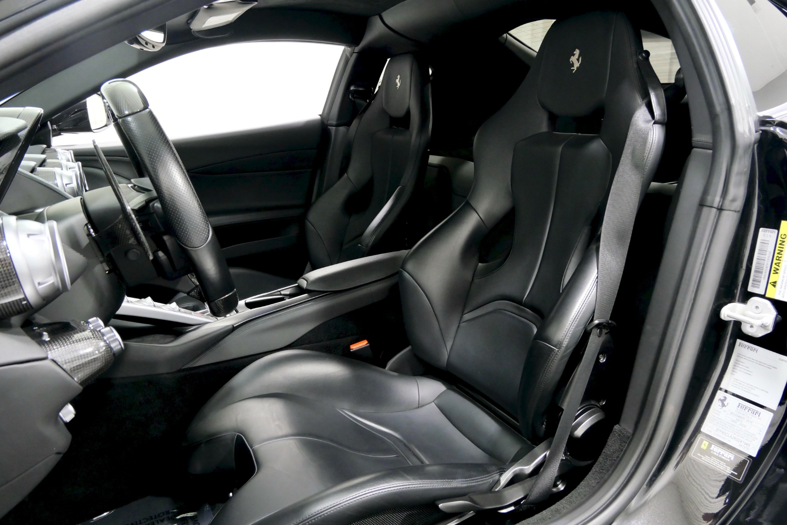 We have just added to our extensive exotic car inventory a beautiful 2019 Ferrari 812 Superfast in Nero Daytona over Nero leather interior and only 9,607 miles. This 812 is loaded with: 6.5 liter V12 with 789 horsepower, 7 speed automatic transmission, 20 inch forged matte black painted wheels, gloss black brake calipers, Scuderia fender shields, black exhaust pipes, carbon fiber front bumper mouth, size large carbon fiber racing seats, racing seat lifter, Cavallino stitched in headrests, carbon fiber and leather steering wheel with LED's, carbon fiber dash inserts, passenger side display, black air vent rings, high power HiFi, Apple CarPlay, adaptive headlights, dedication plate in silver, front and rear parking sensors with rear camera, white rev counter, satellite radio, floor mats, car cover and much more.
