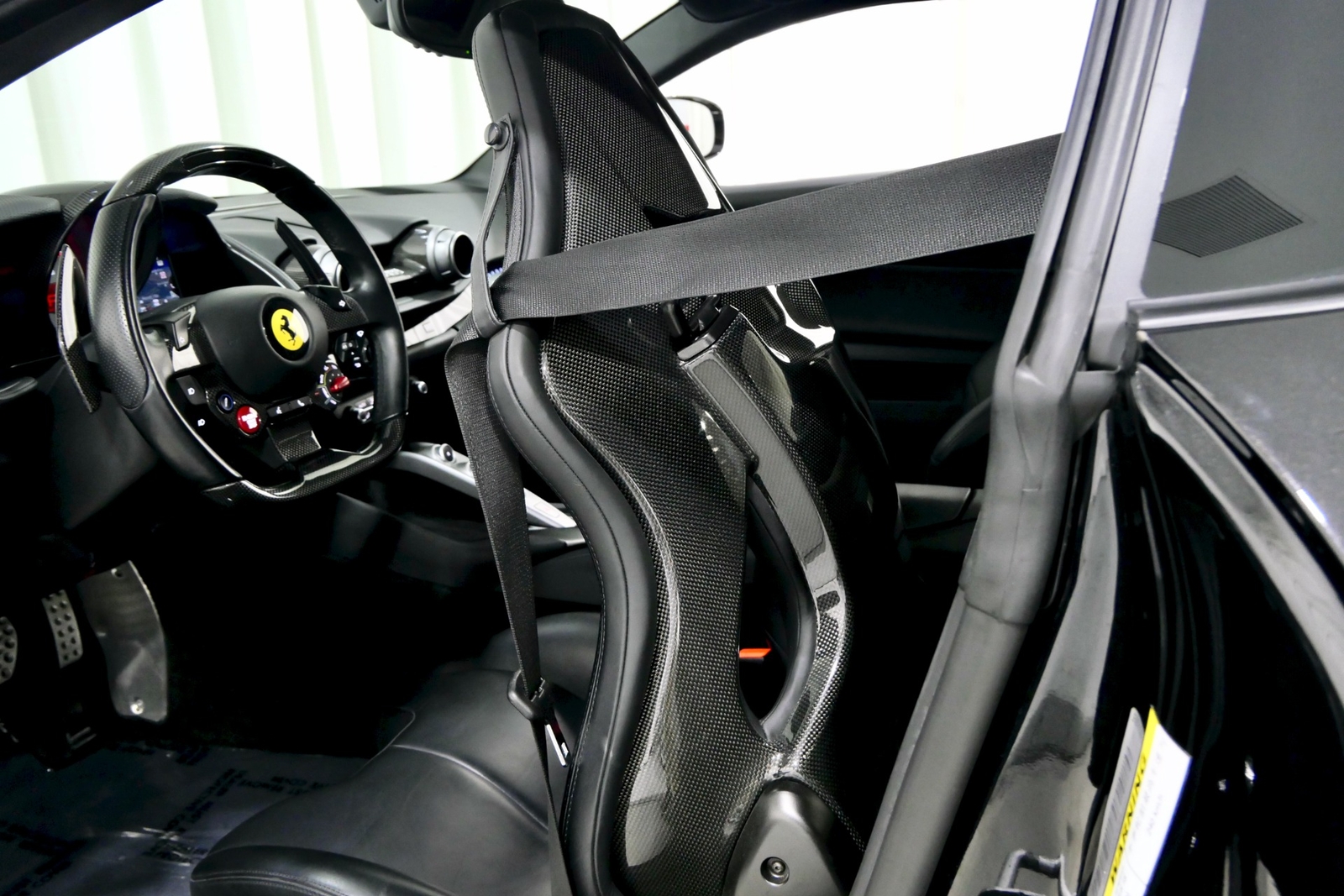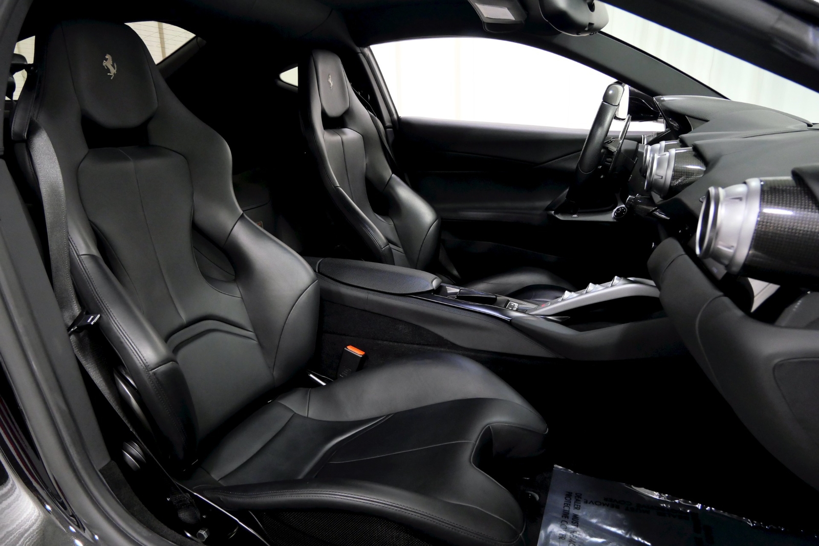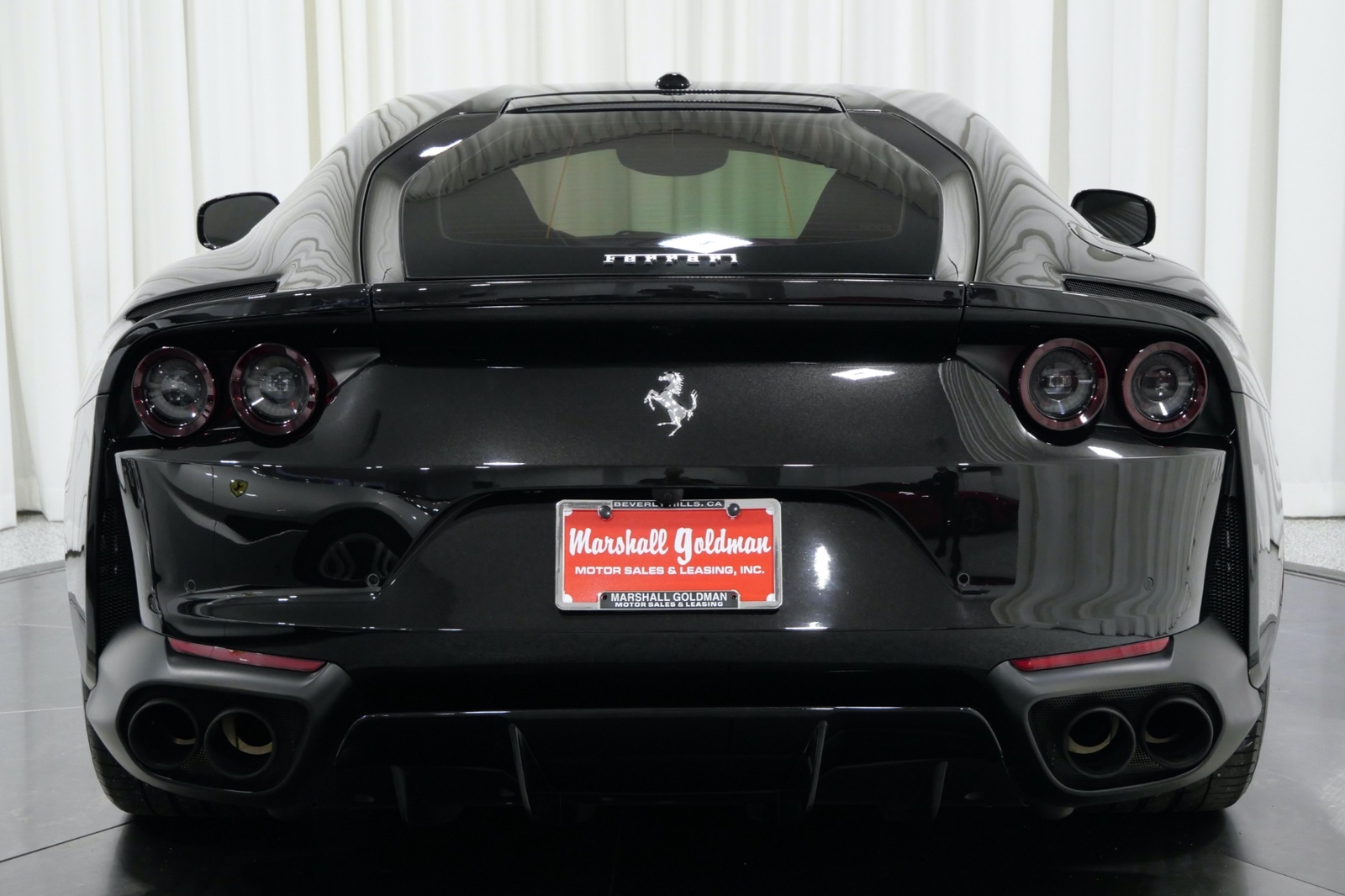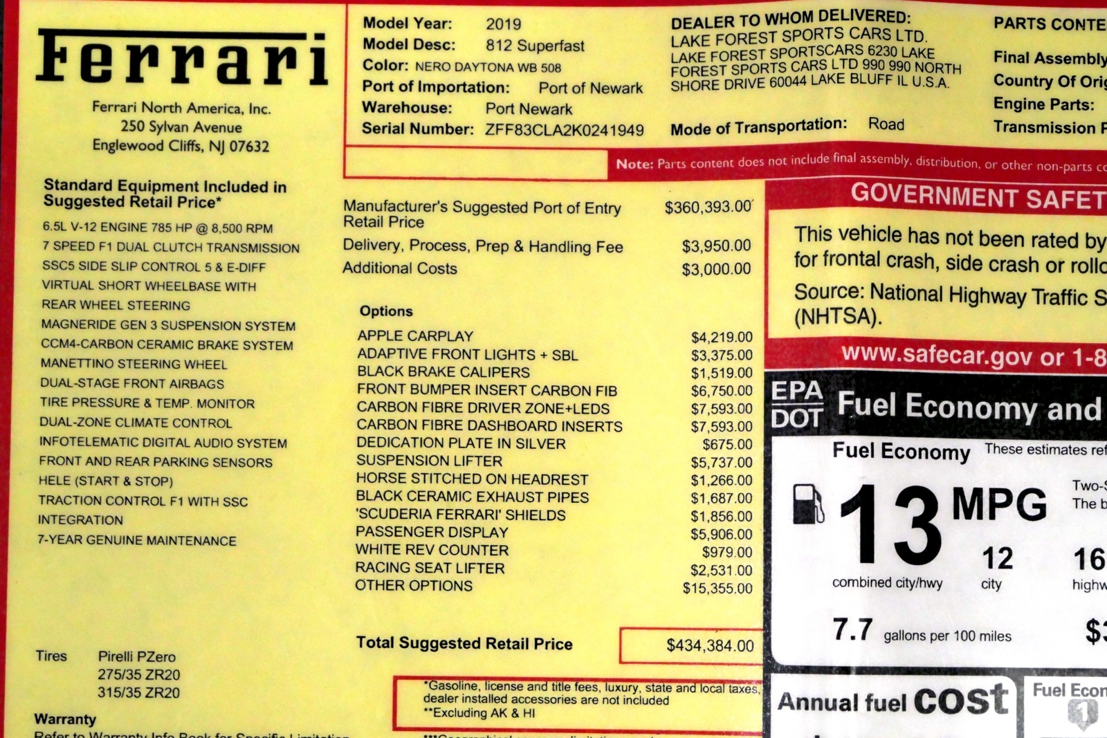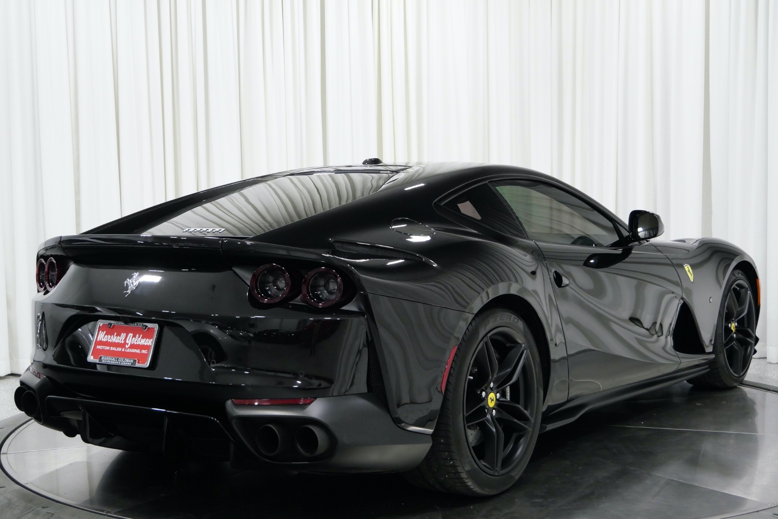 We have just added to our extensive exotic car inventory a beautiful 2019 Ferrari 812 Superfast in Nero Daytona over Nero leather interior and only 9,607 miles. This 812 is loaded with: 6.5 liter V12 with 789 horsepower, 7 speed automatic transmission, 20 inch forged matte black painted wheels, gloss black brake calipers, Scuderia fender shields, black exhaust pipes, carbon fiber front bumper mouth, size large carbon fiber racing seats, racing seat lifter, Cavallino stitched in headrests, carbon fiber and leather steering wheel with LED's, carbon fiber dash inserts, passenger side display, black air vent rings, high power HiFi, Apple CarPlay, adaptive headlights, dedication plate in silver, front and rear parking sensors with rear camera, white rev counter, satellite radio, floor mats, car cover and much more.
