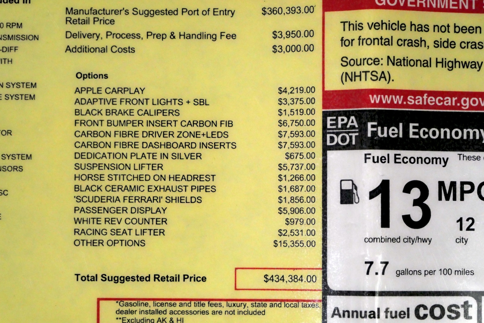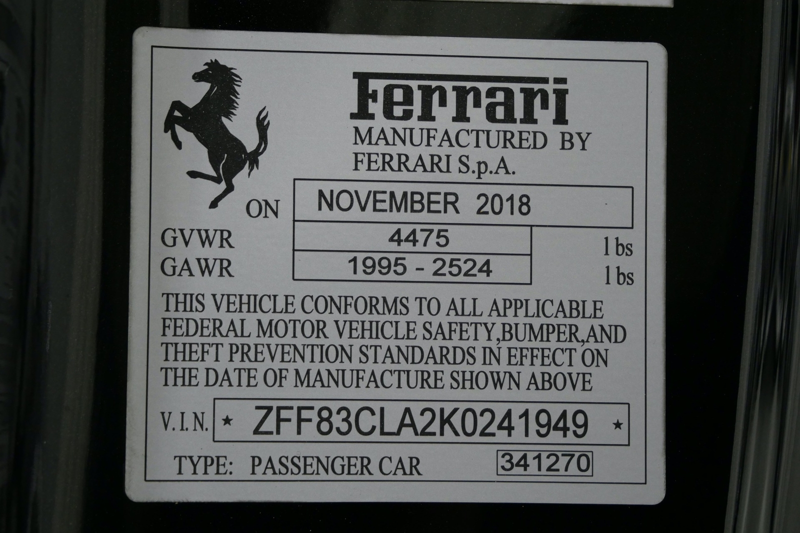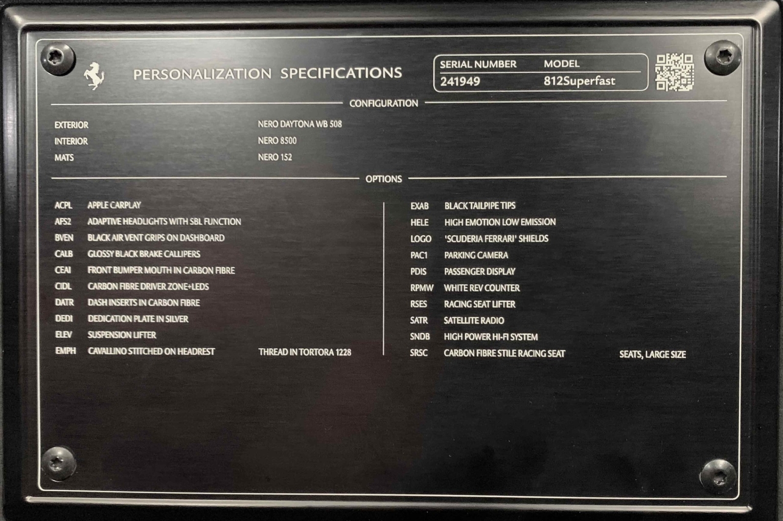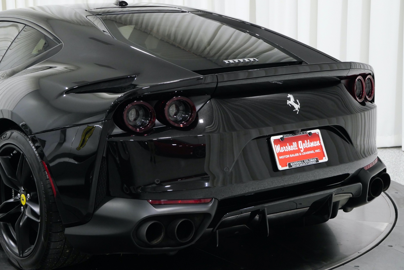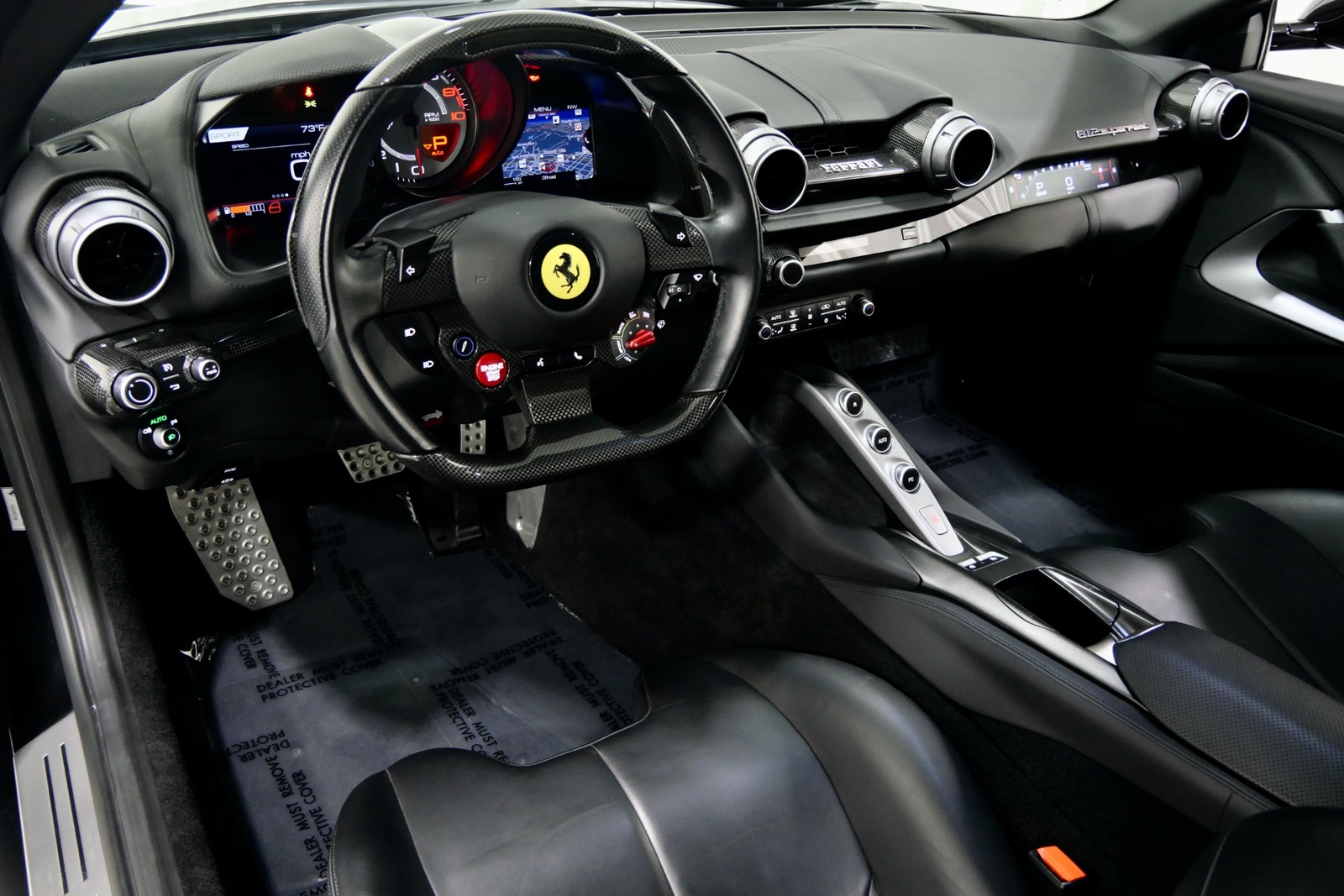 We have just added to our extensive exotic car inventory a beautiful 2019 Ferrari 812 Superfast in Nero Daytona over Nero leather interior and only 9,607 miles. This 812 is loaded with: 6.5 liter V12 with 789 horsepower, 7 speed automatic transmission, 20 inch forged matte black painted wheels, gloss black brake calipers, Scuderia fender shields, black exhaust pipes, carbon fiber front bumper mouth, size large carbon fiber racing seats, racing seat lifter, Cavallino stitched in headrests, carbon fiber and leather steering wheel with LED's, carbon fiber dash inserts, passenger side display, black air vent rings, high power HiFi, Apple CarPlay, adaptive headlights, dedication plate in silver, front and rear parking sensors with rear camera, white rev counter, satellite radio, floor mats, car cover and much more.