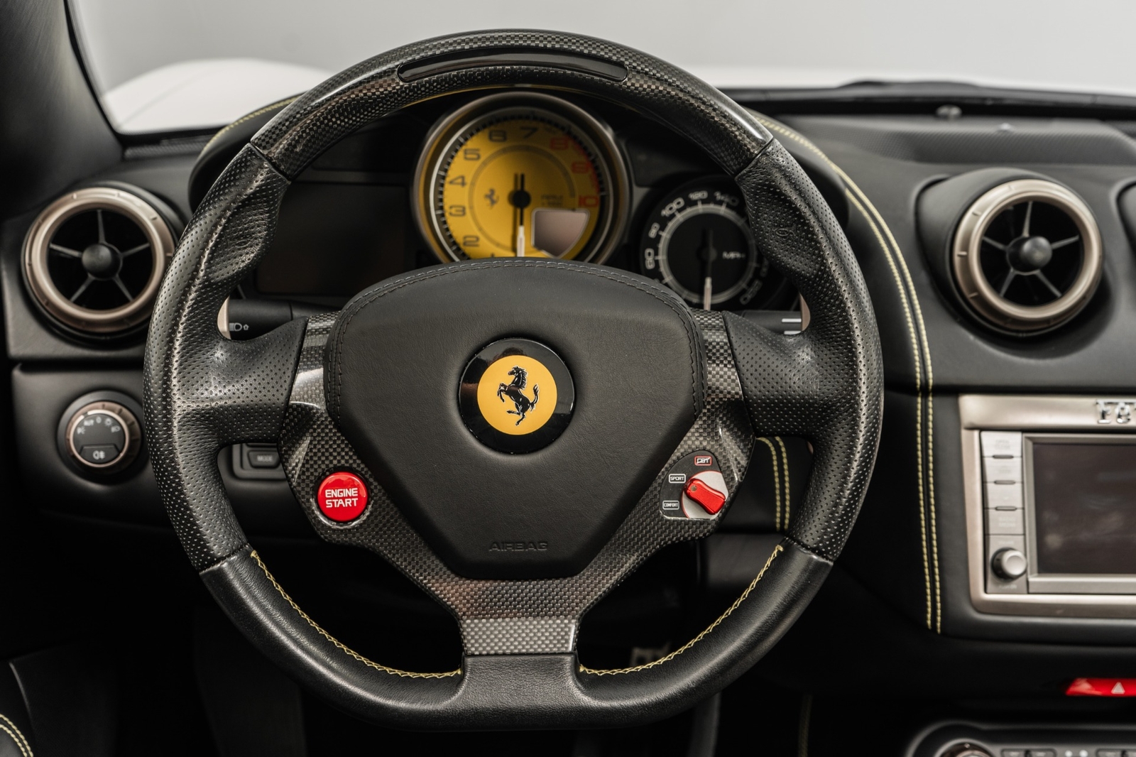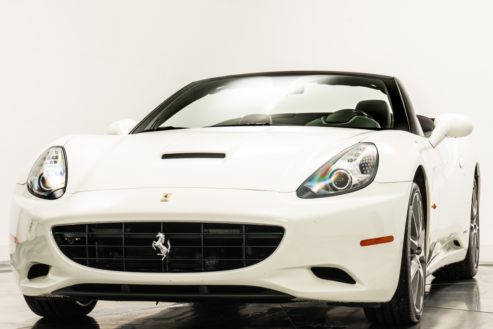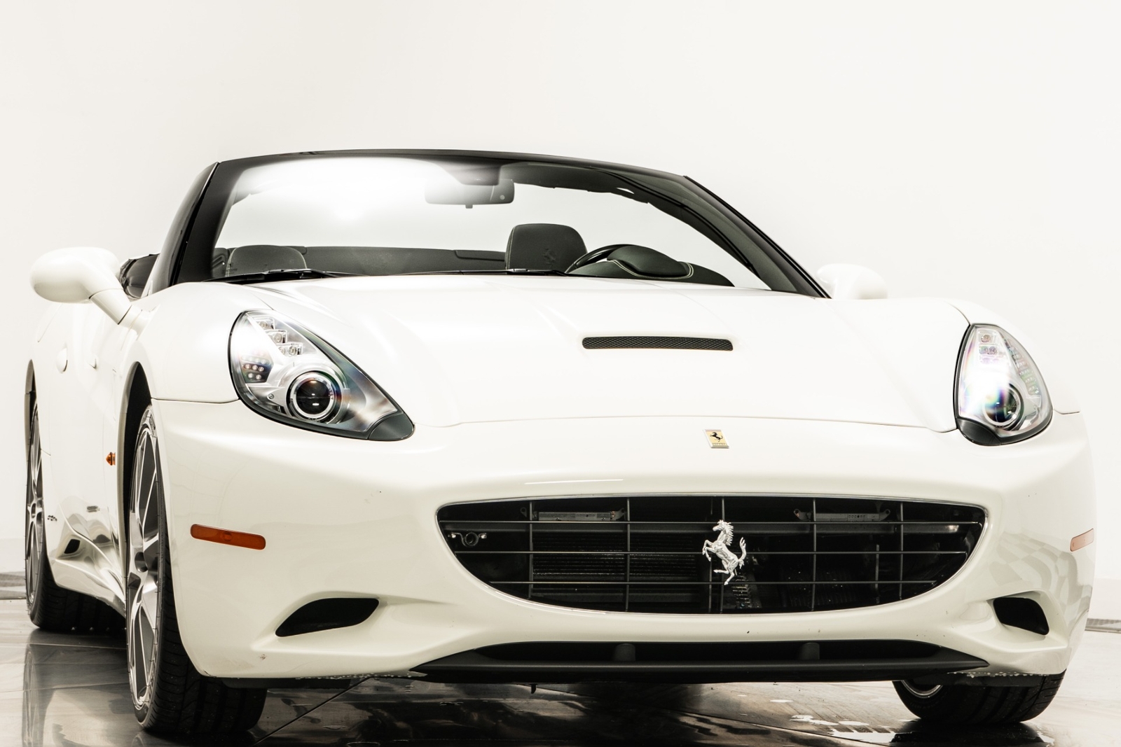We have just added to our extensive exotic car inventory a beautiful 2010 Ferrari California in Bianco Avus over Nero leather interior and only 11,377 miles. This California is loaded with: 4.3 liter V8 with 490 horsepower, 7 speed F1 dual clutch transmission, machine finish 10 spoke wheels, yellow brake calipers, carbon fiber rear panel, Scuderia fender shields, steering wheel in leather and carbon fiber with LED's, 2+2 seating configuration, Daytona style seat upholstery, Daytona bars in Alcantara, power seats, contrast stitching, yellow rev counter, navigation, rear parking sensors, floor mats and much more.
