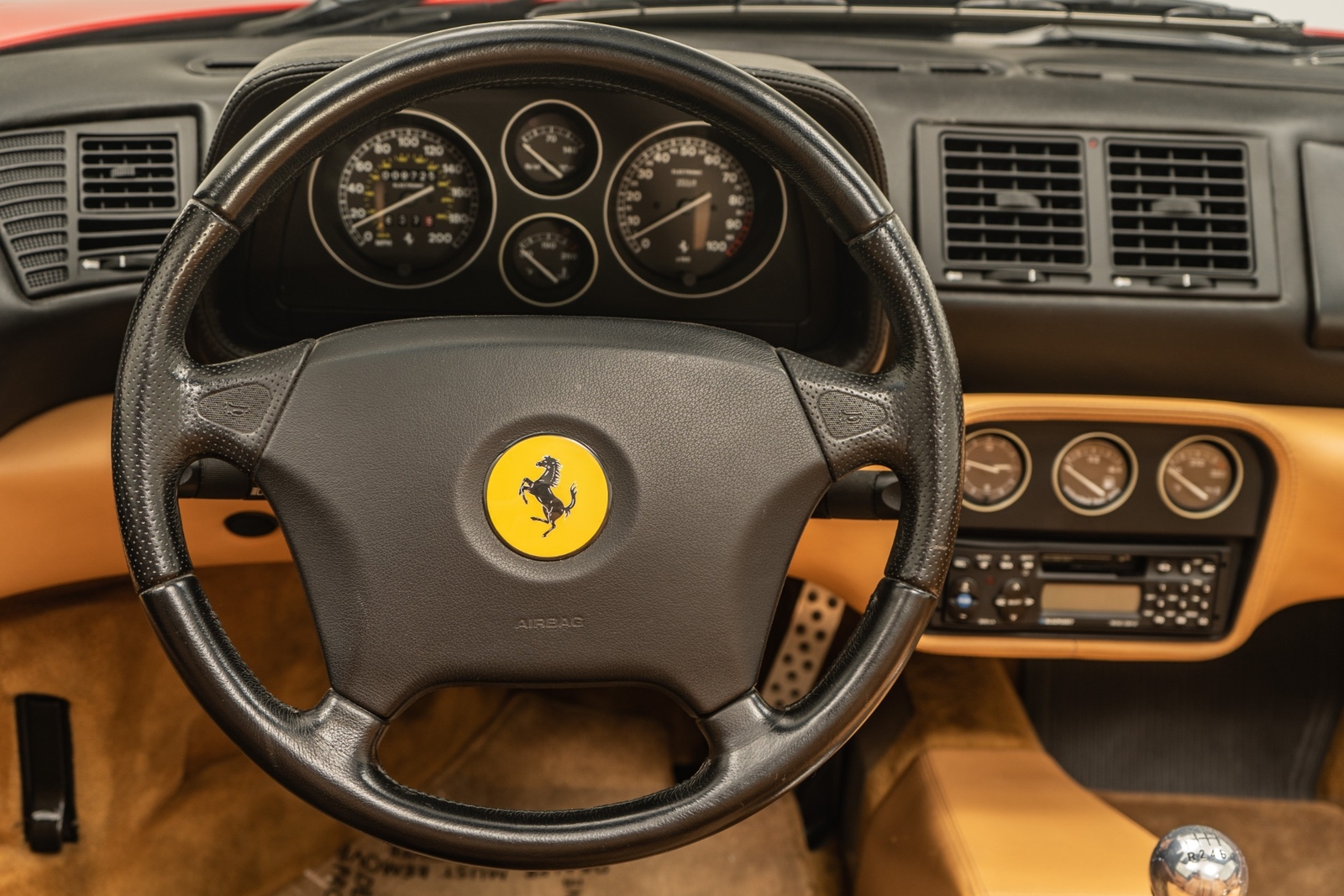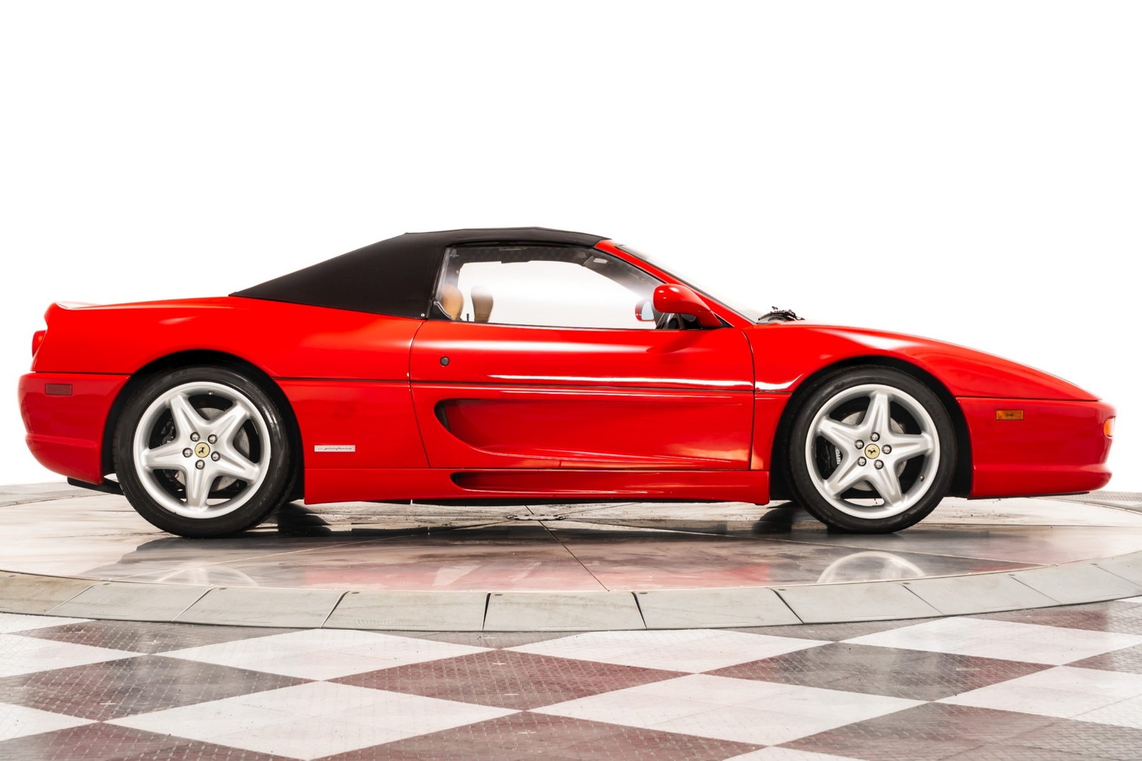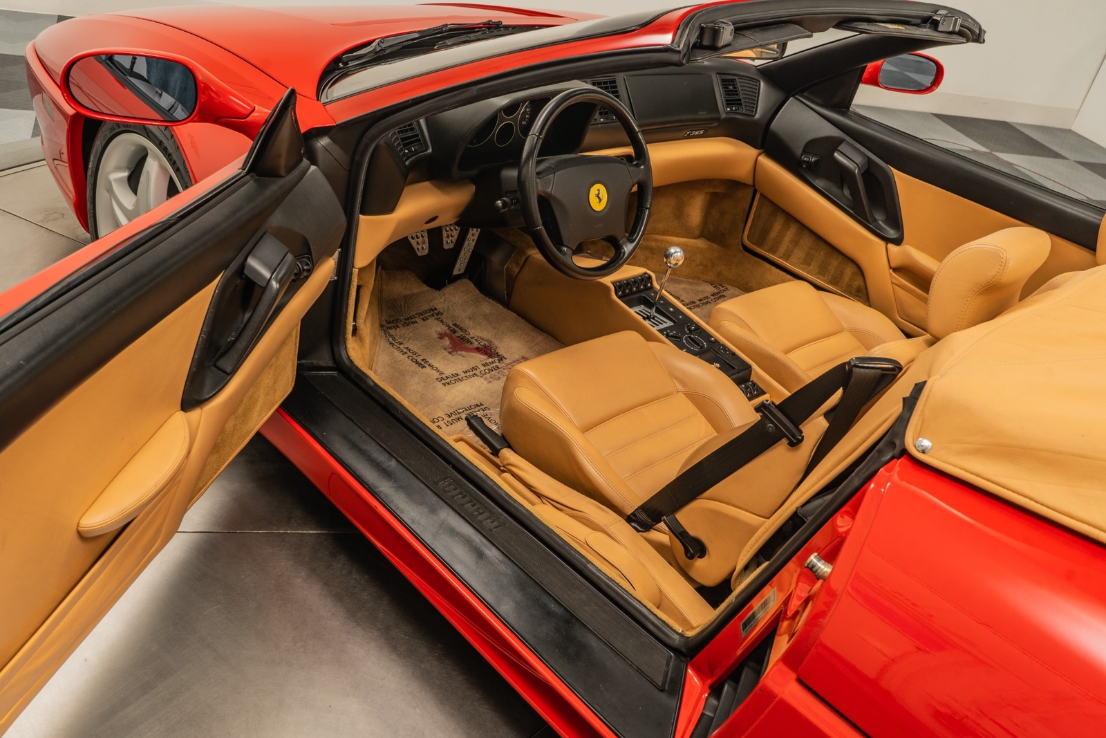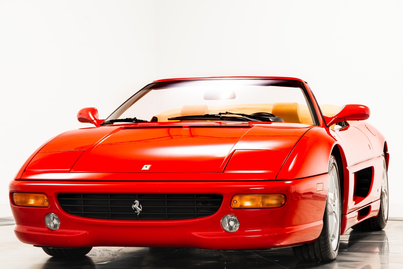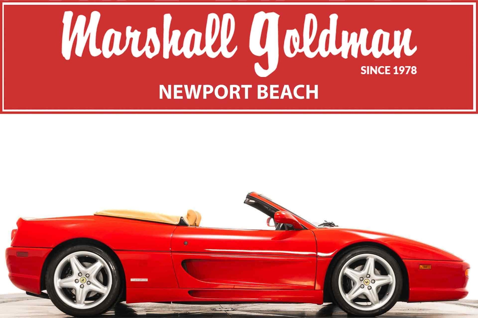 We have just added to our extensive exotic car inventory a beautiful 1997 Ferrari F355 Spider in Rosso Corsa over Beige leather interior and only 9,021 miles. The condition of this F355 is absolutely spectacular! The original owner of this Ferrari took remarkable care of the car from 1997 all the way until 2023. And it really shows! This F355 is loaded with: 3.5 liter V8, 6 speed manual transmission, silver 5 spoke alloy wheels, black brake calipers, power seats, Blaupunkt audio with CD changer, tools, floor mats, black convertible top and much more. An engine-out belt service was performed in April of 2022, or only 396 miles ago. The car will be sold with extensive additional service records, as well as with the original books, keys and toolkit with leather case. This is a truly remarkable example of an F355 6-spd manual Spider and not one to miss!