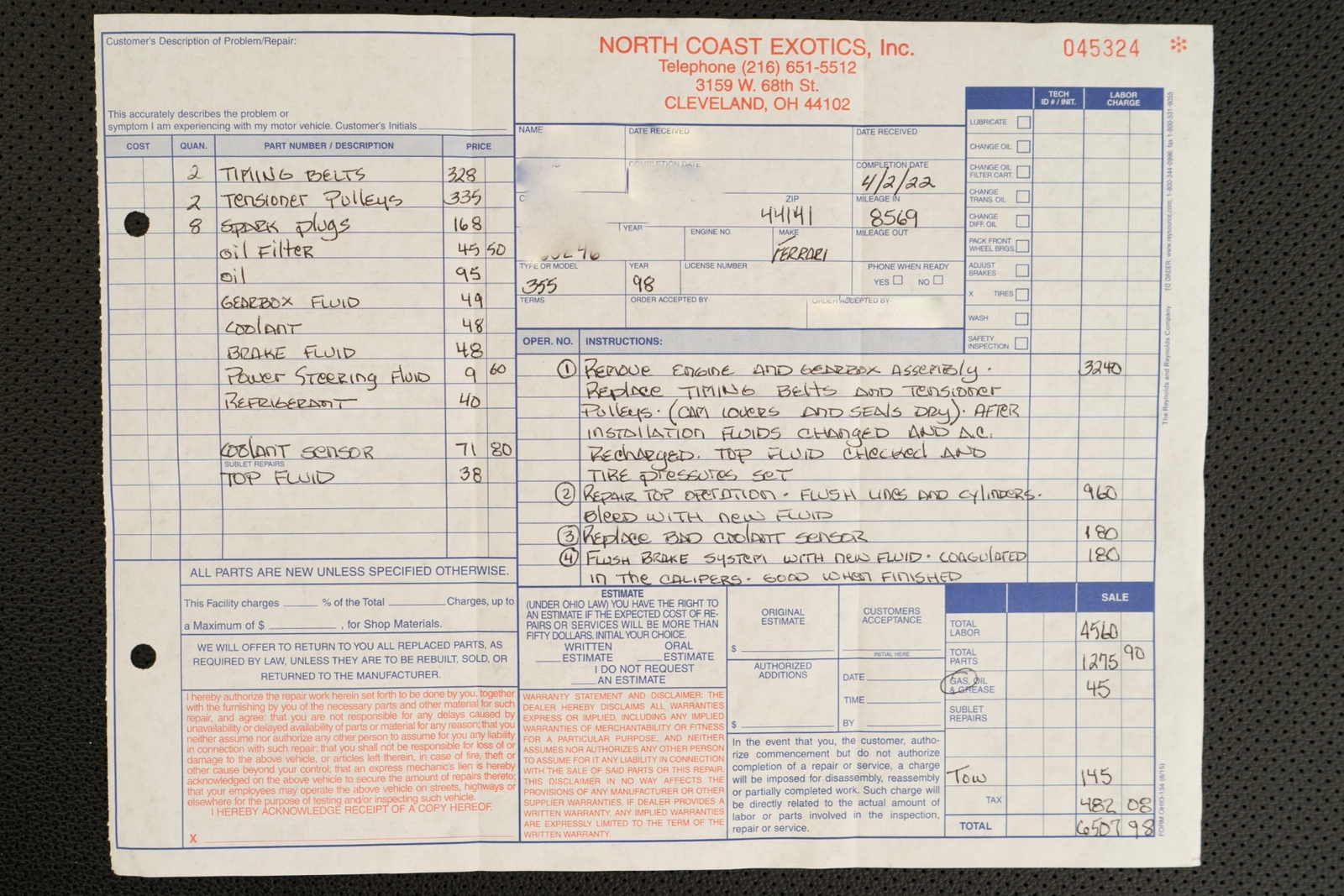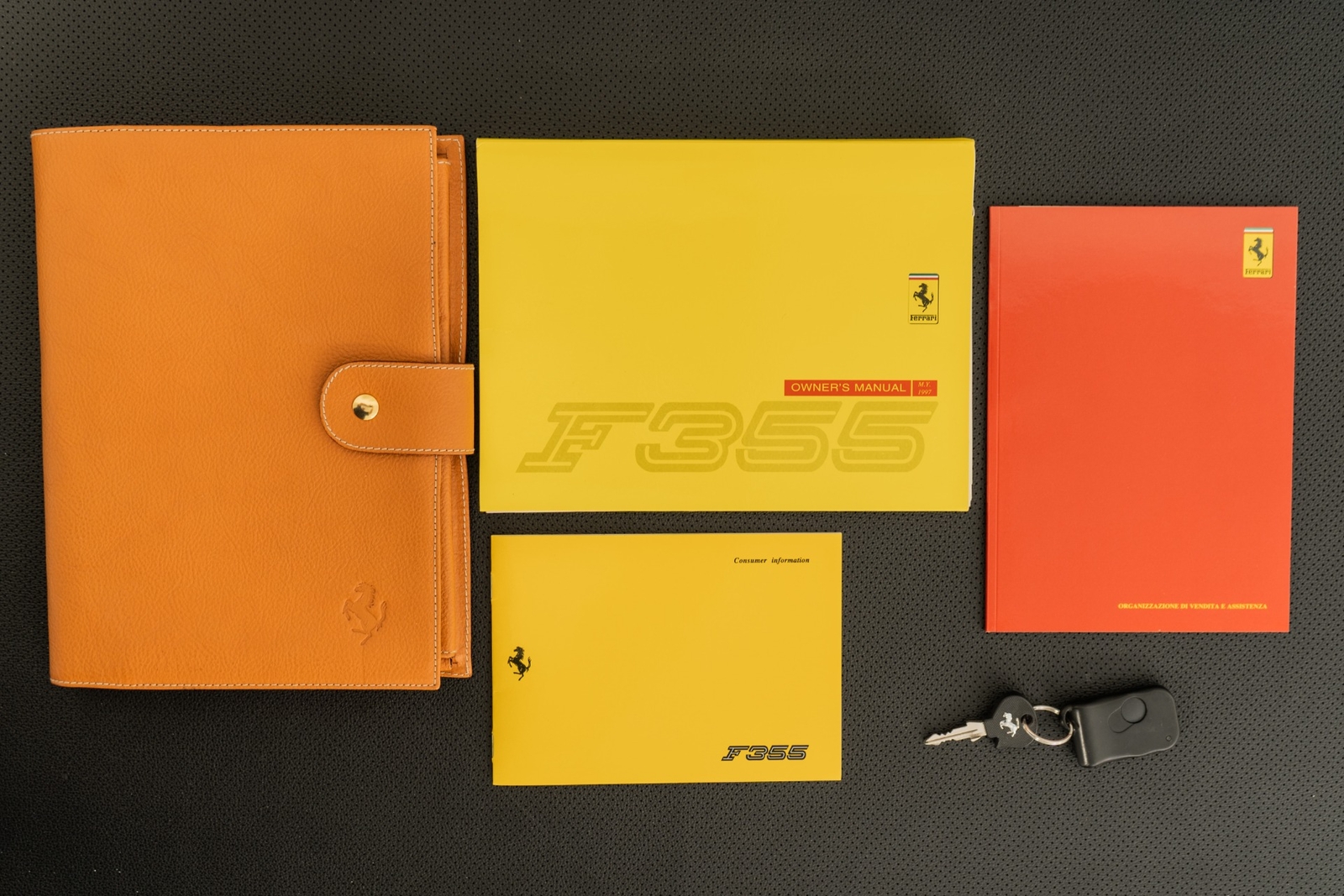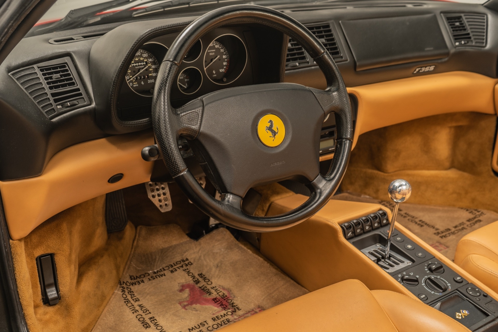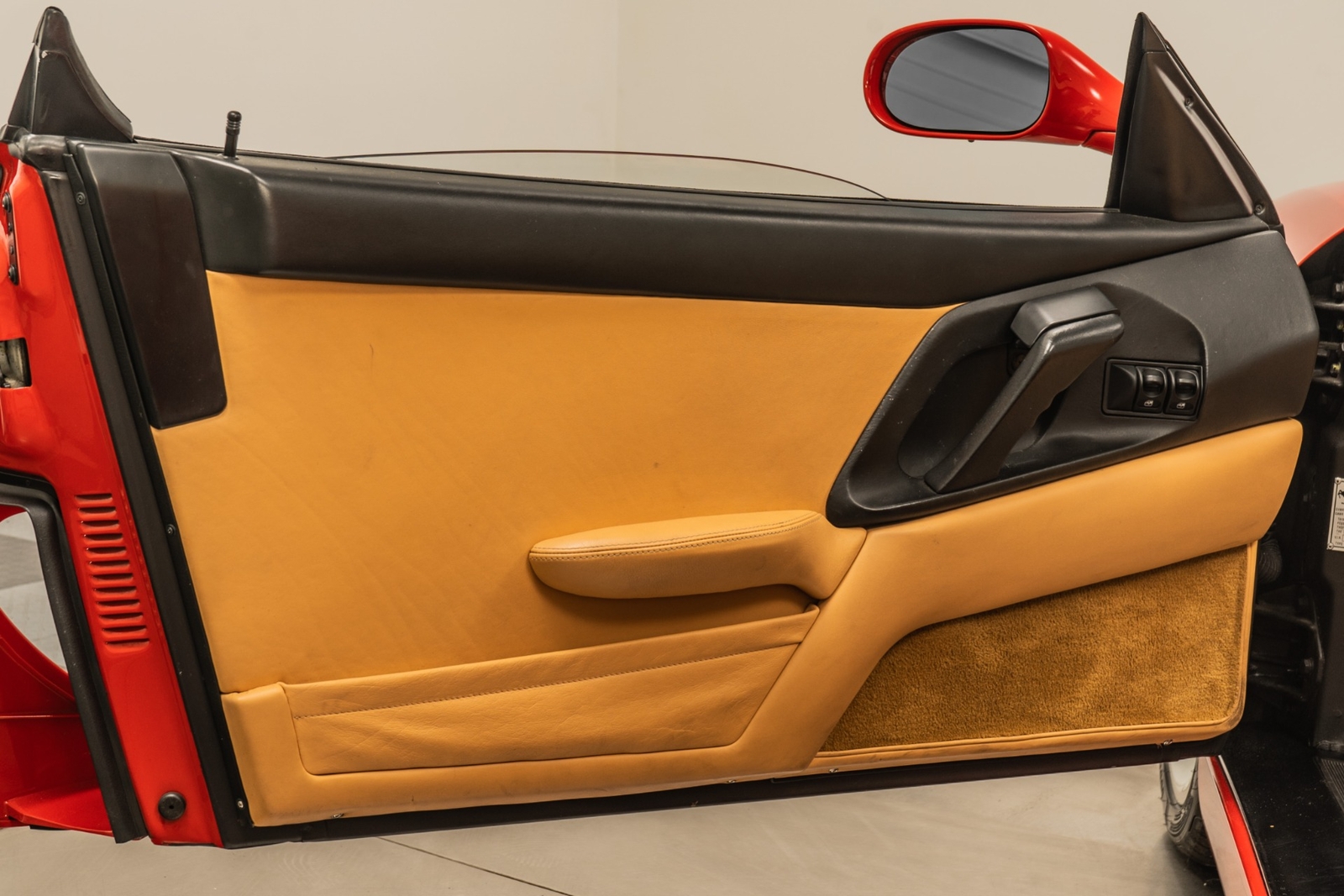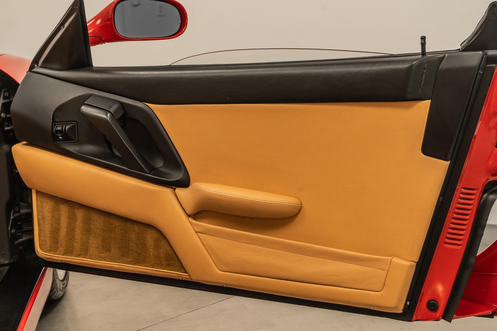 We have just added to our extensive exotic car inventory a beautiful 1997 Ferrari F355 Spider in Rosso Corsa over Beige leather interior and only 9,021 miles. The condition of this F355 is absolutely spectacular! The original owner of this Ferrari took remarkable care of the car from 1997 all the way until 2023. And it really shows! This F355 is loaded with: 3.5 liter V8, 6 speed manual transmission, silver 5 spoke alloy wheels, black brake calipers, power seats, Blaupunkt audio with CD changer, tools, floor mats, black convertible top and much more. An engine-out belt service was performed in April of 2022, or only 396 miles ago. The car will be sold with extensive additional service records, as well as with the original books, keys and toolkit with leather case. This is a truly remarkable example of an F355 6-spd manual Spider and not one to miss!