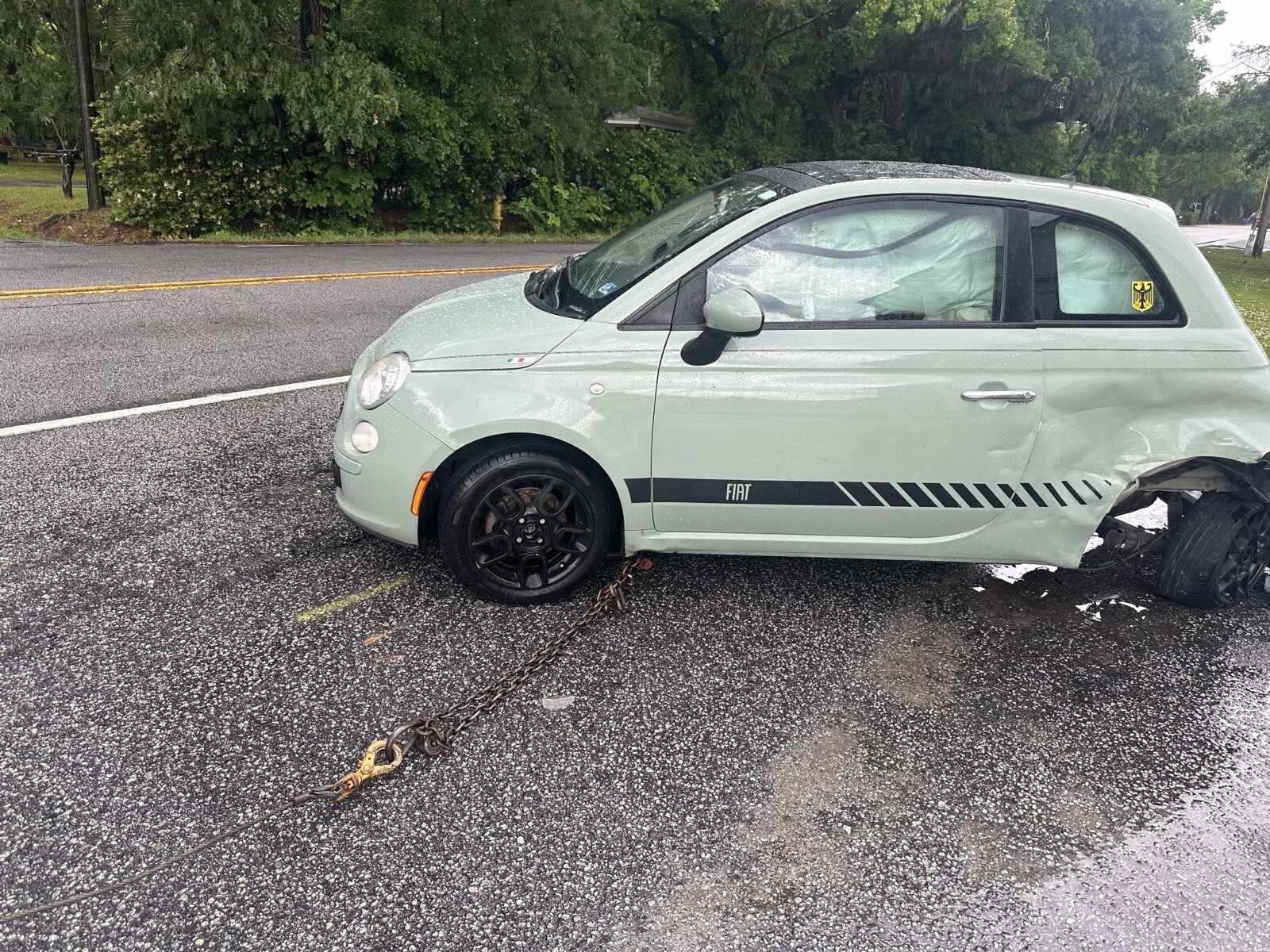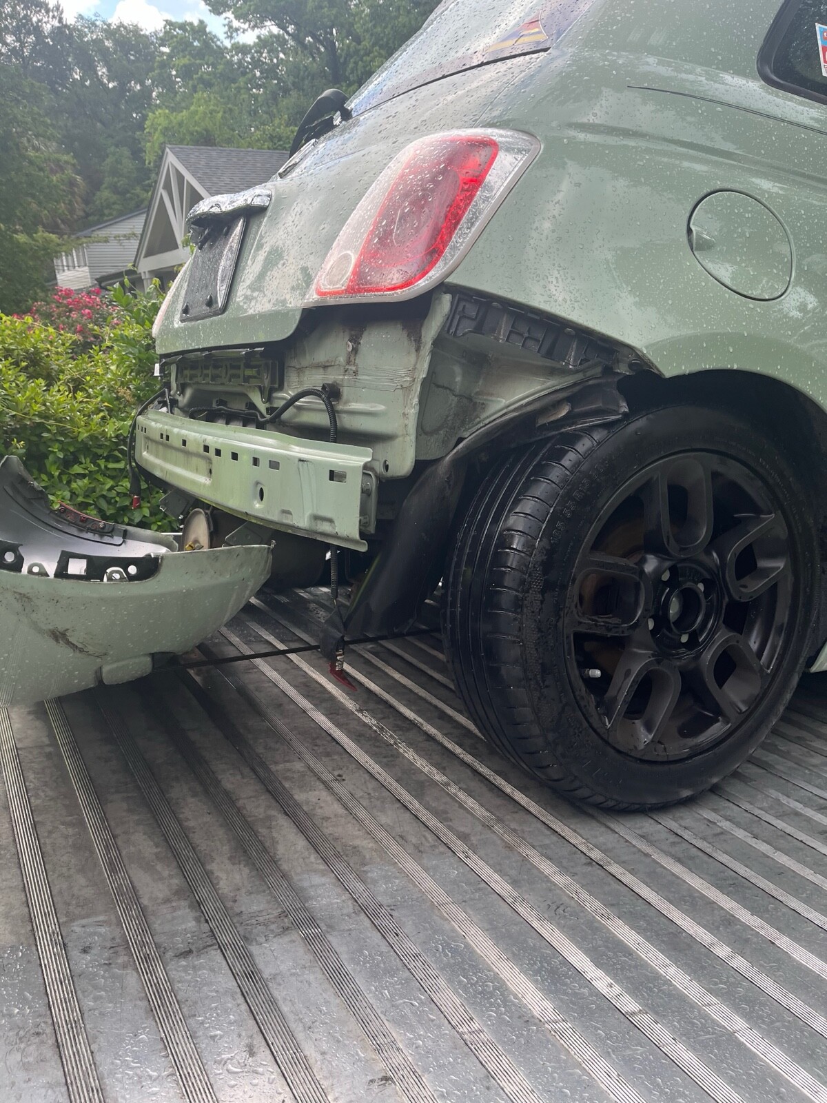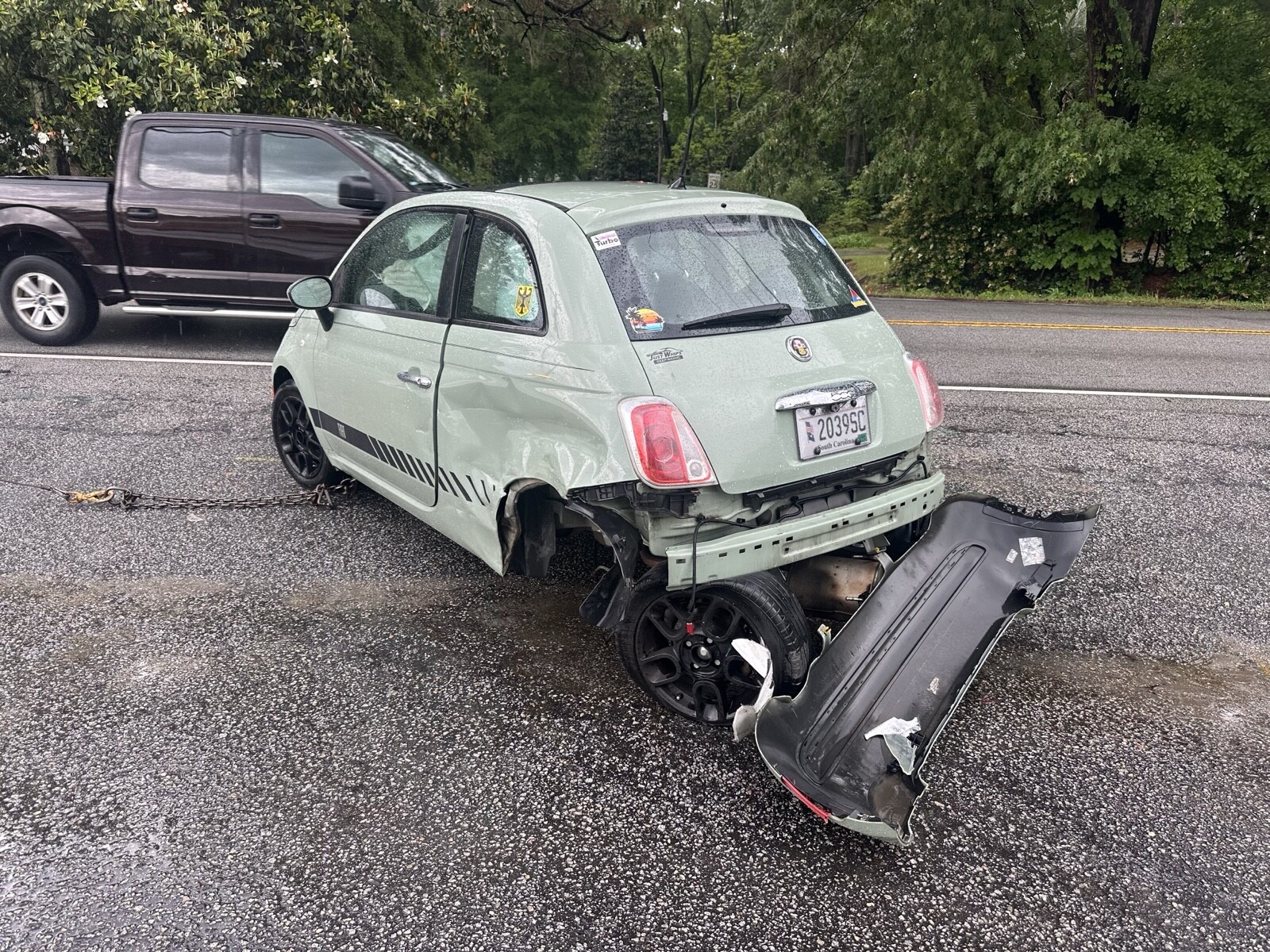 This 2012 Fiat 500 is listed for parts. The owner has had it for 2 years. The engine ran great prior to an accident where the car was hit in the driver side rear quarter panel. Many parts can be salvaged from this vehicle including the engine and brand new tires.