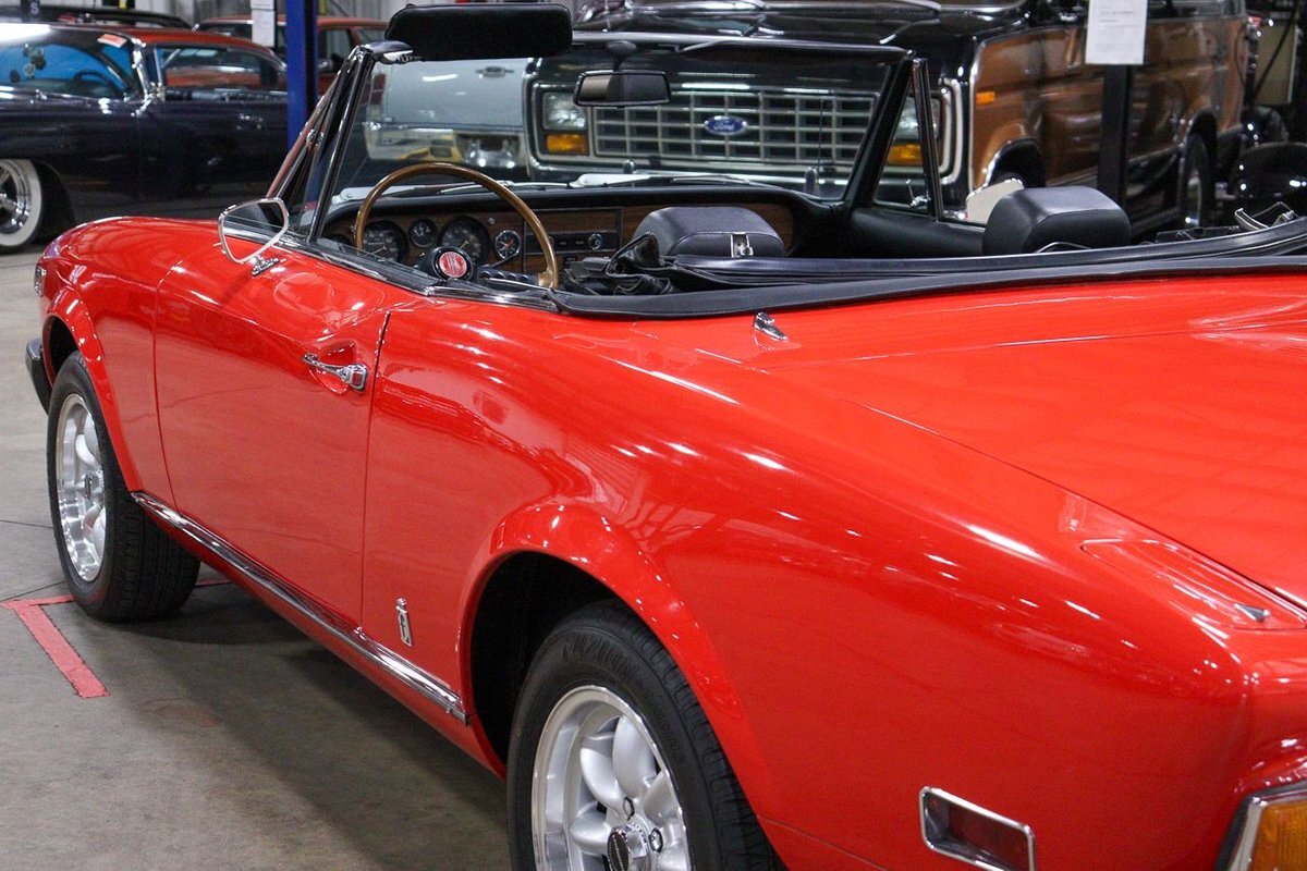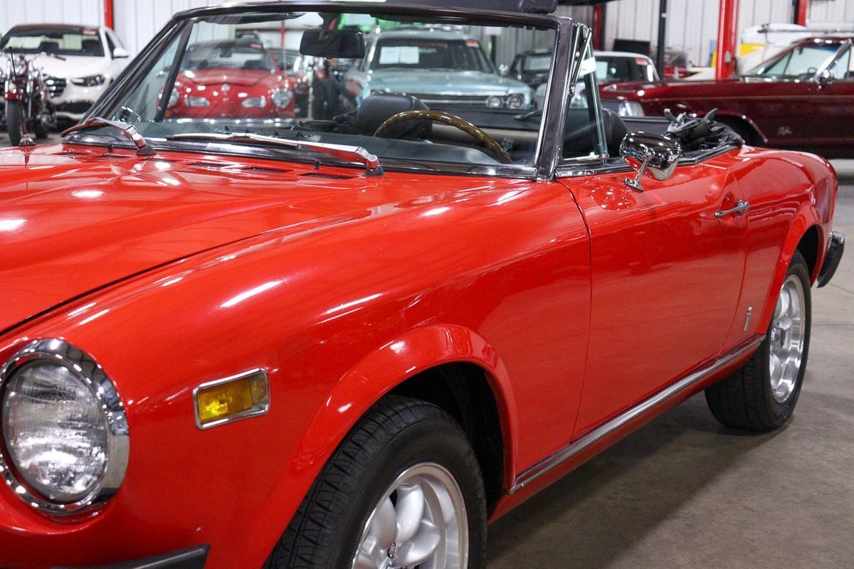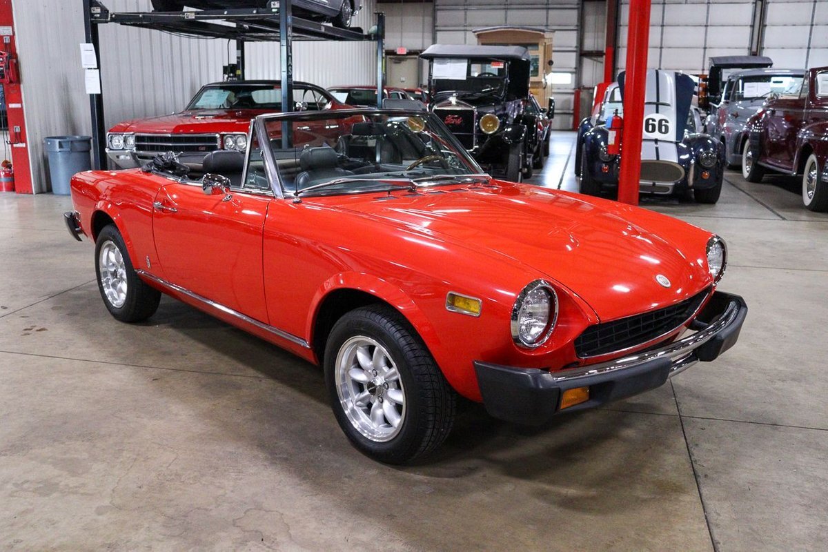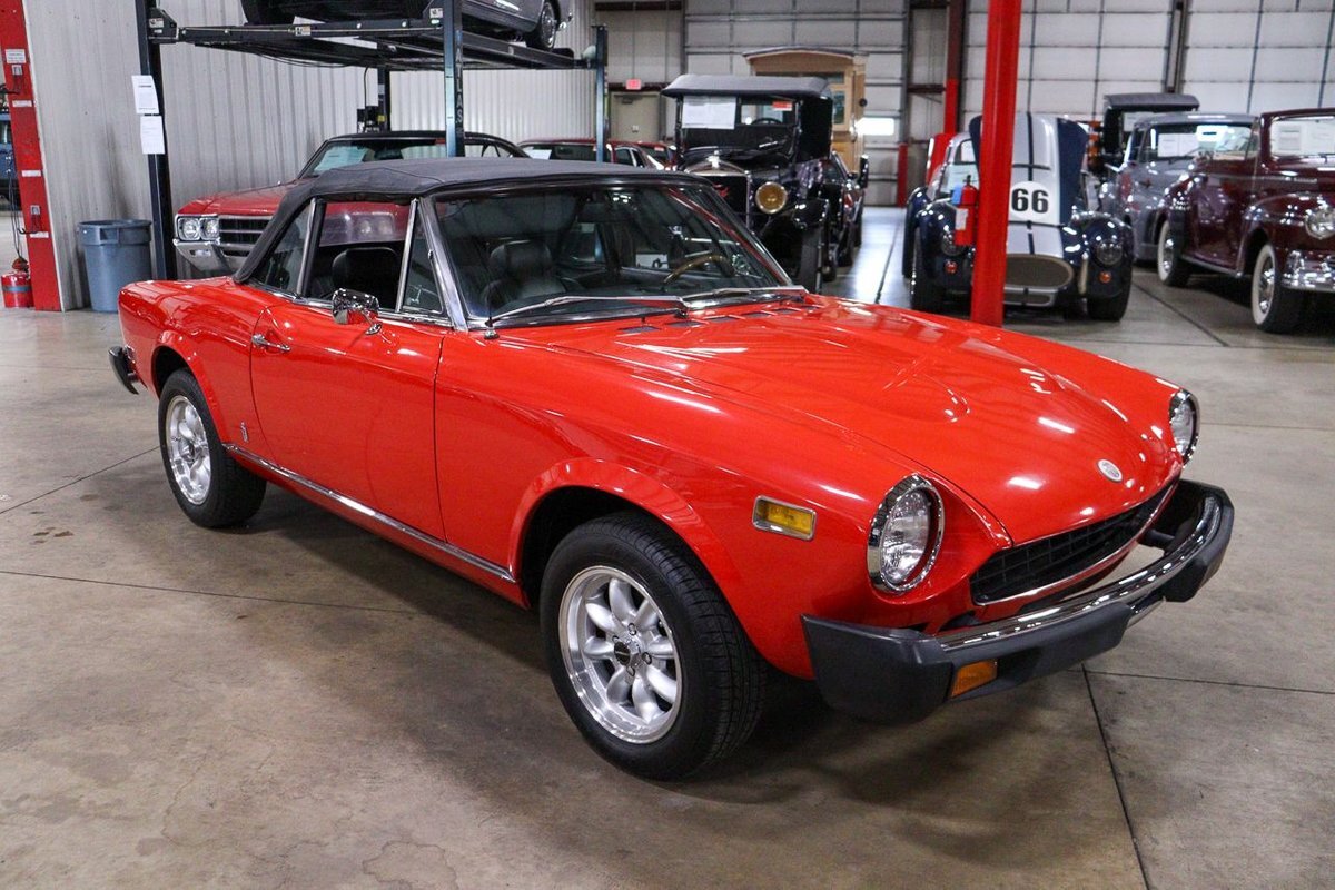 GR Auto Gallery is pleased to offer another affordable classic, this 1978 Fiat 124 Spider. The 124 was designed by world renown Italian coach builder, Pininfarina. This sporty little convertible debuted in 1966 at the Turin Auto Show and was made available to the European and US market. The cars were small but very capable sports cars that were fun to drive. The interiors were roomy and well appointed compared to other cars in its class, and the Pininfarina body design would prove timeless.