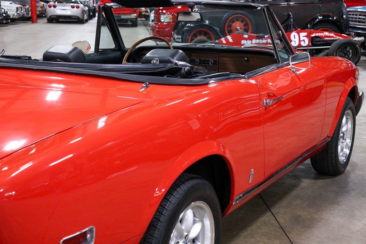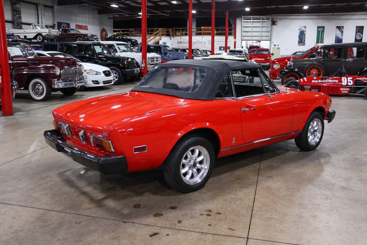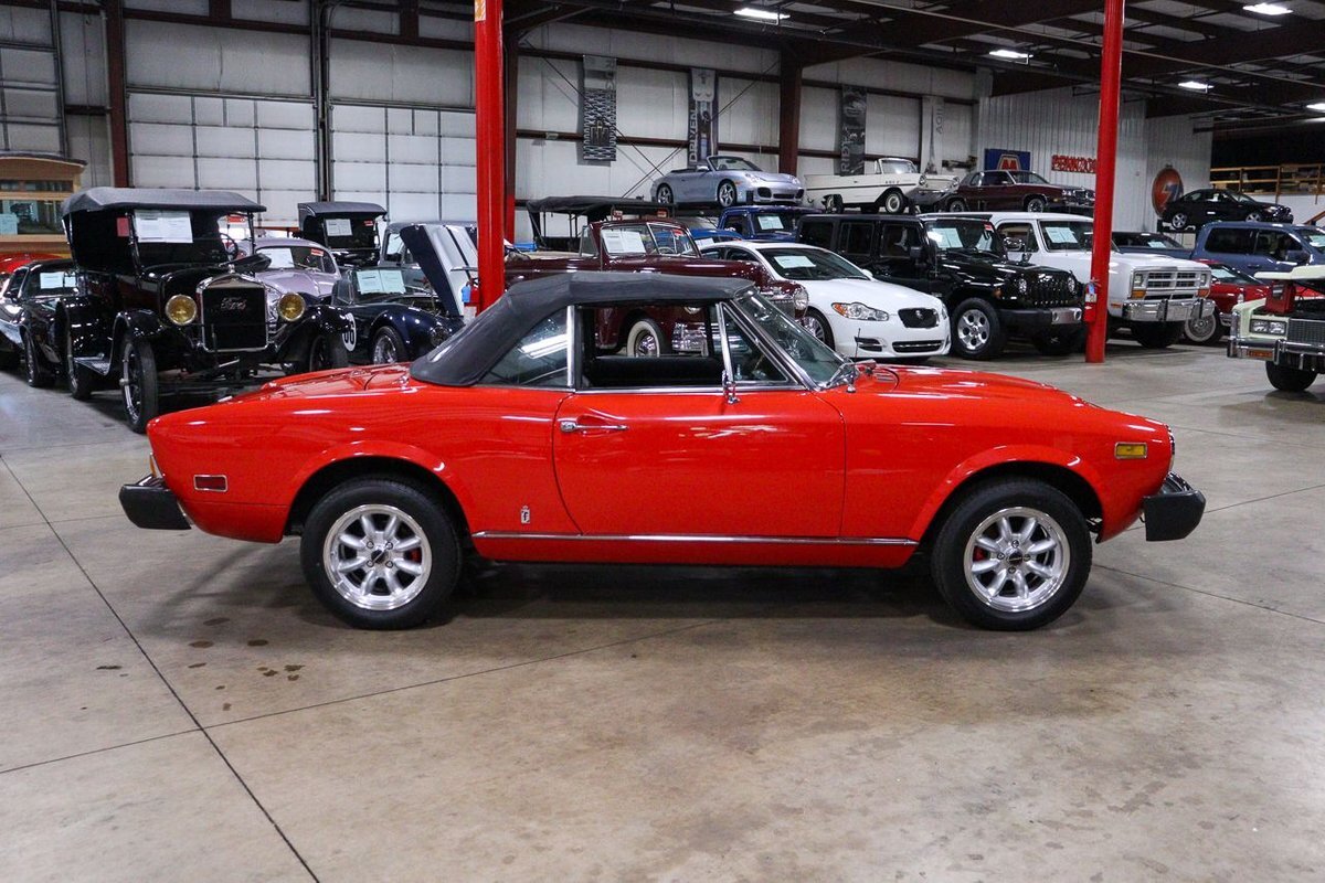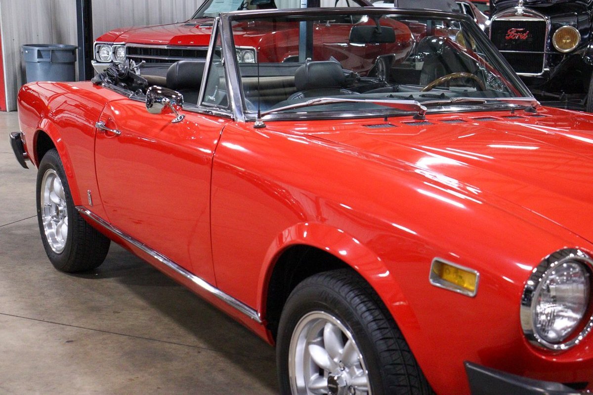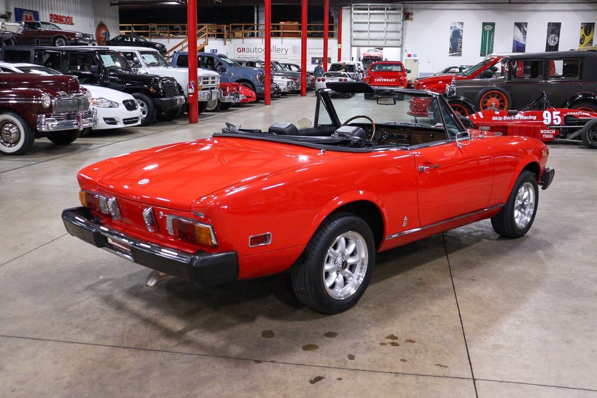 GR Auto Gallery is pleased to offer another affordable classic, this 1978 Fiat 124 Spider. The 124 was designed by world renown Italian coach builder, Pininfarina. This sporty little convertible debuted in 1966 at the Turin Auto Show and was made available to the European and US market. The cars were small but very capable sports cars that were fun to drive. The interiors were roomy and well appointed compared to other cars in its class, and the Pininfarina body design would prove timeless.