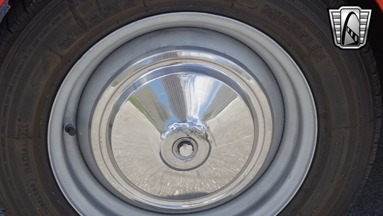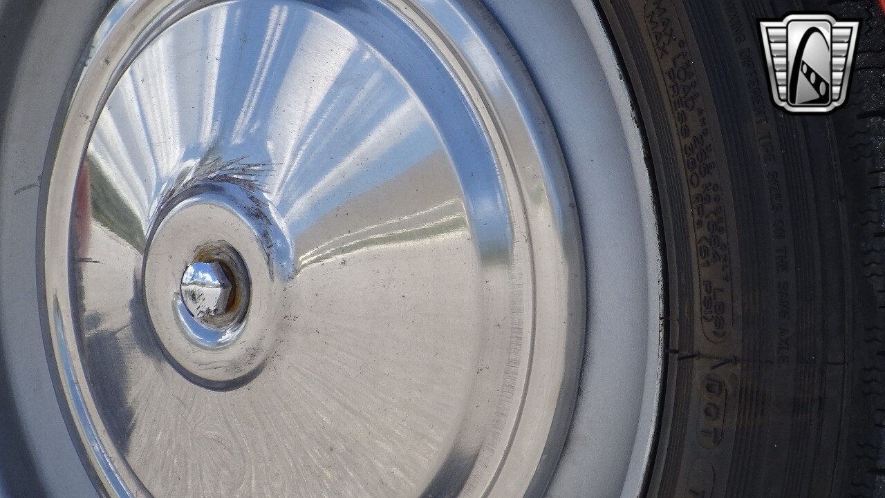 The car is also equipped with radial tires for improved handling and a smoother ride. The hub caps add a touch of classic charm, enhancing the overall aesthetic of the vehicle.