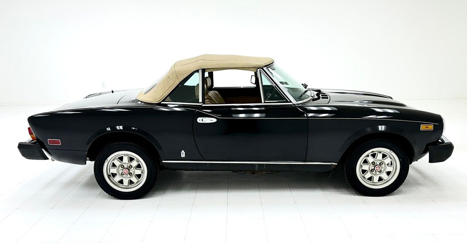 For consignment, a 1982 Fiat Spyder with a title verified 65,285 actual miles. This is a rare vintage as only 3,456 units were produced in 1982 and it's unknown how many are left and roadworthy. This one was produced in San Giorgio Canavese after Pininfarina took over the manufacturing of the Fiats in late 1981 and reset the serial numbers. This car wears number 269.