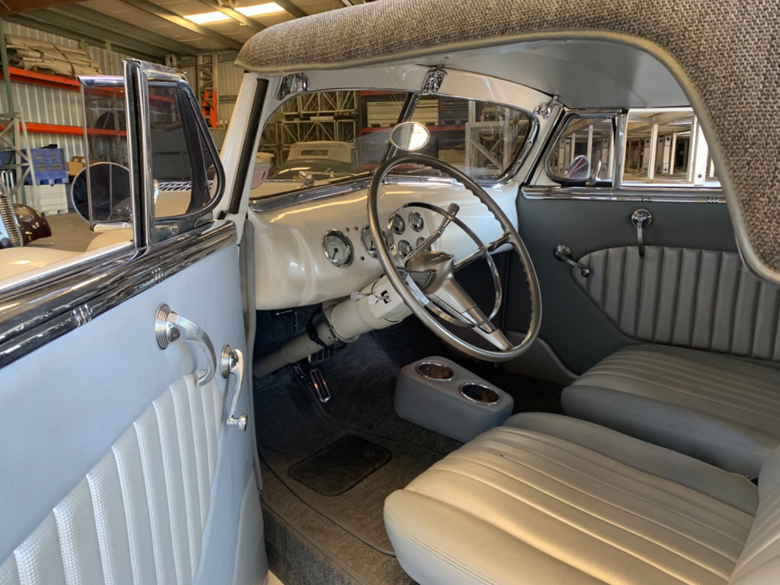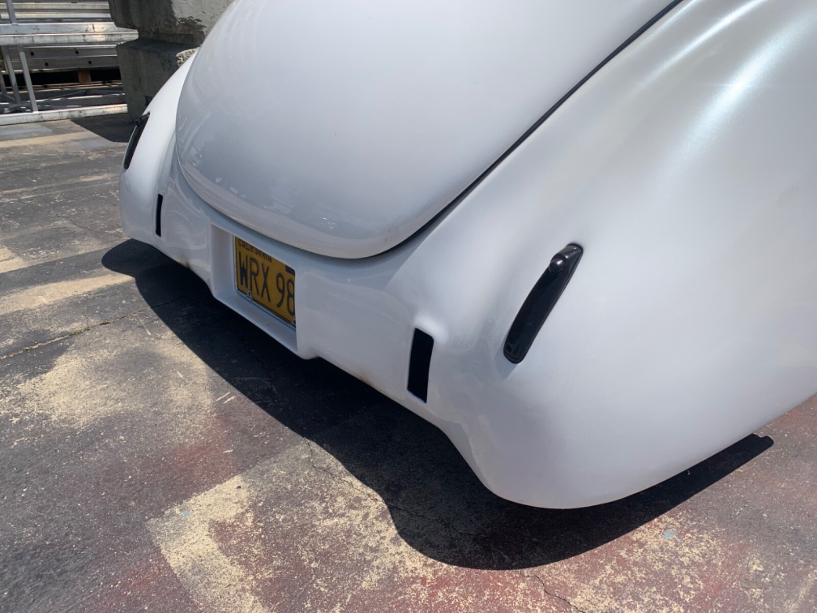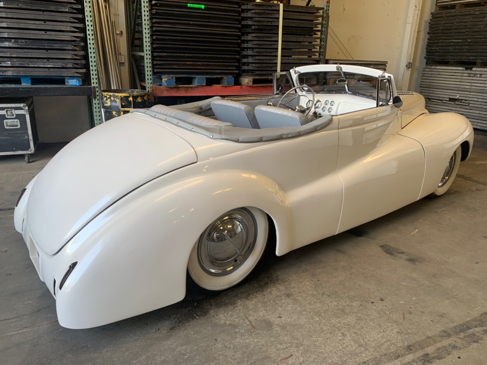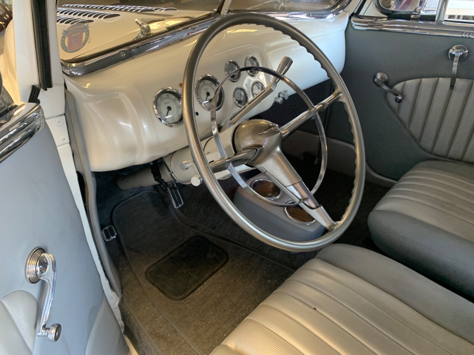 One of a kind early built kustom. Chopped top removable carson top, all glass installed. Heavy channelled body, raised fenders with fadeaways, modified louvered hood to fit fender treatment. Fully molded and shaved body. Molded front side grills. Frenched headlights, frenched 41 studebaker taillights. Paint is almost mew pearl white. Interior newer, shaved modified dash with all working gauges, tilt column with 56 Chevy steering wheel. Fresh chromed garnishes. Nice a shiny 350/350, 10 bolt rear parellel leaf kit with lowering blocks. CEI heavy drop axle with disc brakes, power steering and brakes. Front end has developed a wobble may need tie rod replacement needs attention asap. I don’t have time to deal with it. 16” wheel but caps in pics not included will provide others. Or have almost new 15” whitewall setup that was on it. Car has an Arizona title. Car was said to have been done in the 50’s never finished, as shown there’s a pic in the 70’s, then redone early 2000’s in orange and now completely redone paint and interior. Selling to downsize collection.