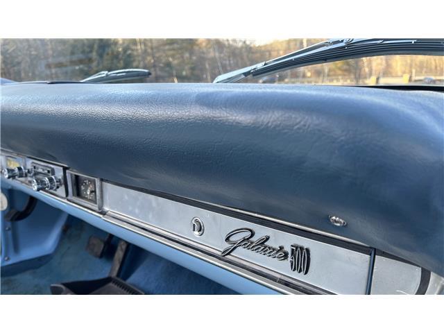 Features like the bench seating, column shifter, and optional disc brakes are characteristic of the era and add to the authentic charm of this classic vehicle. It's also impressive that this Galaxie 500 retains many of its original components, contributing to its historical significance and value.