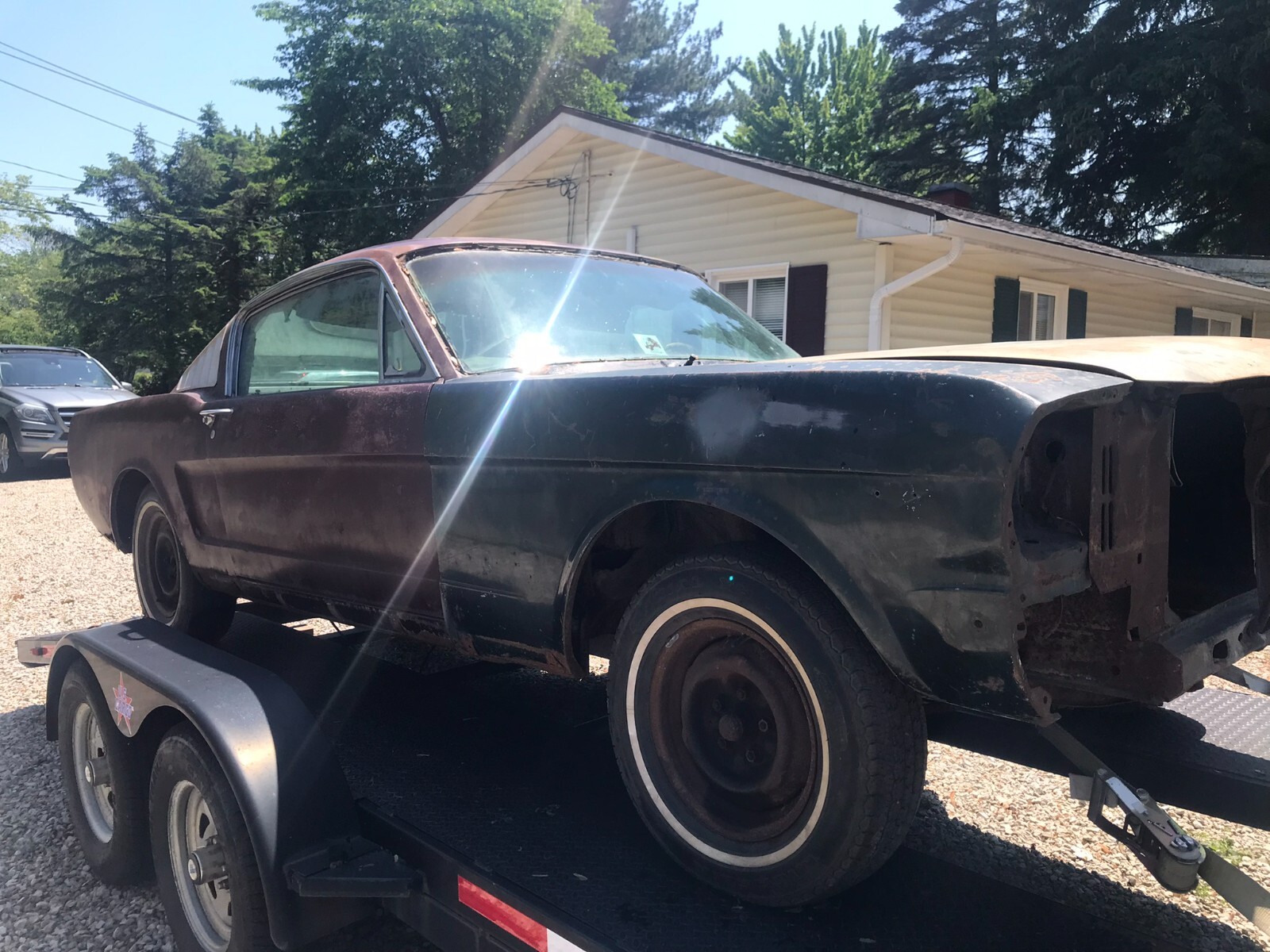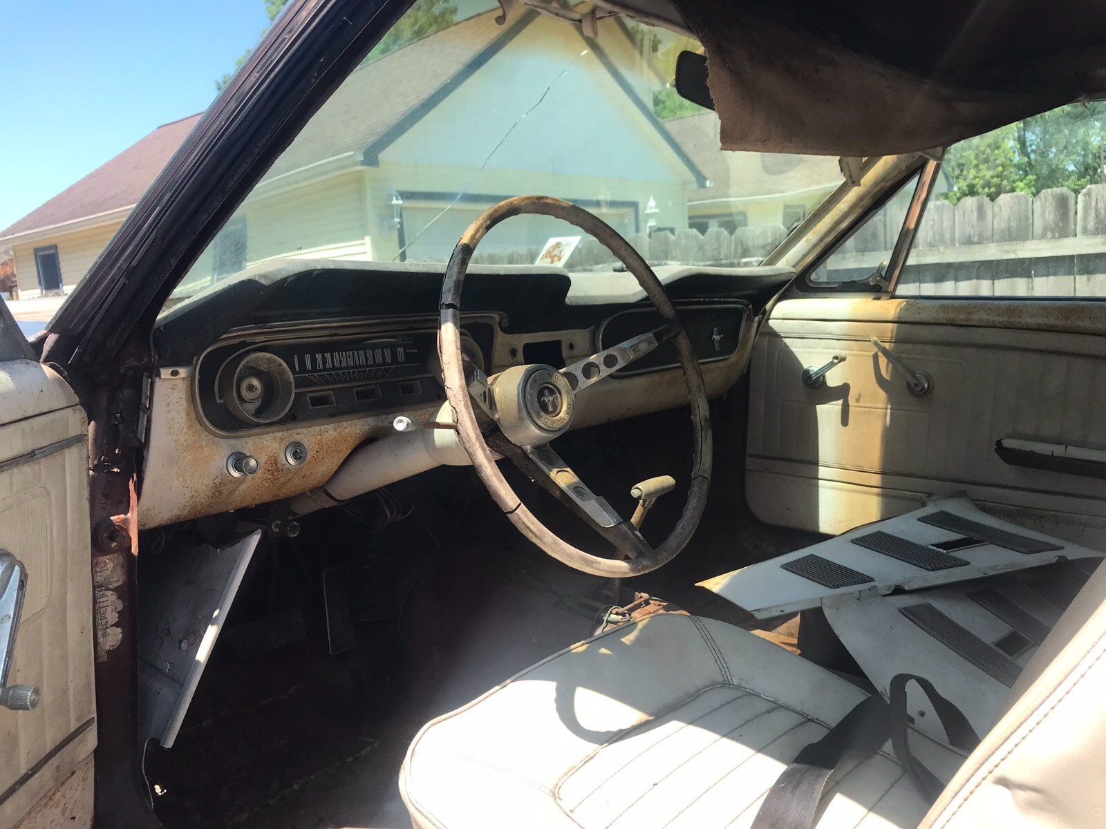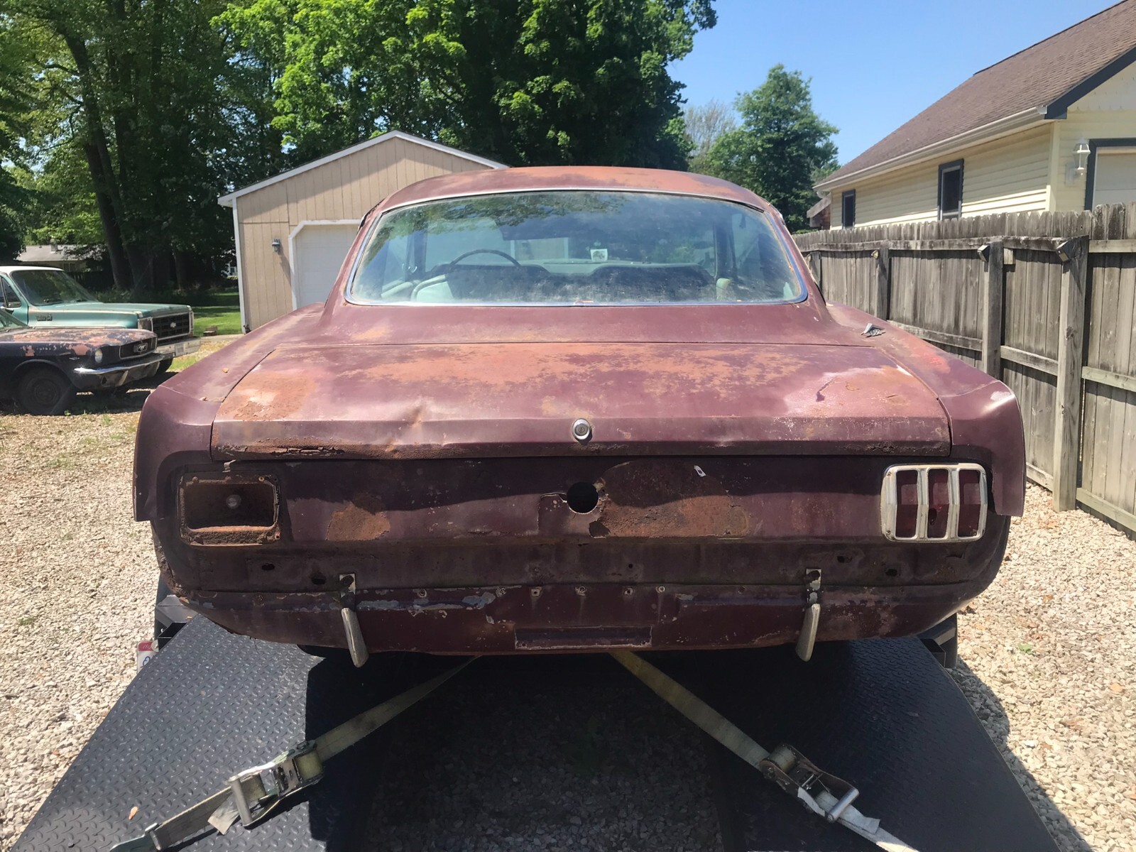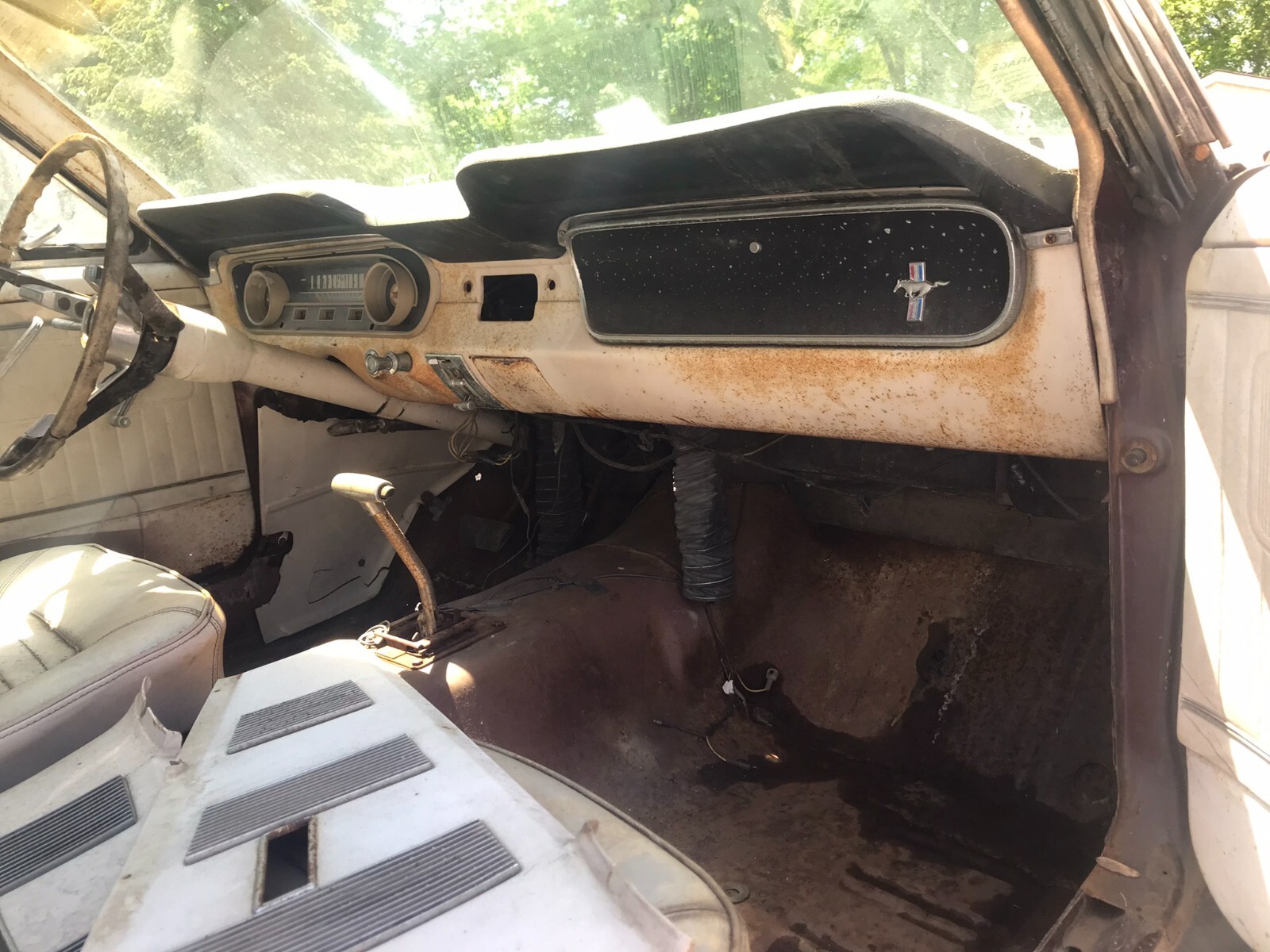 1965 Ford Mustang Fastback, c-code 289, auto, needs restoration (at minimum needs rear frame rails, trunk floor and left side quarter panel). Original interior is all there except carpet and headliner. Interior color is parchment with black carpet and trim. Clean Ohio title in my name.