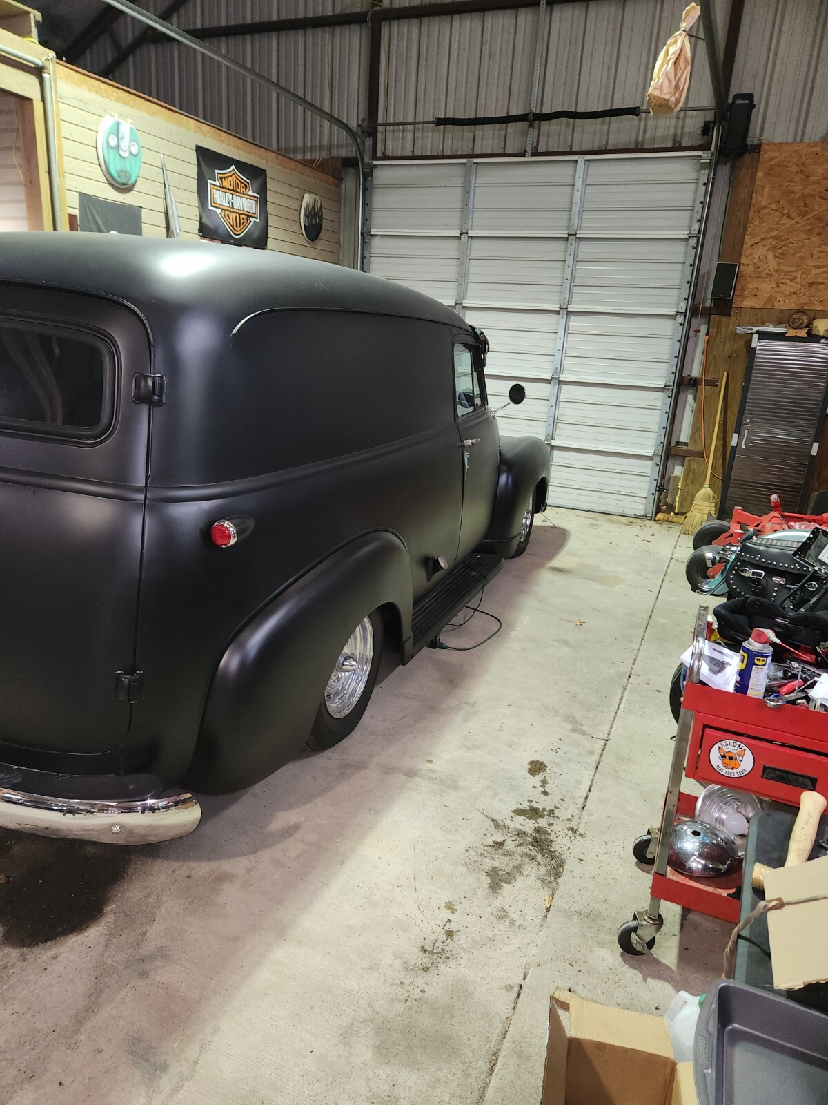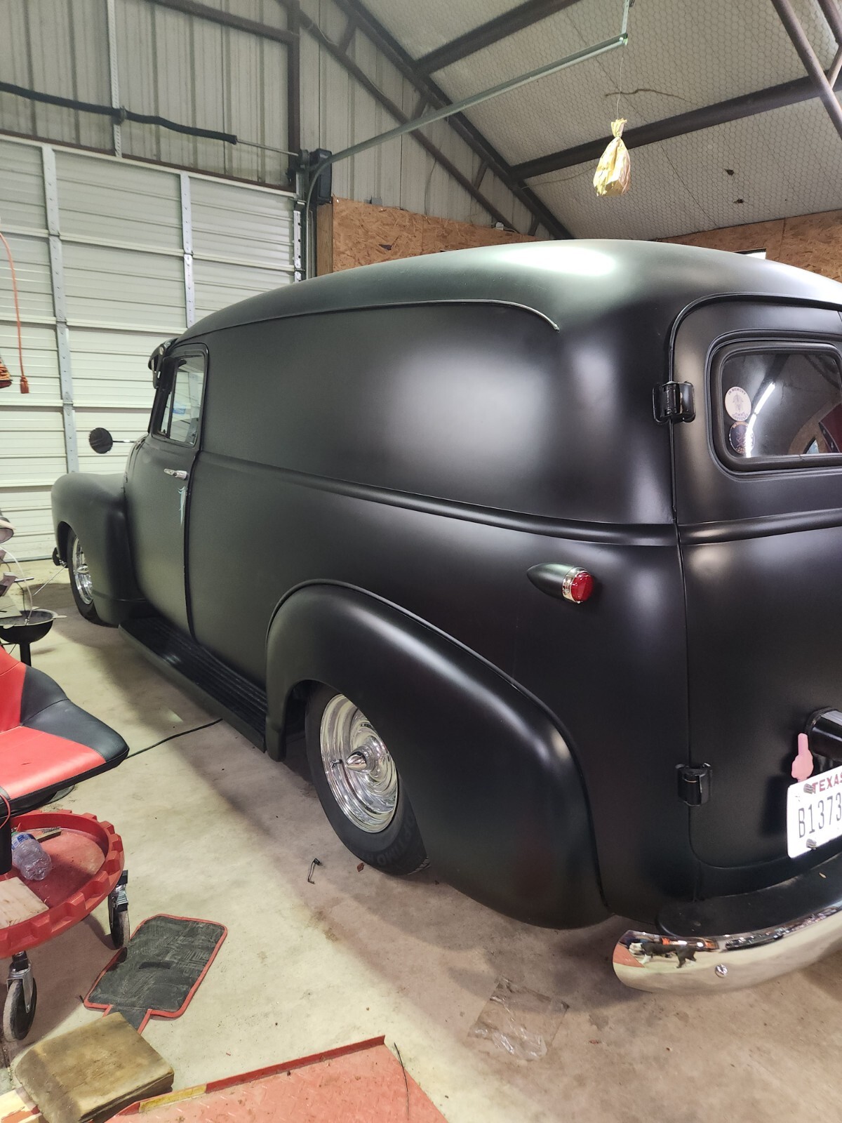 This is a 1953 GMC 3100 panel truck with a 1953 Chevrolet nose it has a 4-inch dropped straight axle disc brakes Camaro 10 bolt rear end drum brakes 350 engine rebuilt less than 500 miles ago t350 automatic transmission rebuilt 1500 miles ago Interior is completely done no air no power steering no heat it can be added very reliable vehicle it's a head turner please no tire kickers if you do not have the funds to buy the vehicle please do not bid I will answer all questions to the best of my knowledge