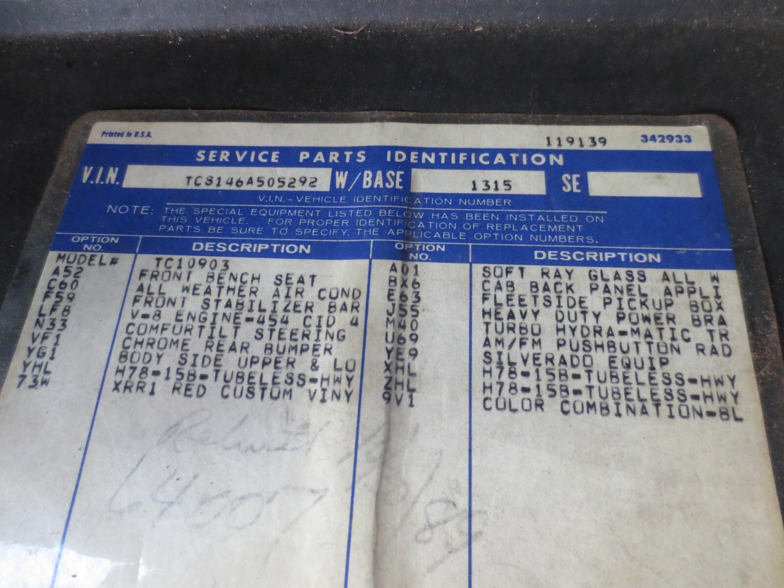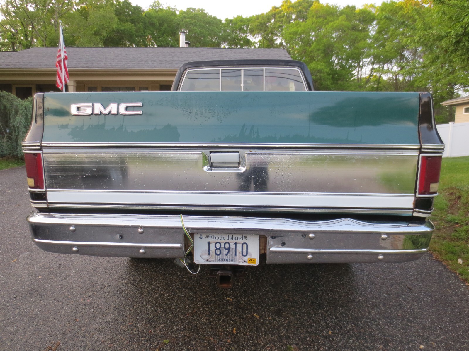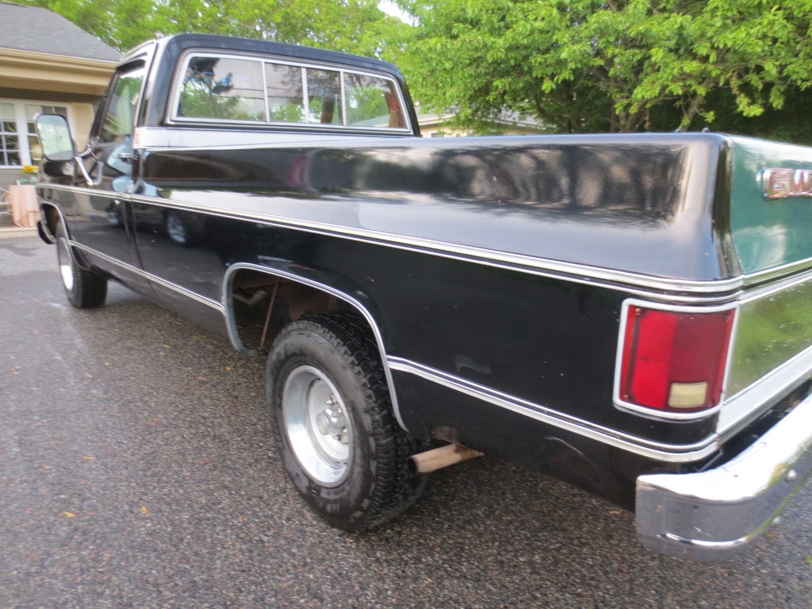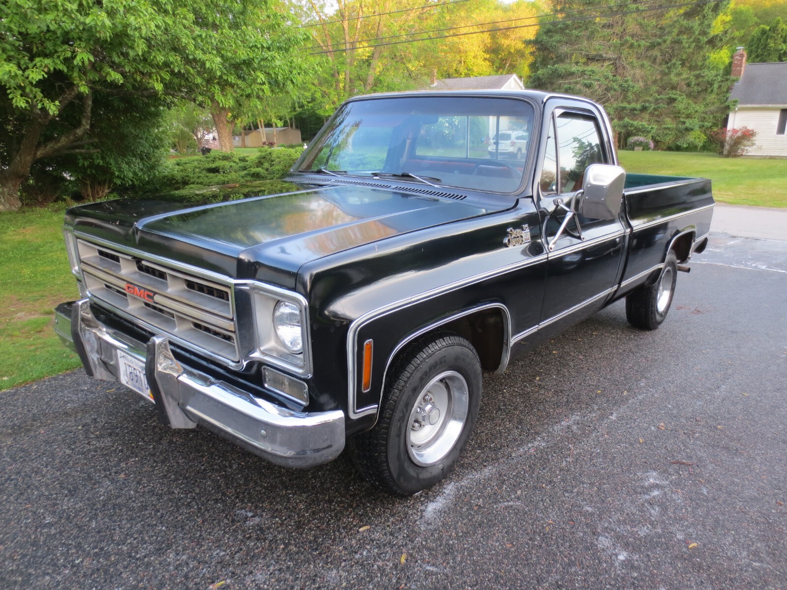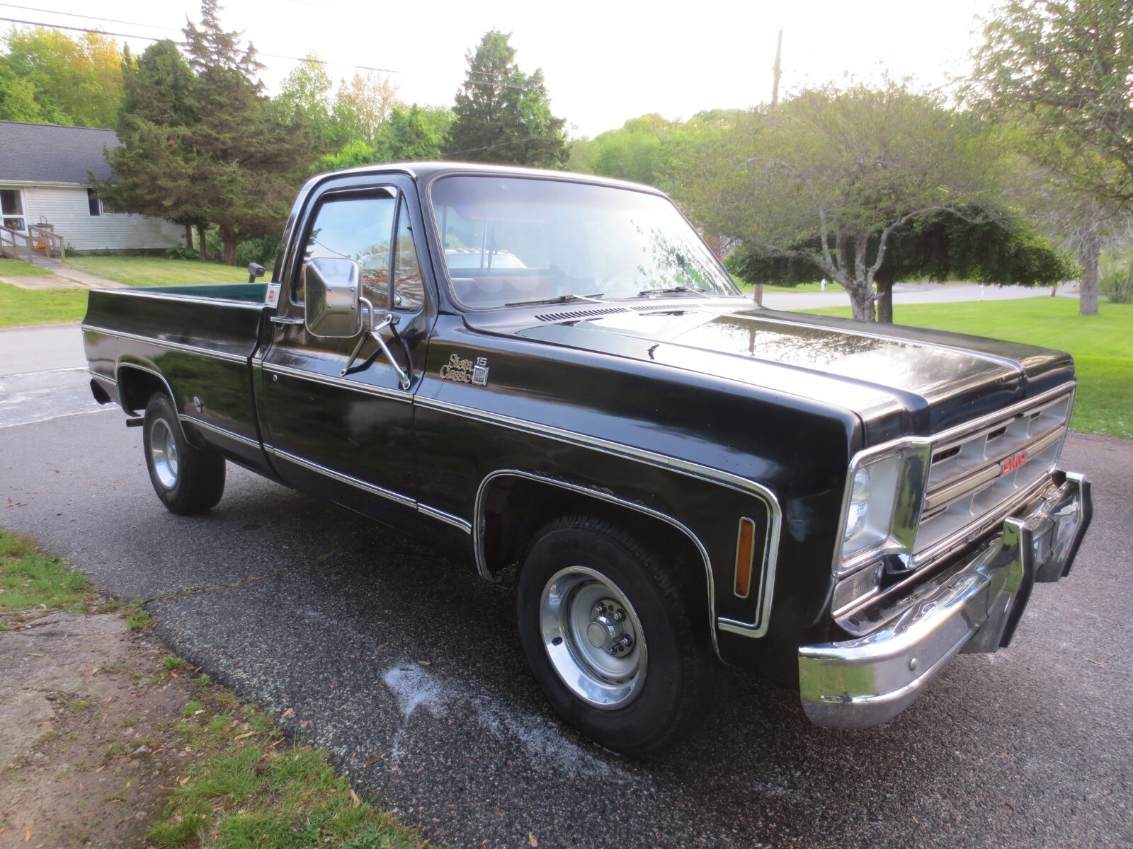 1976 GMC SIERRE CLASSIC SQUAREBODY LONG BED PICK UP TRUCK , SOLID NORTH CAROLINA BODY, ORIGINAL EQUIPMENT FROM THE FACTORY 454 engine, Turbo 400 Transmission, Air Conditioning, AMFM radio, Power Steering, Power Brakes, Premium Interior, Rally Wheels, Tilt Steering Column, and more. Runs and drives nice. I have taken it on a few 200 mile trips without any issues. New battery, Edelbrock Carb, and door locks. The interior is all original and is in good shape overall, a couple of stress tears in the drivers seat, carpet worn in a couple of area's and small cracks in the top of the dash see pictures. The radio is original and works but the speaker is blown out. The tailgate is from an 80's Sqaure Body that was removed when the truck had 500 miles for a camper install and was never put back on, like new. The floors, frame, body mounts and bed rails are perfect. The right front fender has damage and some rust under the chrome trim, comes with a replacement NOS GM fender. The new fender does have a repairable dent see pictures. The left rear quarter bottom does have a dent, comes with a new LMC replacement section see pictures. The engine runs well, nice power. It does have a few oil leaks from old gaskets but not major. The dual exhaust leaks at the manifolds. This is a great driver/ weekend work truck/ cruise night truck or take it to the next level without any major rust repair needed. Any questions please ask. It will be sold with the North Carolina clear title along with a bill of sale from me and copy of my Rhode Island current registration, as R.I. doesn't issue titles for Antique vehicles. Thanks