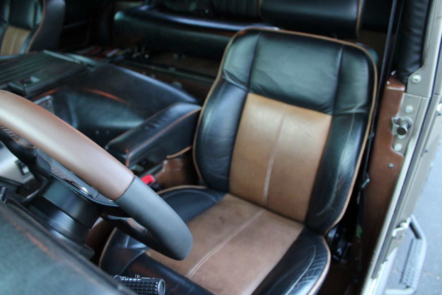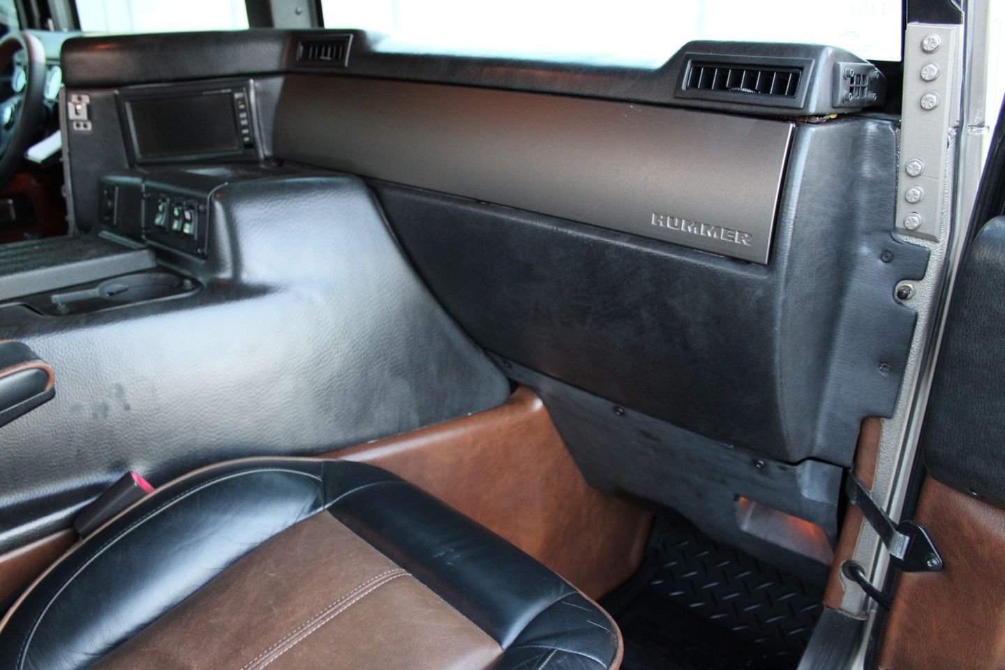 Slide into the cabin and immerse yourself in the opulent brown leather interior, a perfect complement to the H1's bold exterior. The seats, a tactile delight, promise comfort and support as you command this mighty beast, making every journey not just a drive, but an experience of pure indulgence.