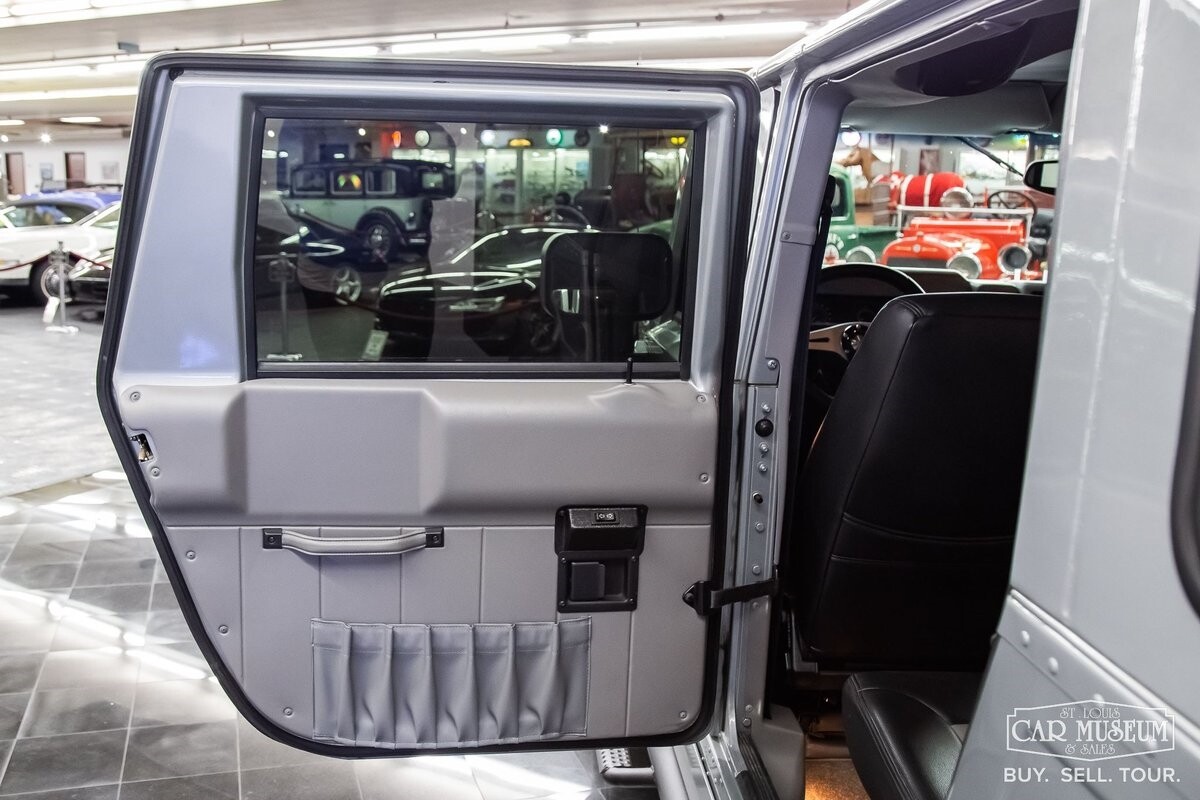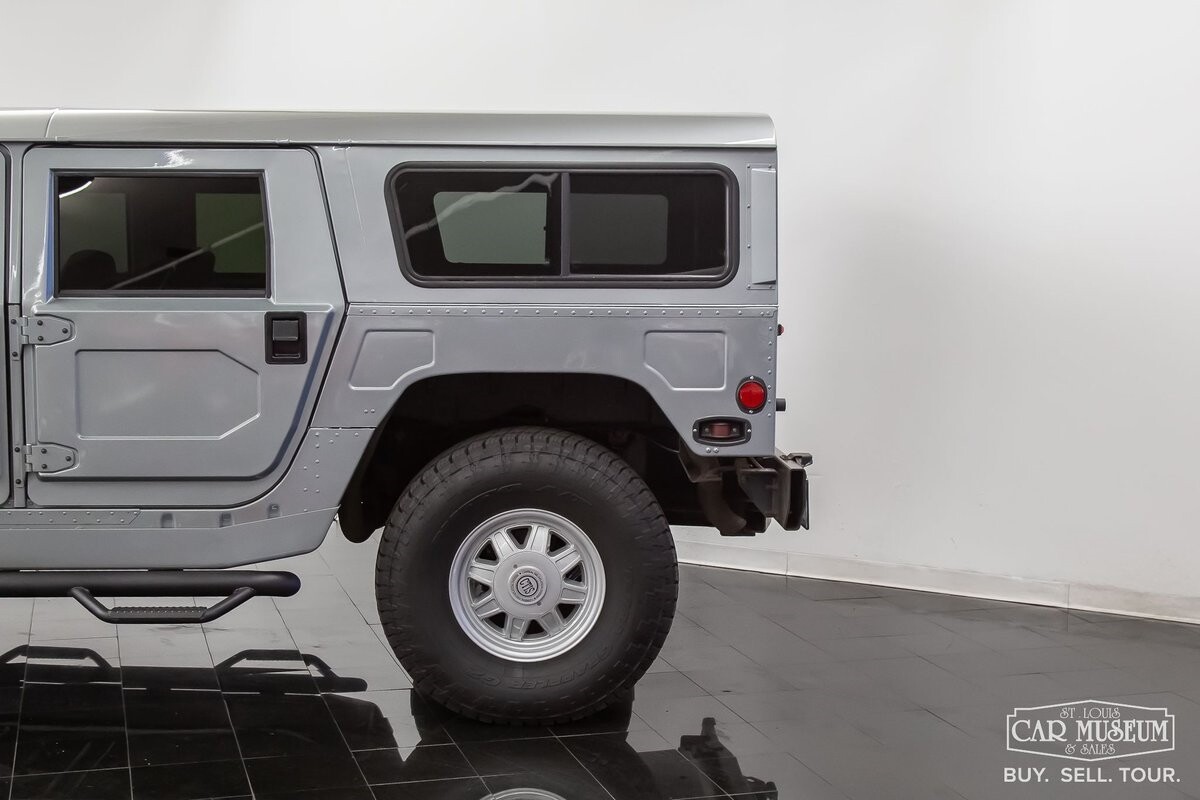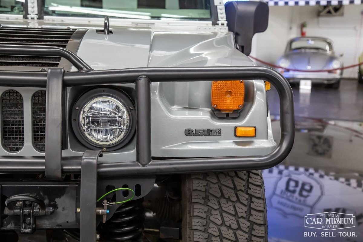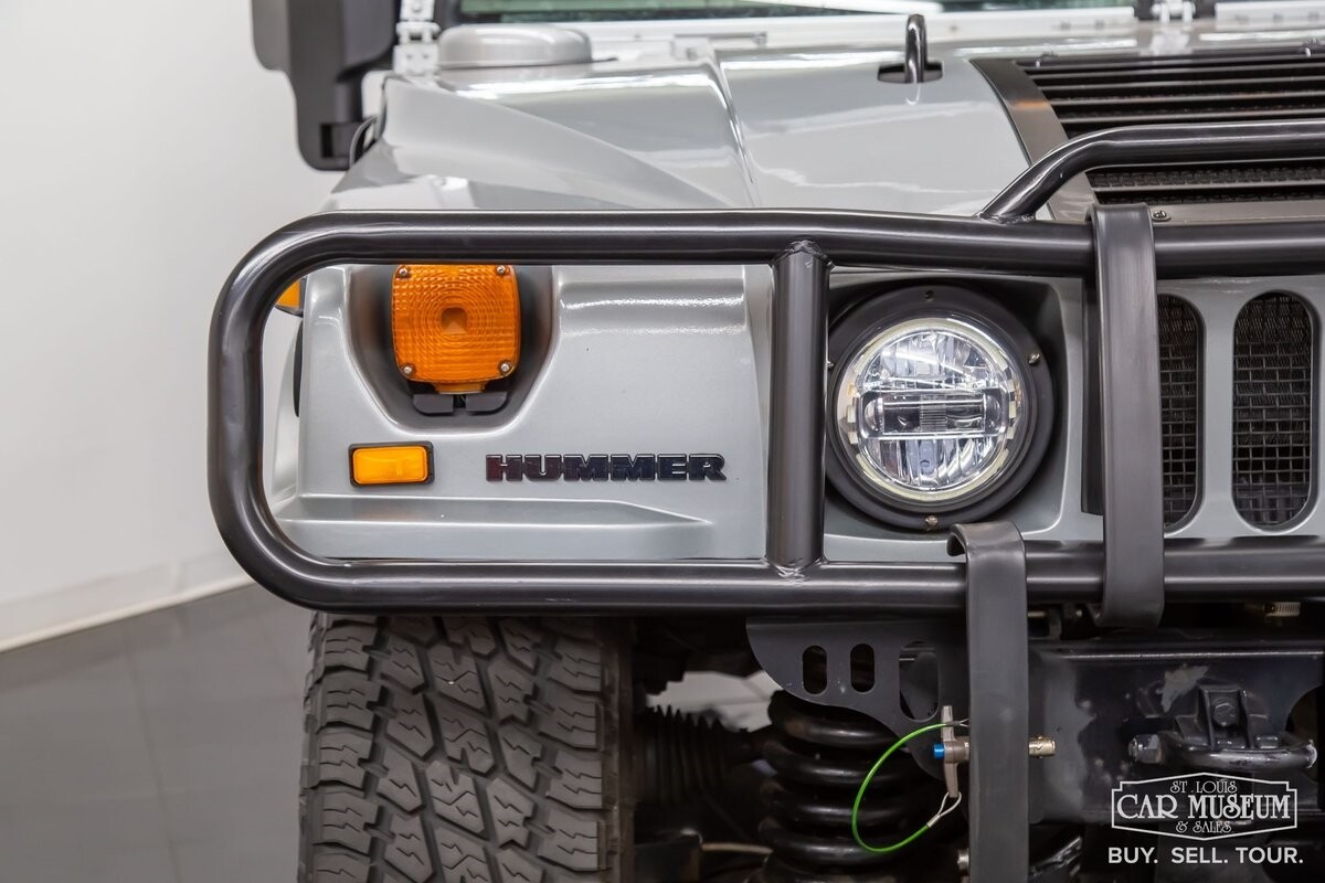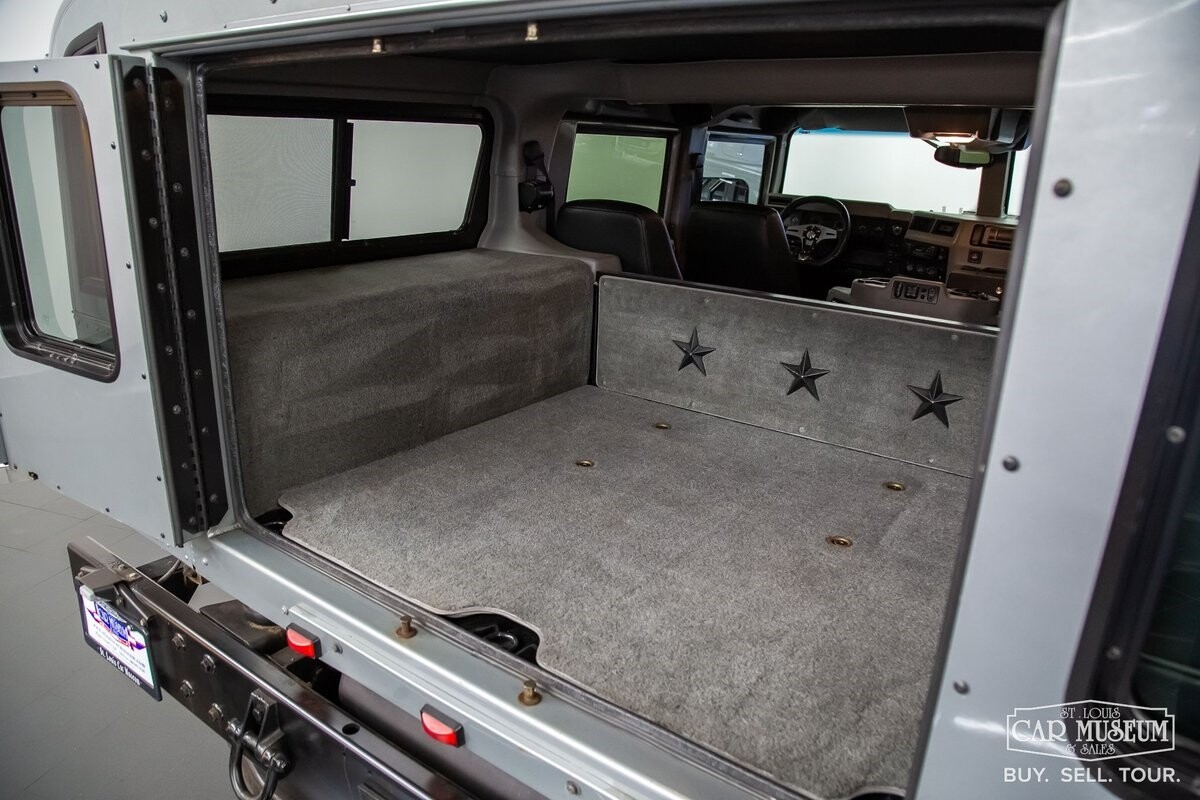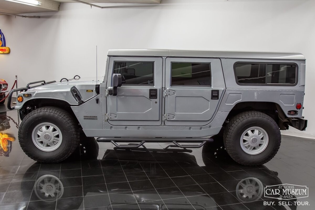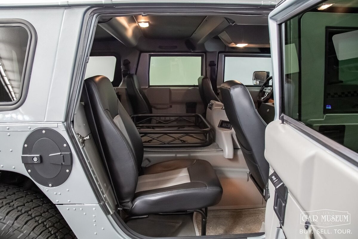 We are very excited to offer this 2001 Hummer H1 4 Passenger Wagon finished in Silver Metallic with a two-tone Gray and Black leather interior. Powering this rugged full-time 4-wheel-drive H1 is a 6.5L Turbo Diesel V8 engine that produces 194 horsepower and 430 lb. ft. of torque mated to a 4-speed automatic transmission with electronic overdrive. These H1 Wagons share most of their components with the original 4-door versions but had an extended roof over the passenger and cargo area. Instead of a tailgate in the rear these Wagons featured side-hinged doors and the last row of windows on the sides were able to slide open.