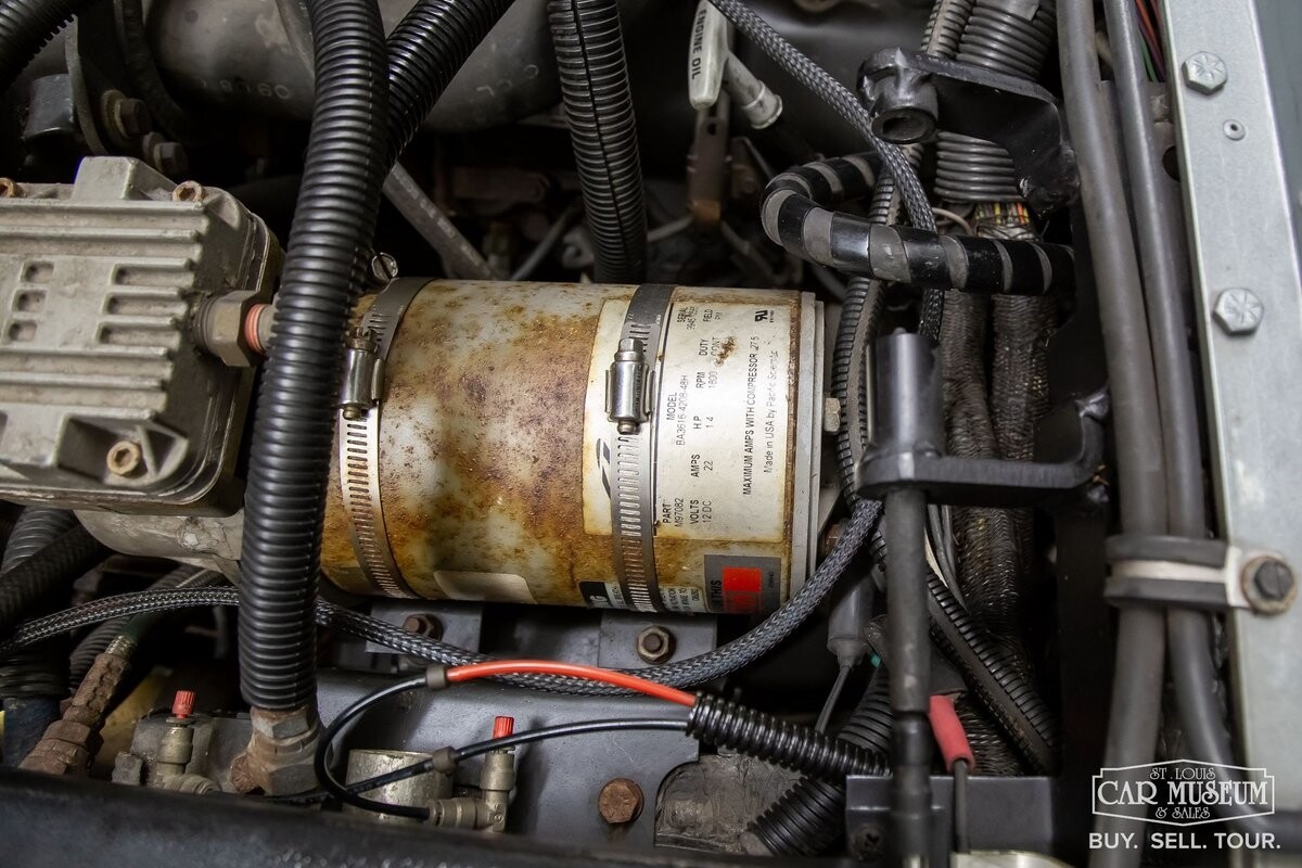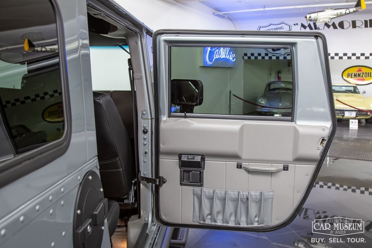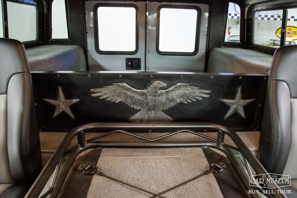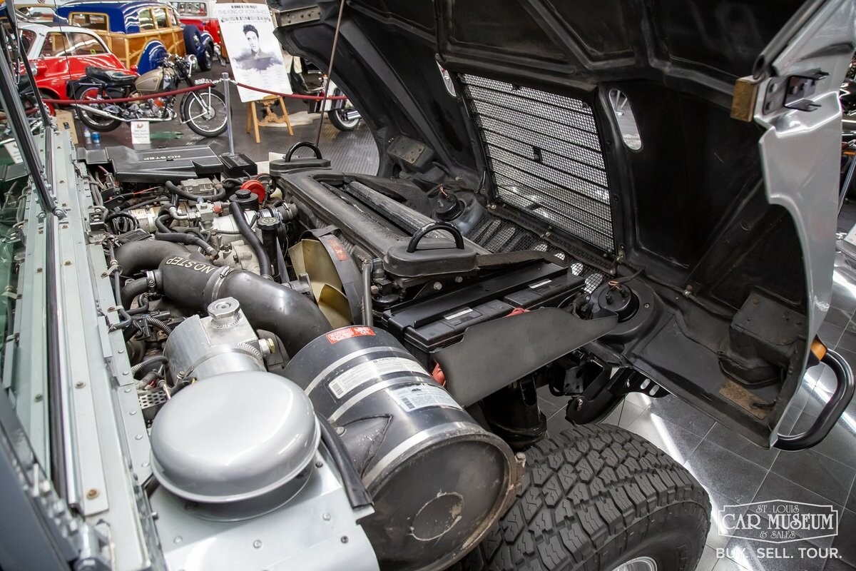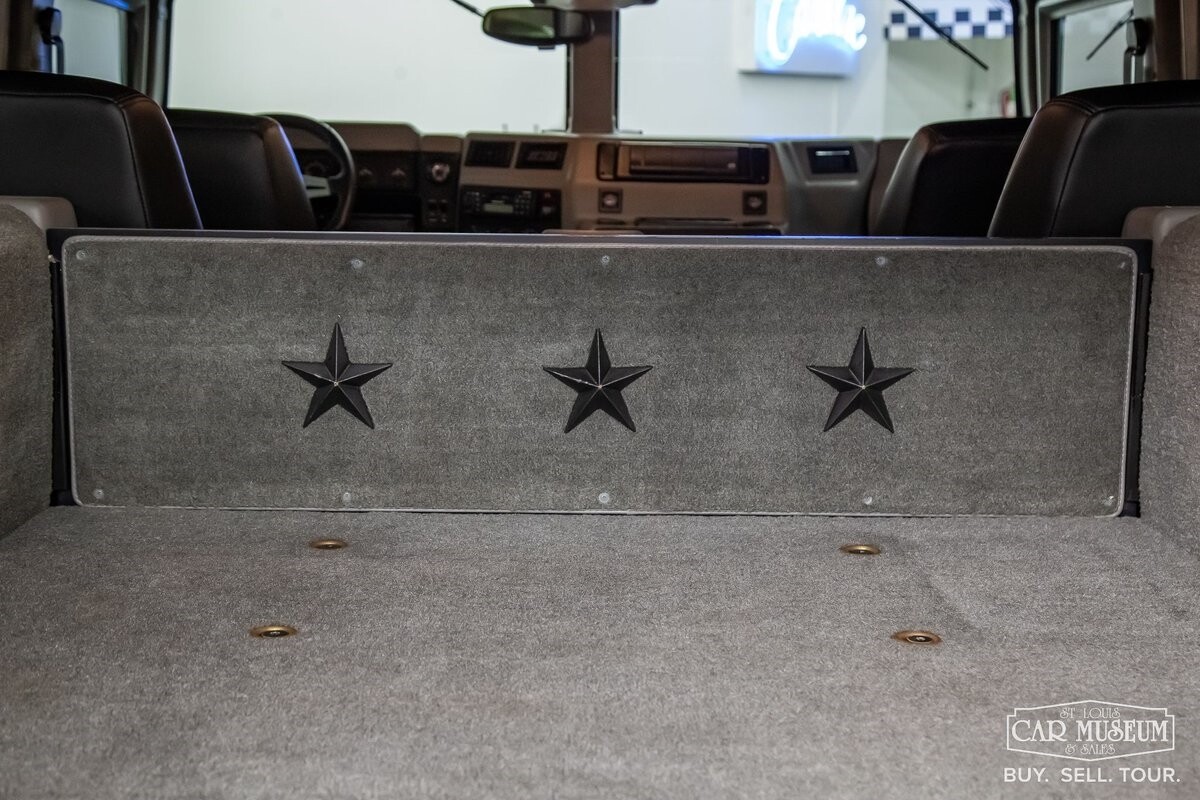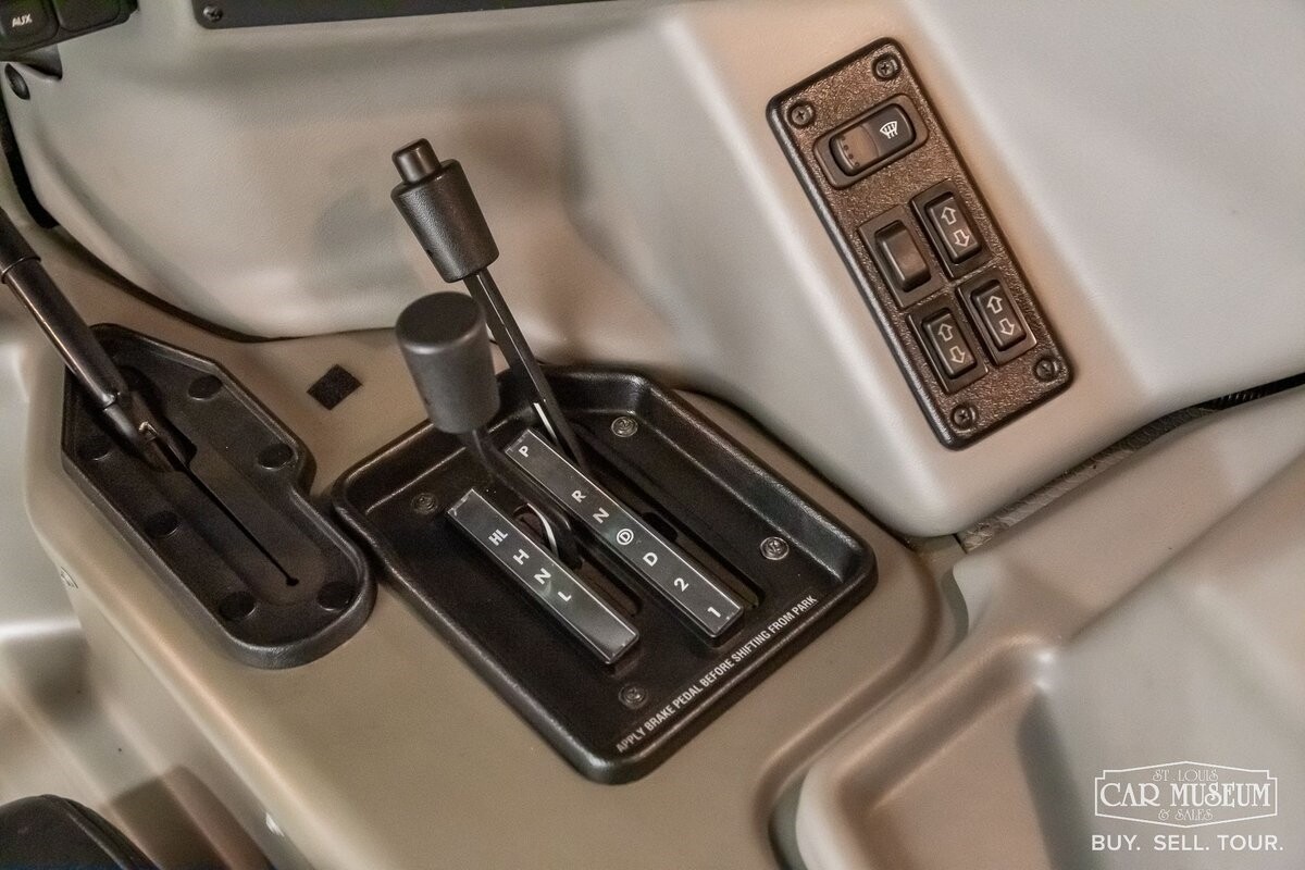 Since its arrival at our museum, our partner company, , has completed a fresh 12K service which is a thorough fluid replacement in the complete drivetrain, differentials, transfer case, and hubs; full suspension lubrication; new fuel filter, engine oil filter, air filter, transmission filter. We also installed a new serpentine belt, rear coil springs, transmission pump seal, rear main engine seal, camshaft plug, fuel tank shield, oil pan gasket, axle output flange seal, geared hub output seals, A/C high pressure switch, A/C receiver drier, door lock actuator, battery hold down bracket, and wiper blades.
